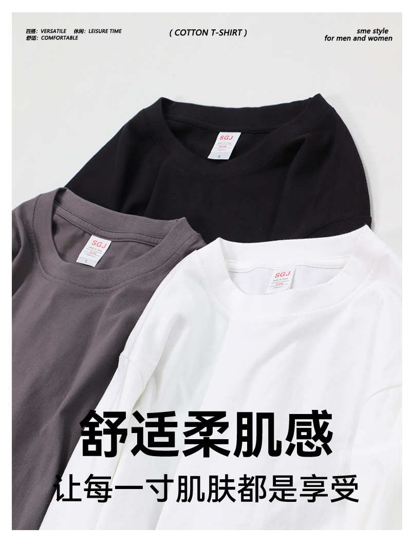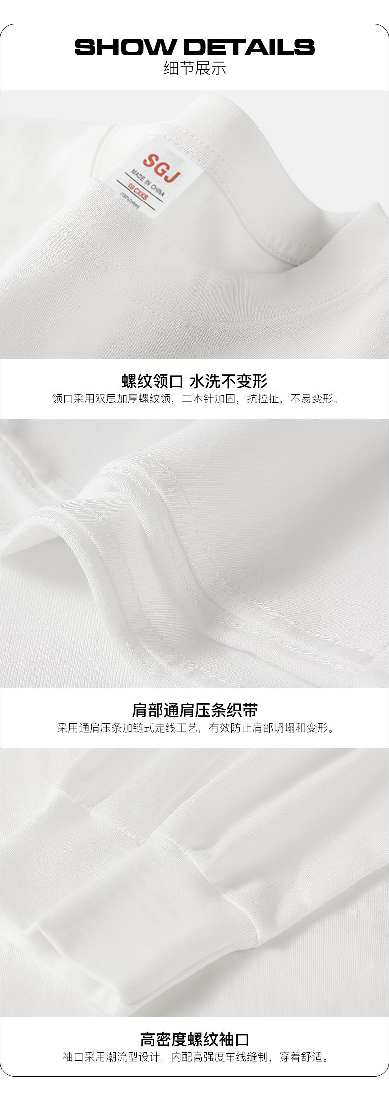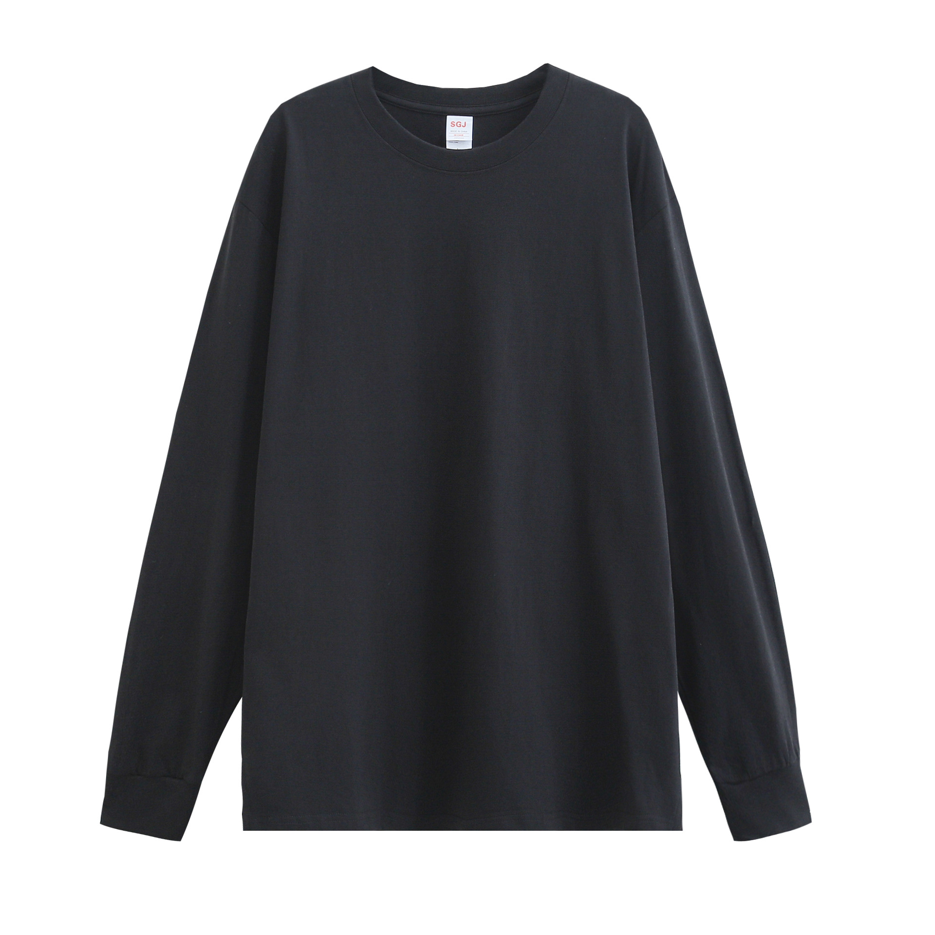 라이브 폭발 240 g 면 실 커프 긴 소매 티셔츠 남성의면 느슨한 순수한 흰색 바닥 셔츠 여성 도매스토어 가기