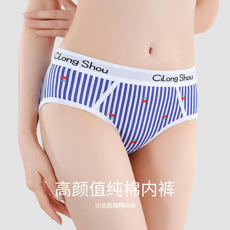 여성면 통기성 브리프 여성의 섹시한 미드 웨이스트 반바지 여성의 편안한 스트라이프 플러스 사이즈 속옷스토어 가기