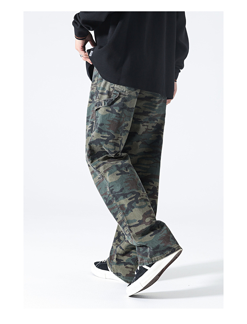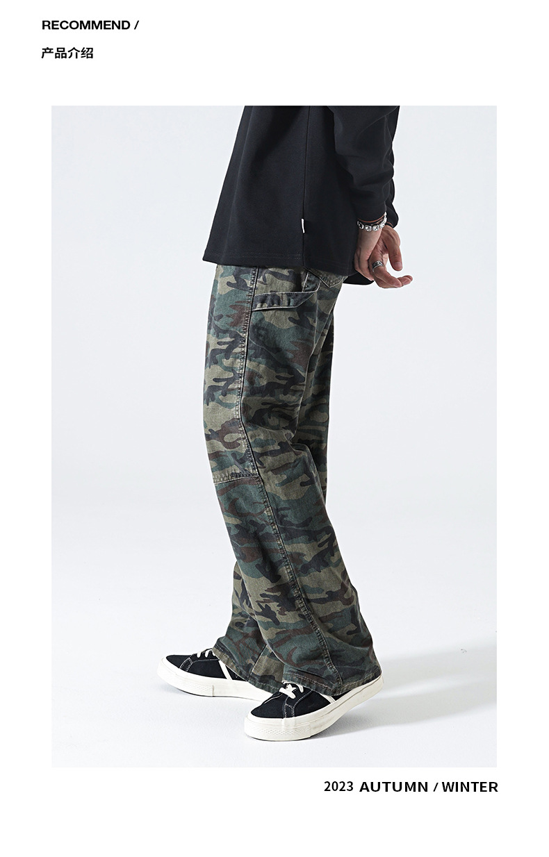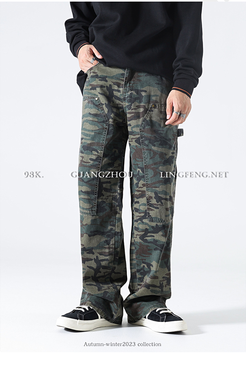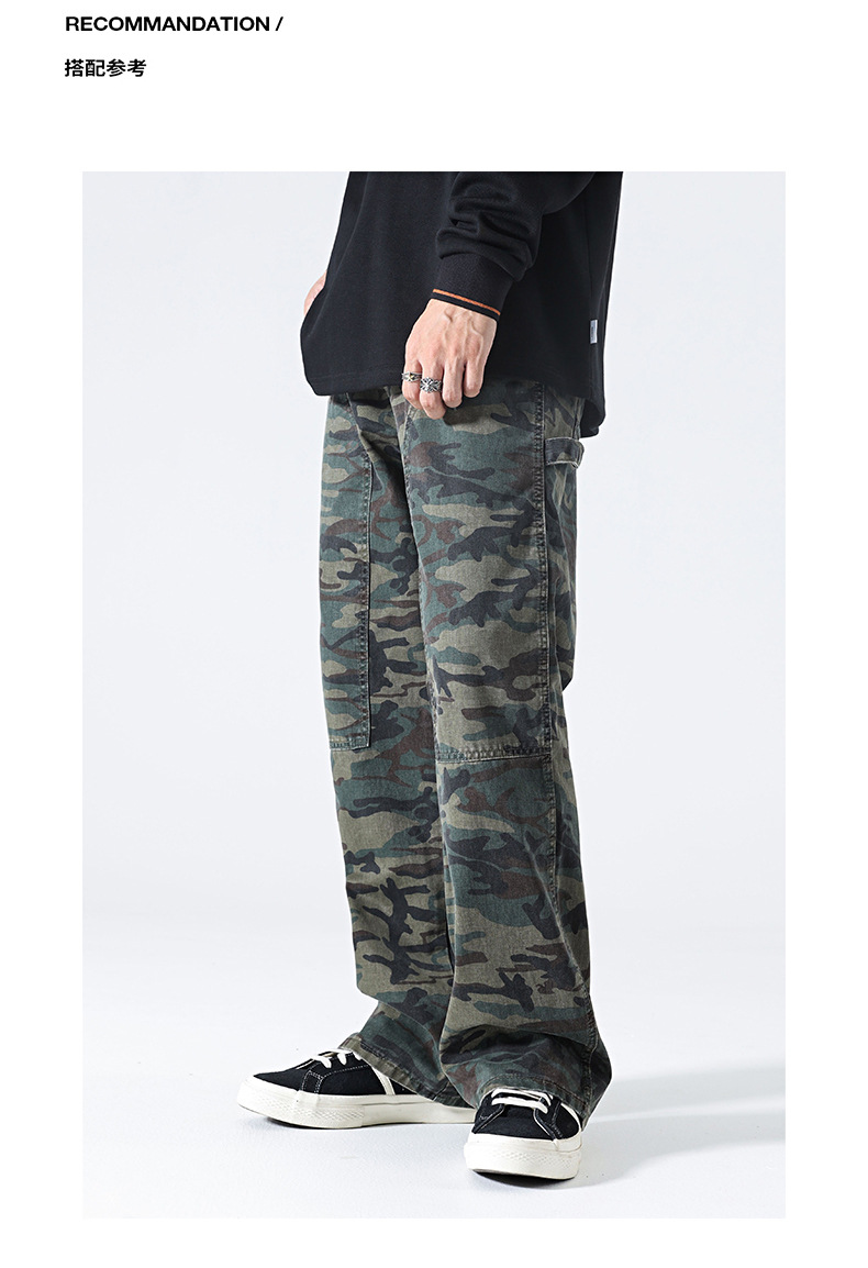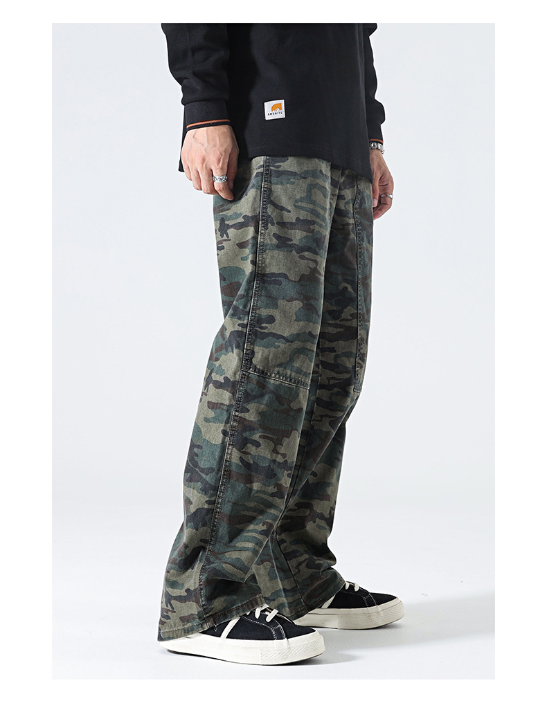 Muqiu 남성복 또는 가을 새로운 미국 스타일 하이 스트리트 야외 위장 작업 바지 남자의 느슨한 와이드 레그 스트레이트 캐주얼 바지