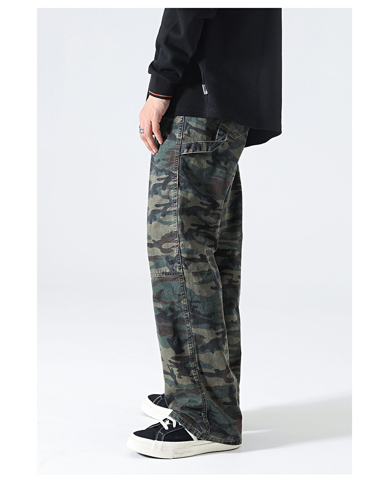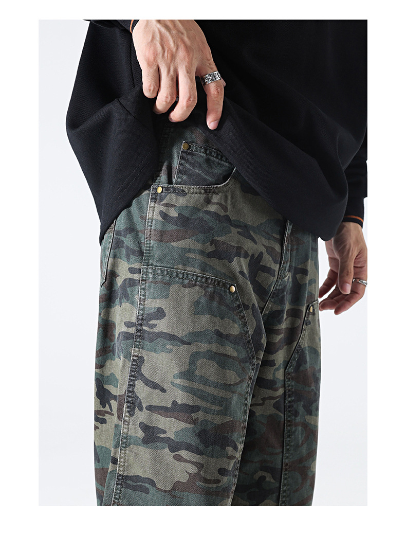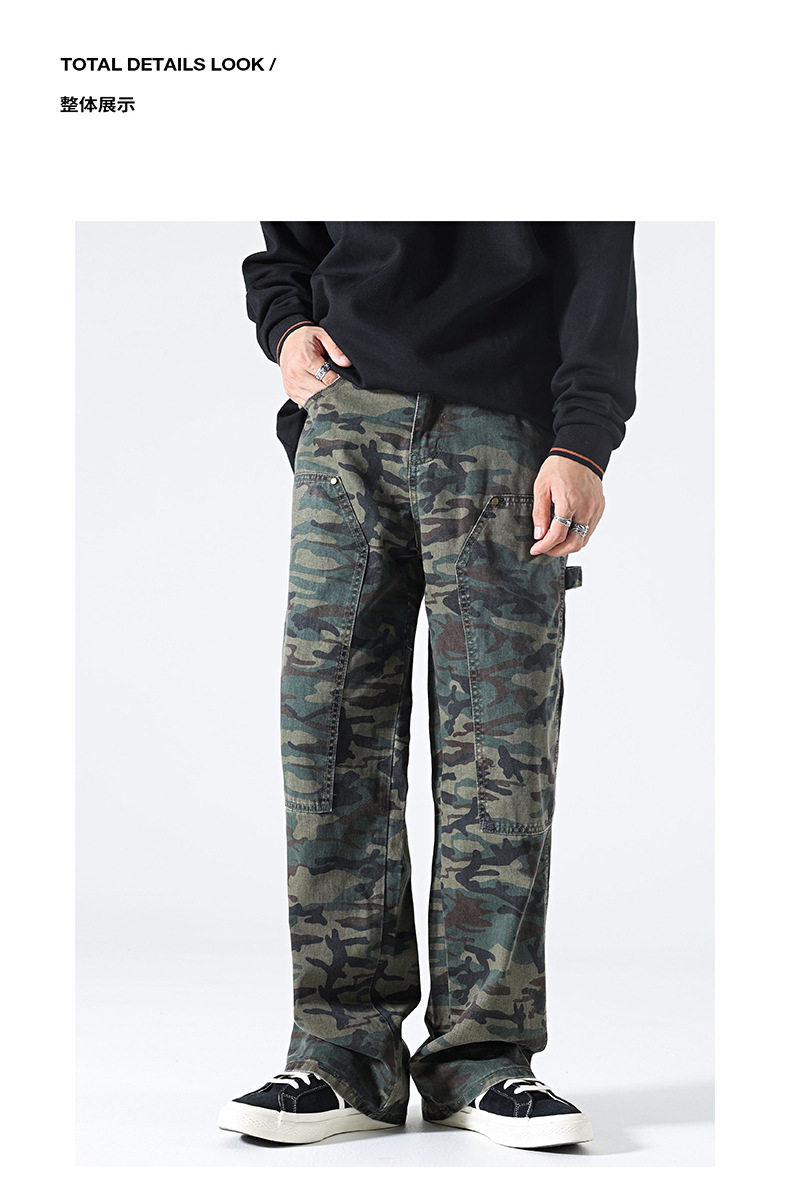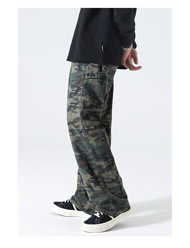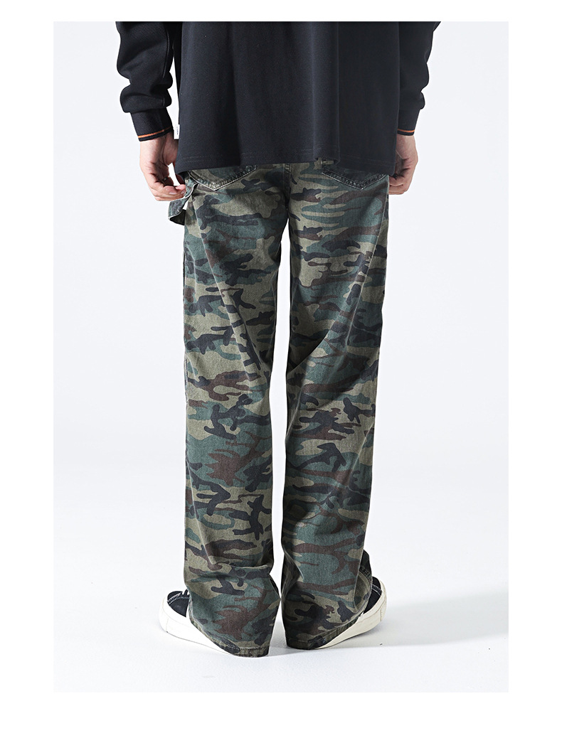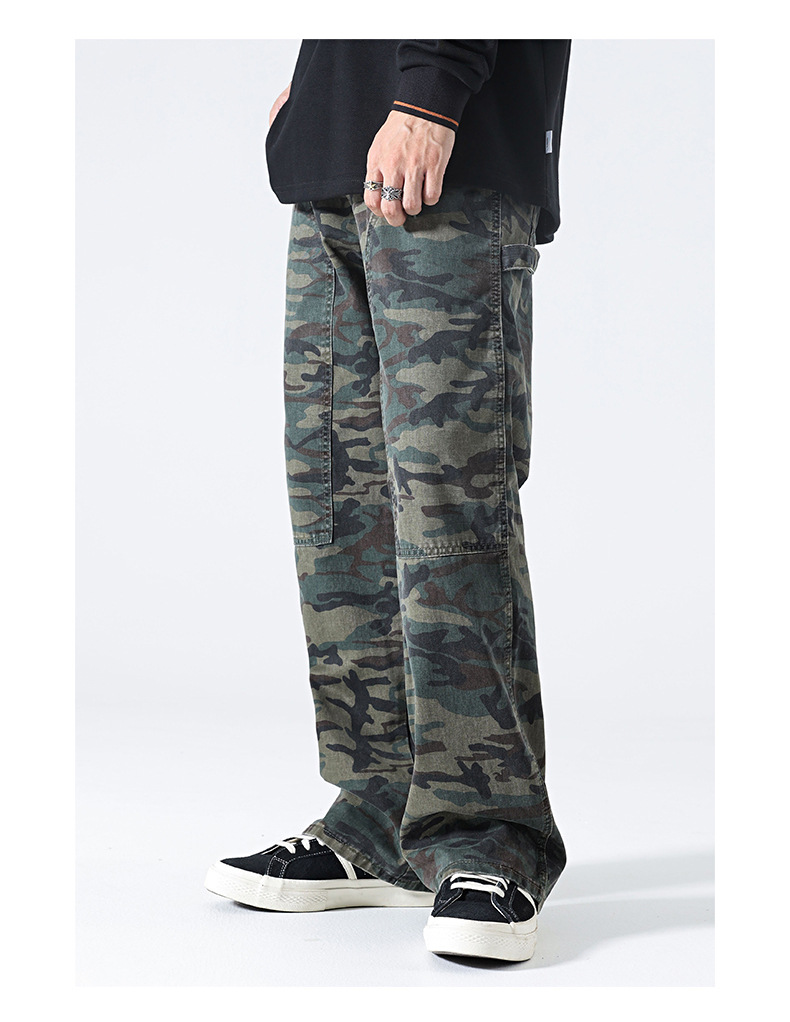 Muqiu 남성복 또는 가을 새로운 미국 스타일 하이 스트리트 야외 위장 작업 바지 남자의 느슨한 와이드 레그 스트레이트 캐주얼 바지