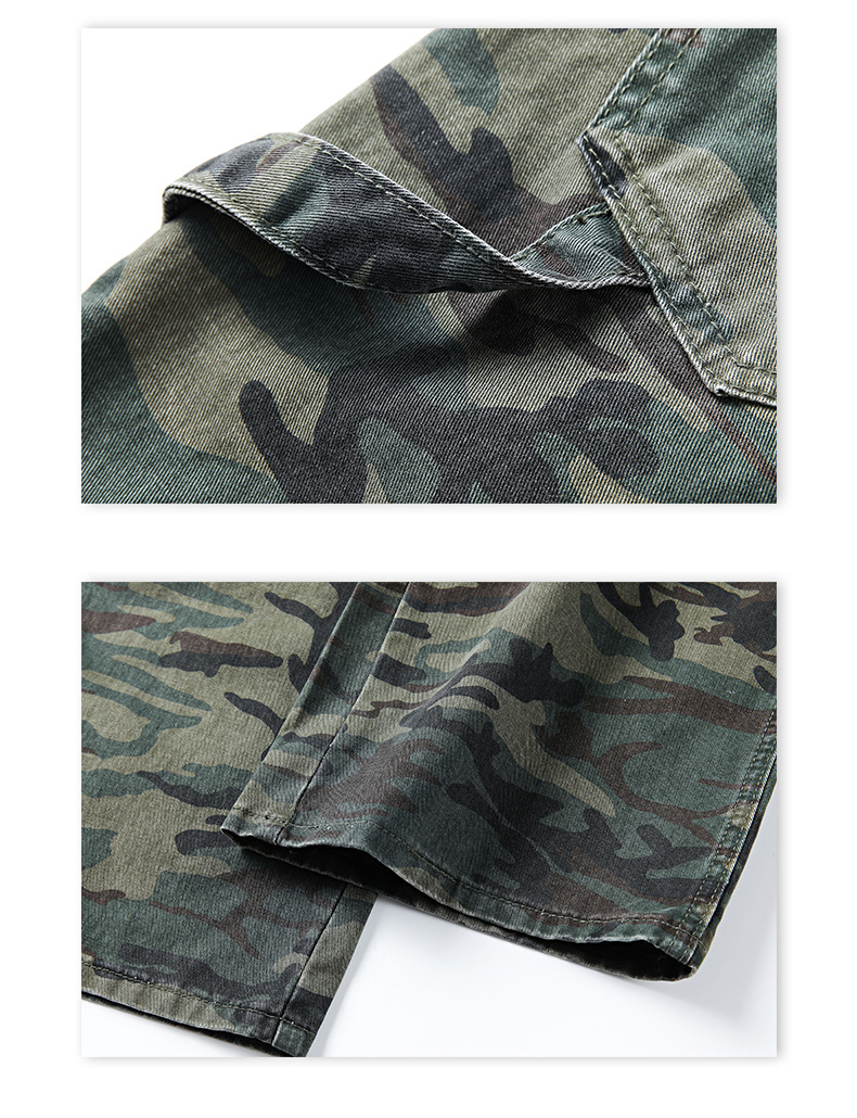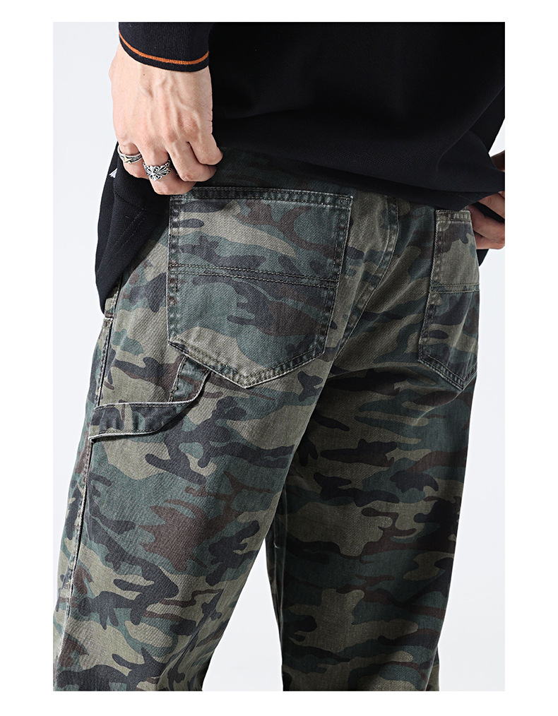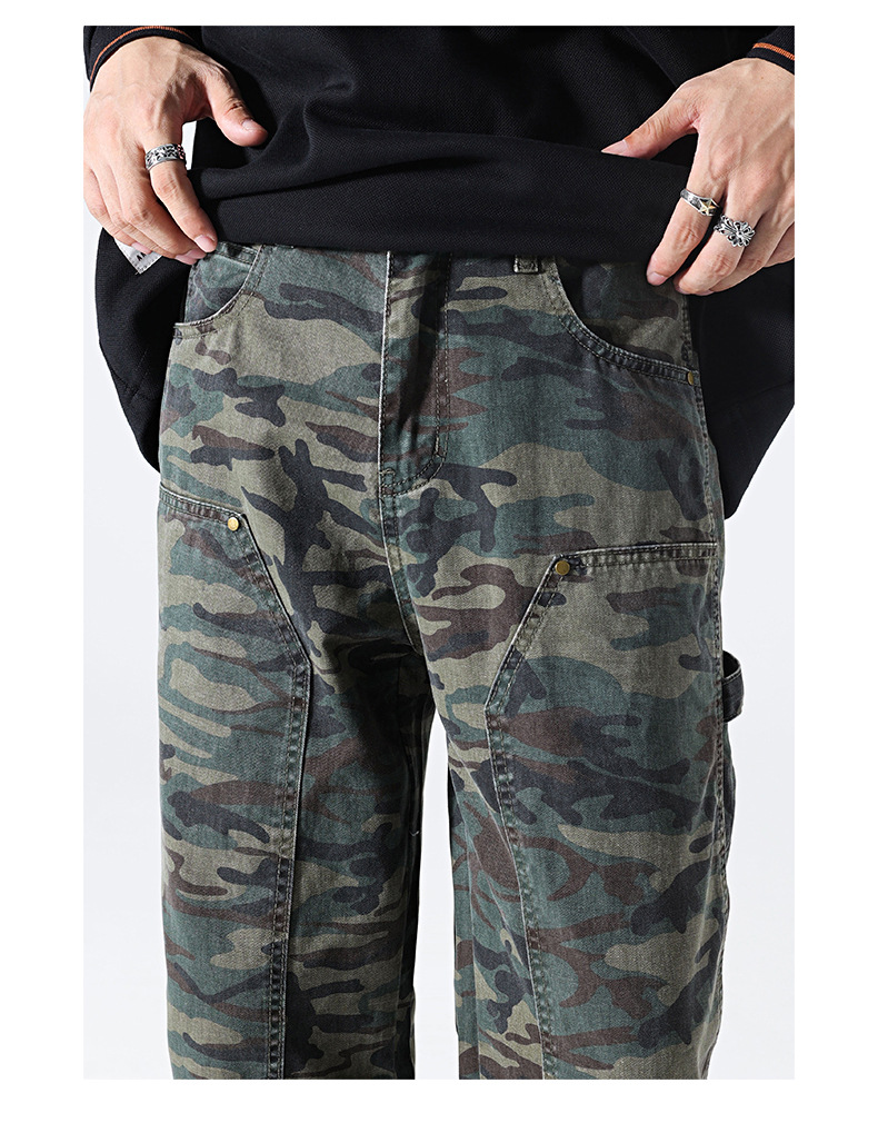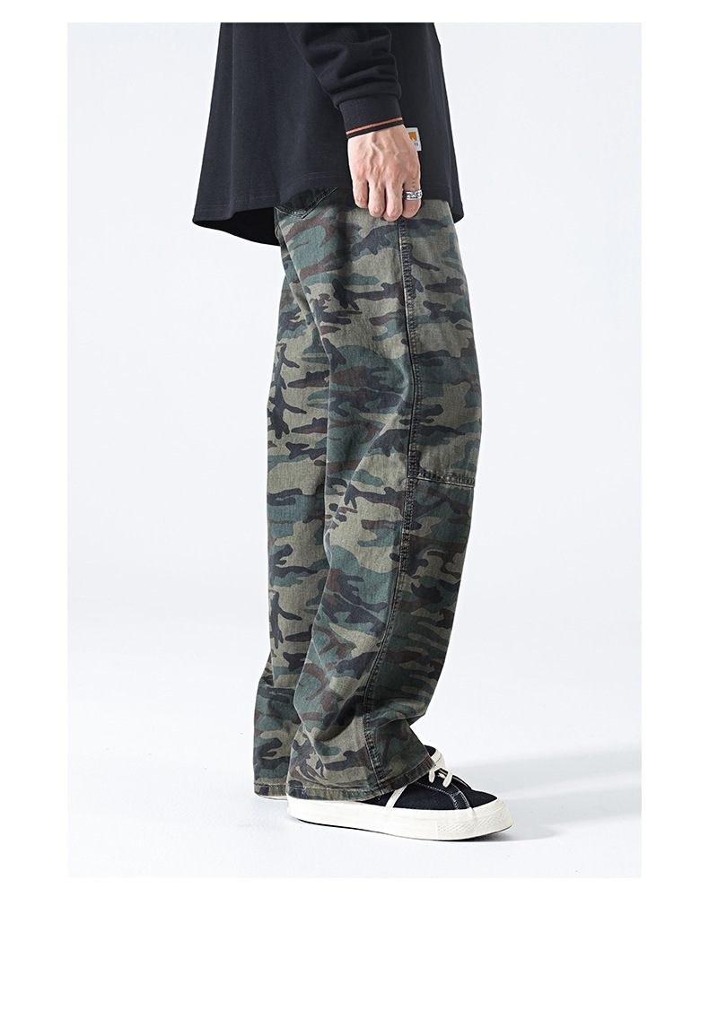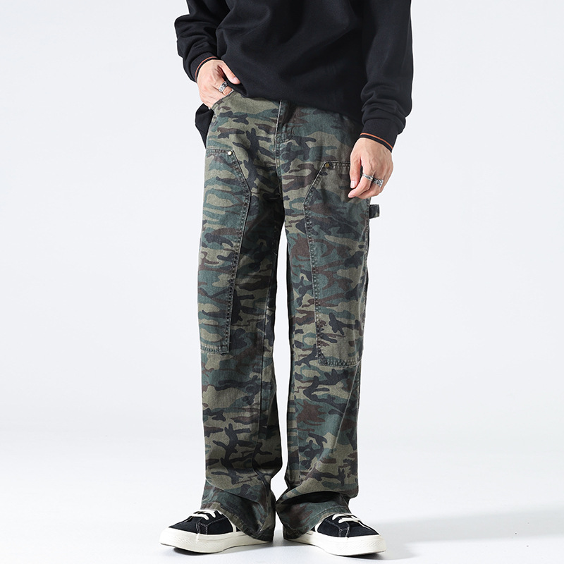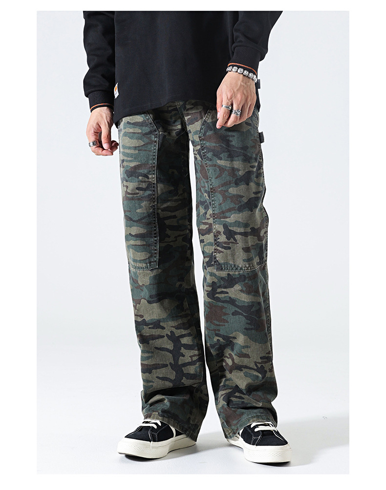 Muqiu 남성복 또는 가을 새로운 미국 스타일 하이 스트리트 야외 위장 작업 바지 남자의 느슨한 와이드 레그 스트레이트 캐주얼 바지