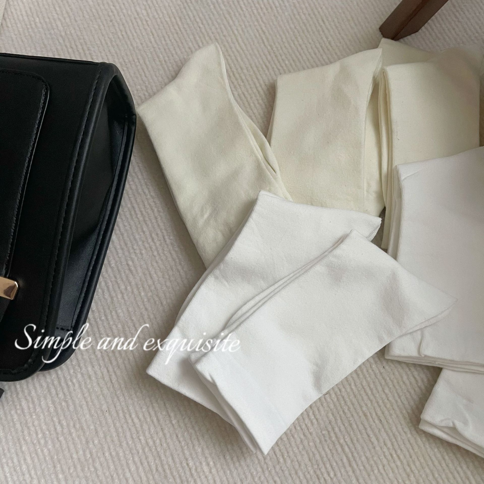 리틀 레드 북 같은 스타일의 흰색 양말 중반 송아지 우유 흰색면 양말 여성의 간단한 올 매치 단색 포시즌 웨어러블 블랙 스타킹