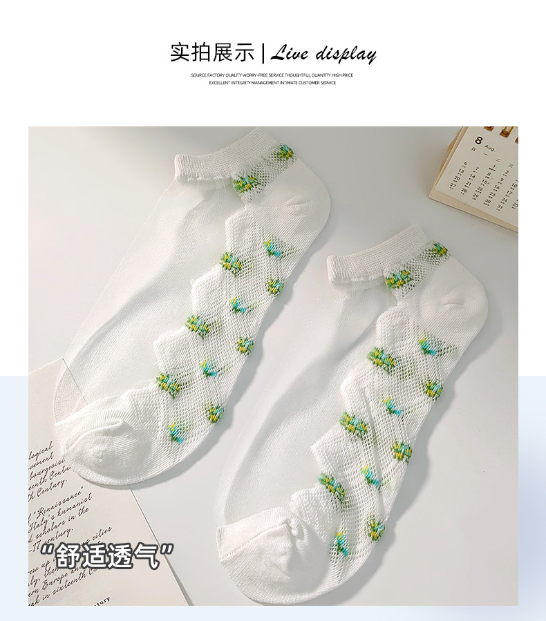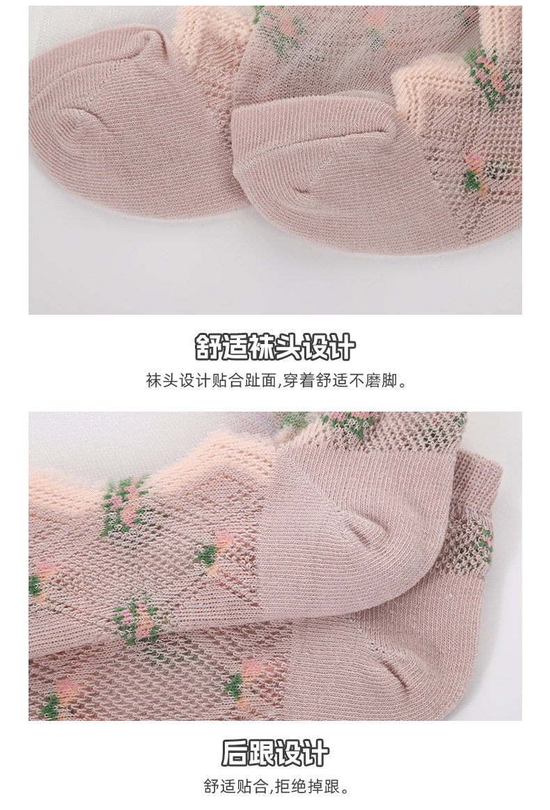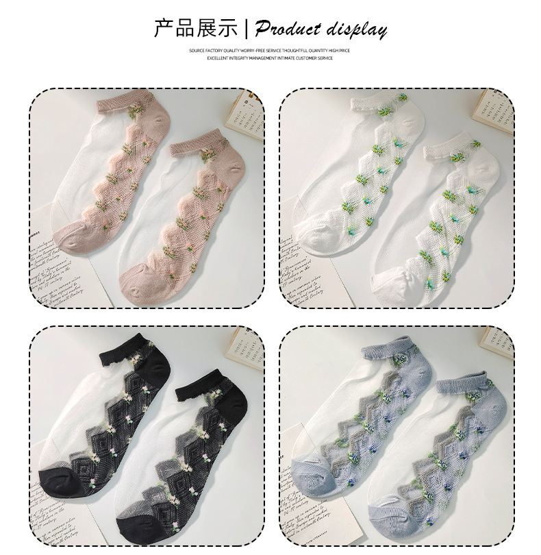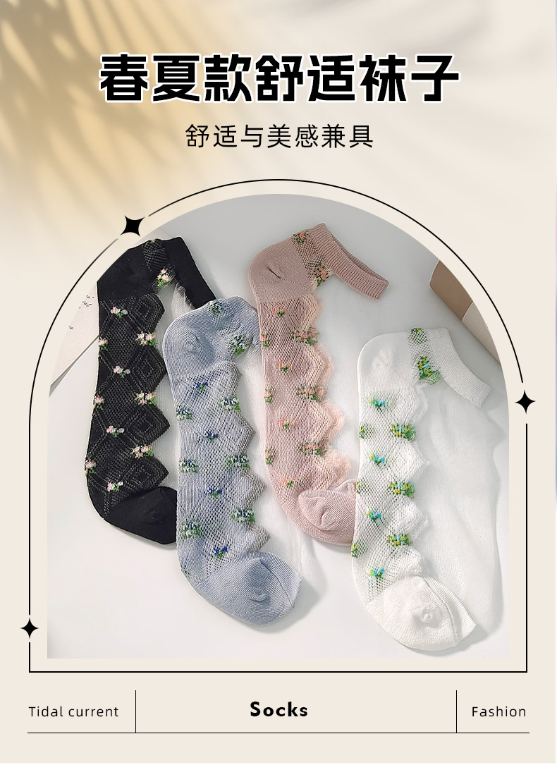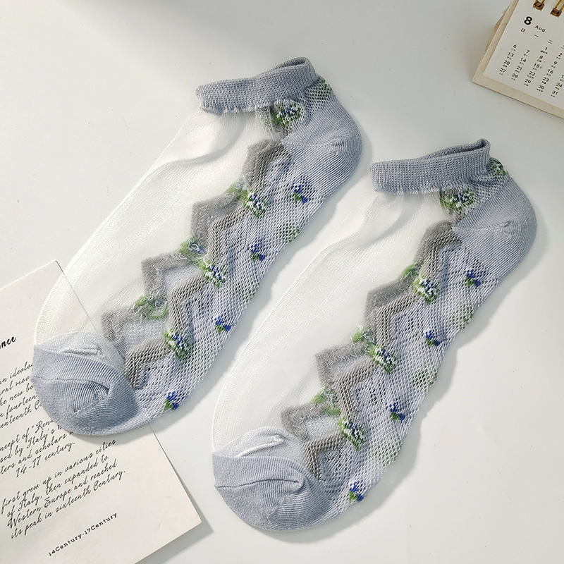 양말 여성용 여름 얇은 인터넷 연예인 유리 크리스탈 실크 면 바닥 여성용 양말 일본 꽃 울트라 씬 메쉬 통기성 양말스토어 가기
