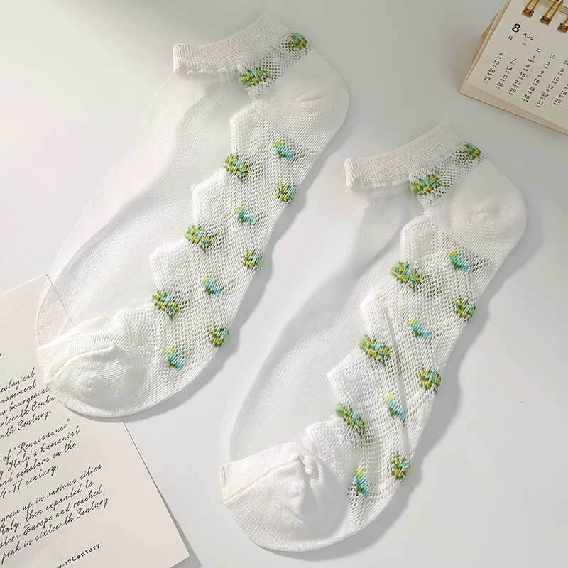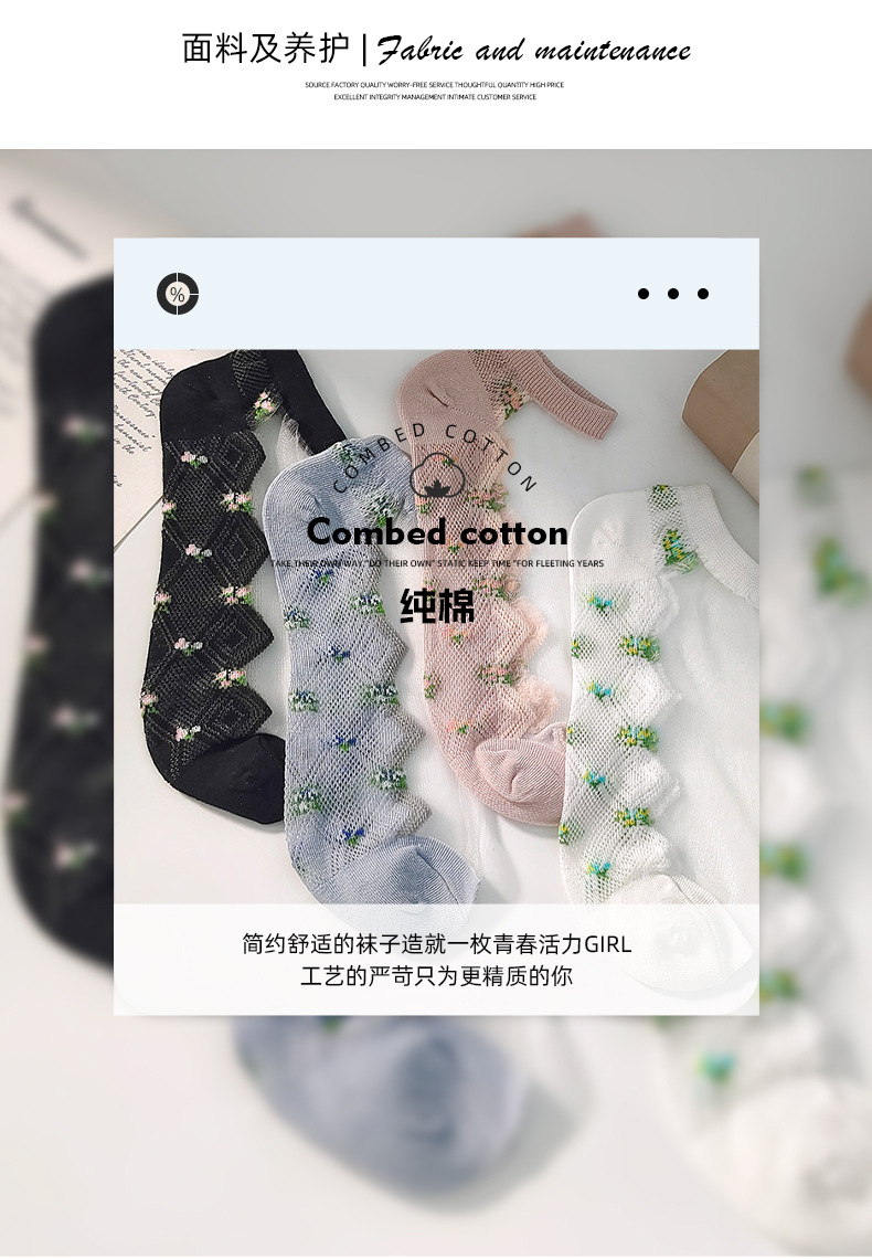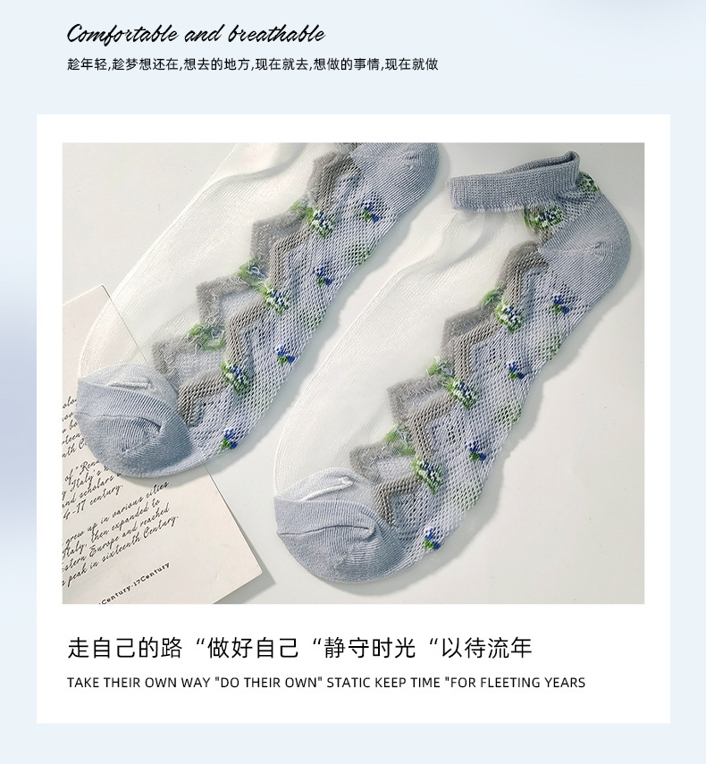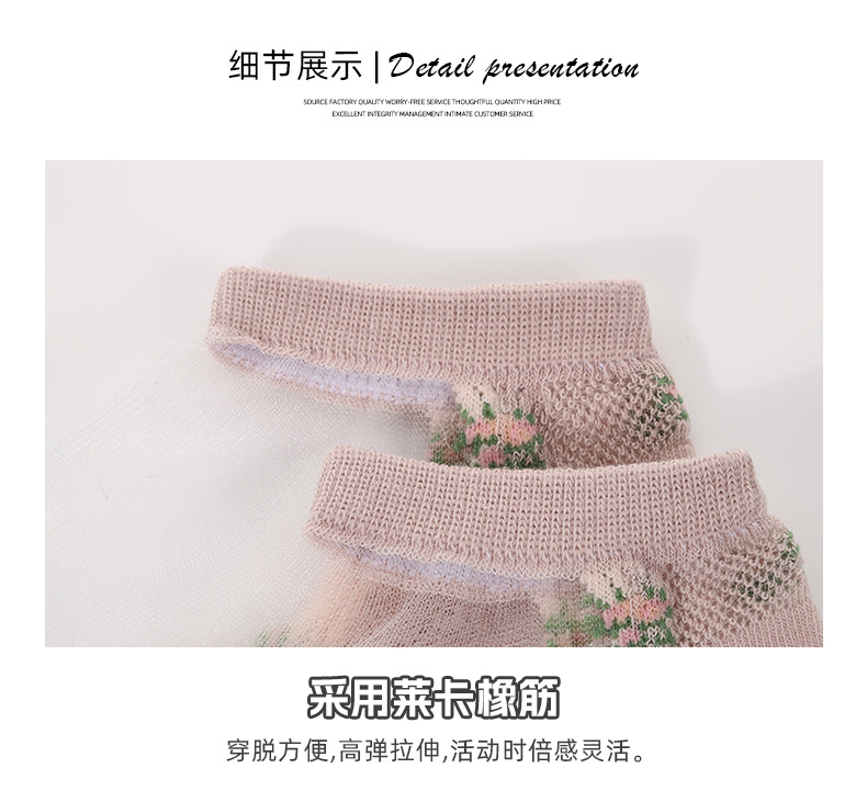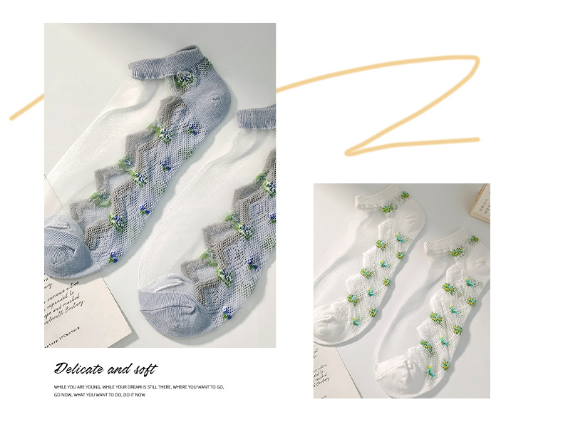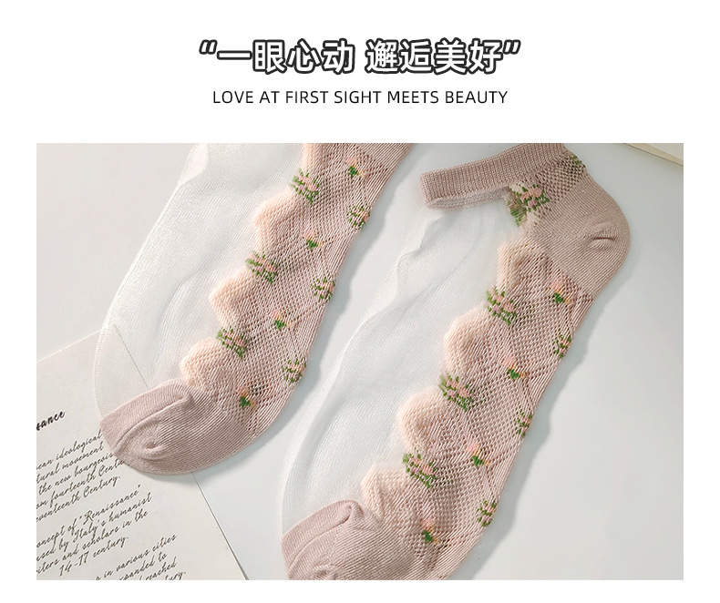 양말 여성용 여름 얇은 인터넷 연예인 유리 크리스탈 실크 면 바닥 여성용 양말 일본 꽃 울트라 씬 메쉬 통기성 양말스토어 가기