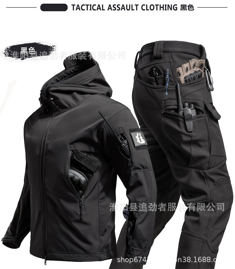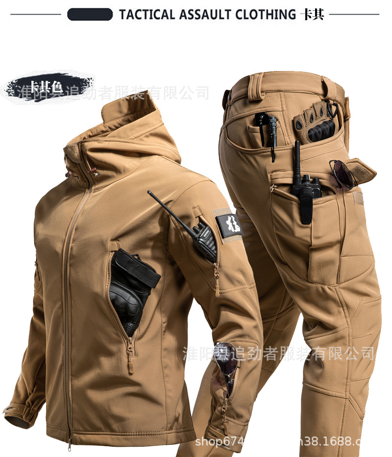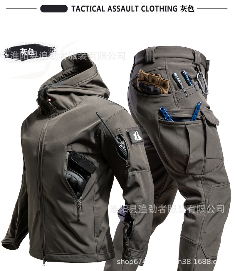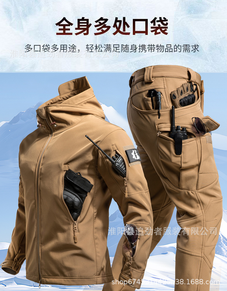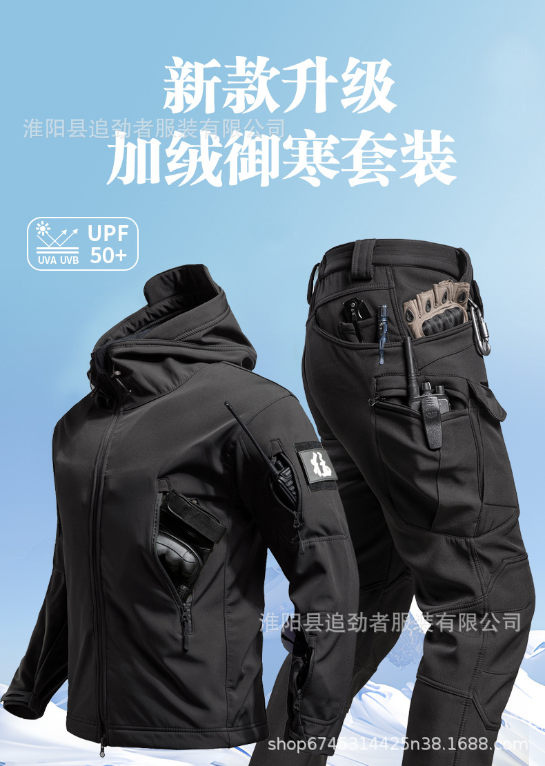 야외 러쉬 의류 세트 남자의 겨울 따뜻한 기모 부드러운 쉘 의류 및 바지 낚시 스키 등산 세트 방한 양털 옷스토어 가기
