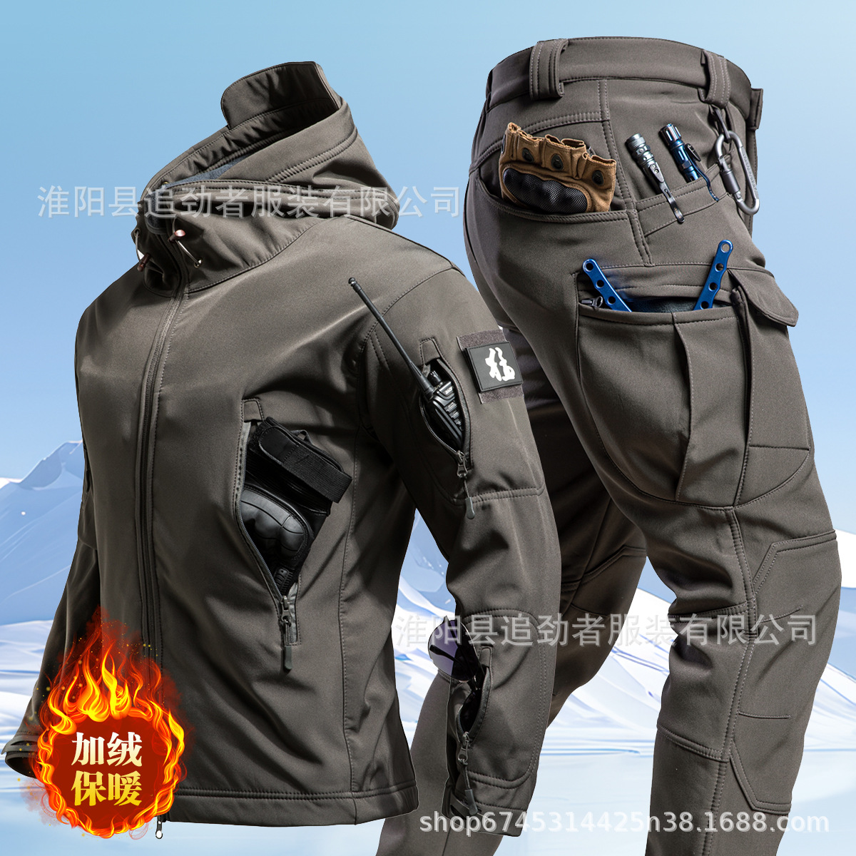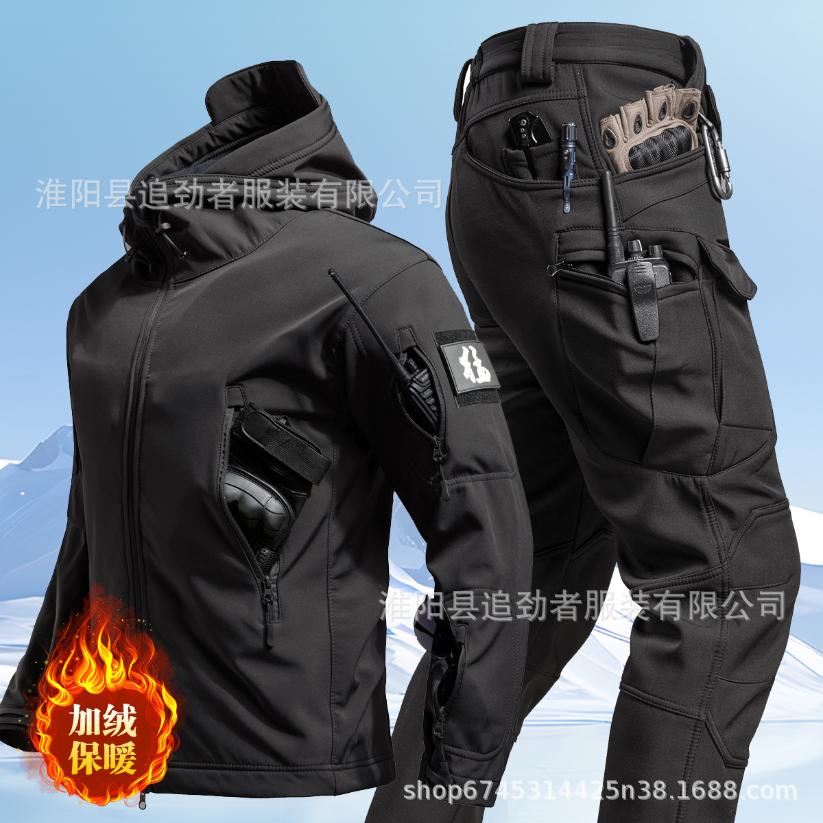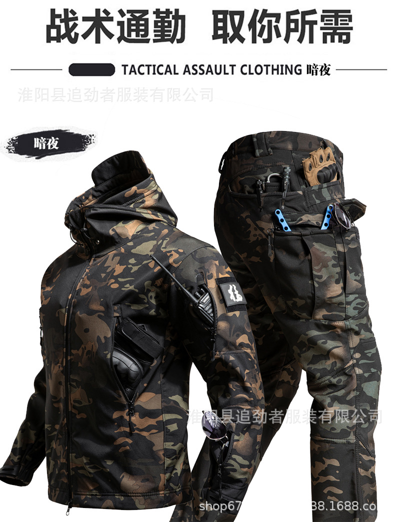 야외 러쉬 의류 세트 남자의 겨울 따뜻한 기모 부드러운 쉘 의류 및 바지 낚시 스키 등산 세트 방한 양털 옷스토어 가기