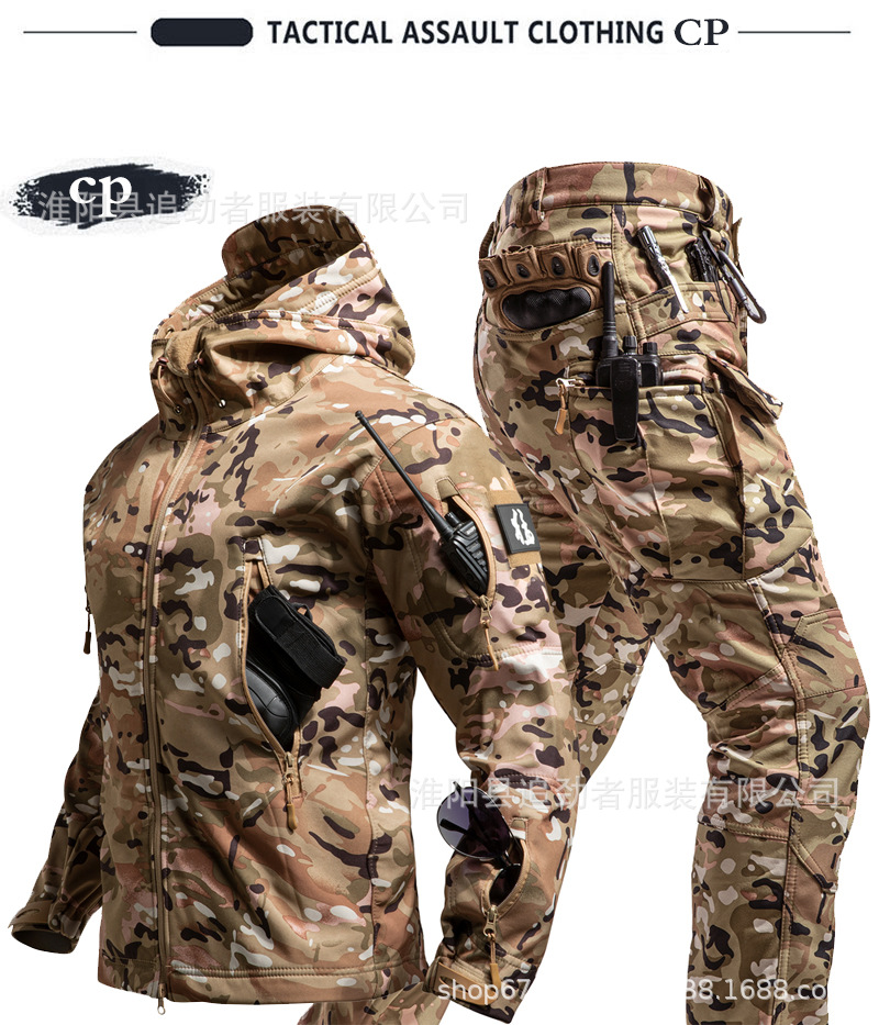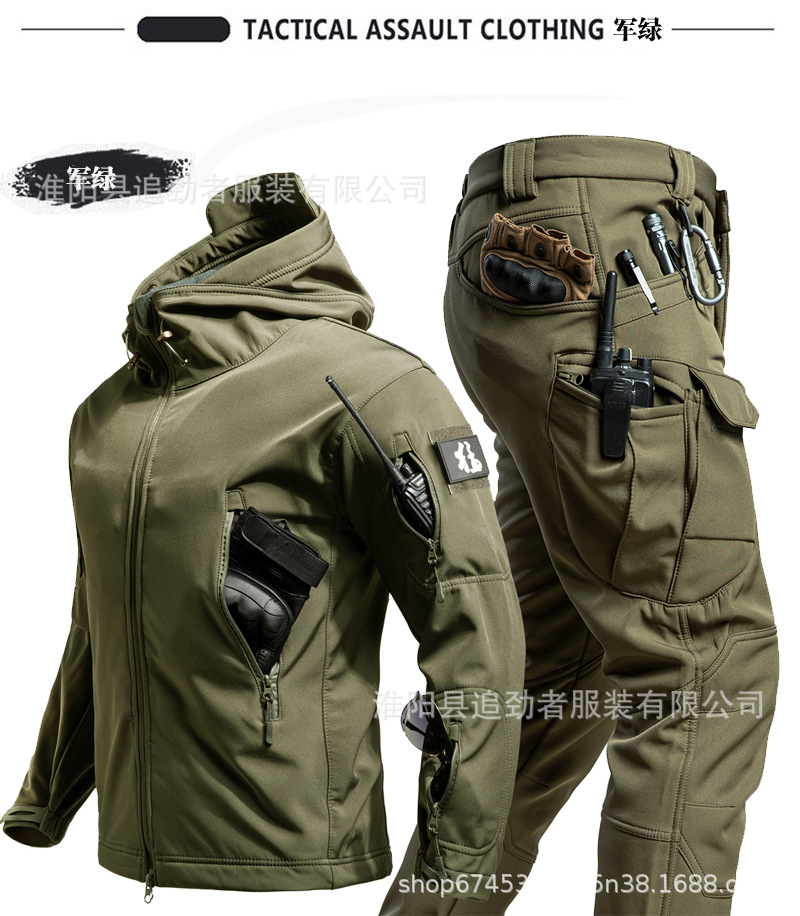 야외 러쉬 의류 세트 남자의 겨울 따뜻한 기모 부드러운 쉘 의류 및 바지 낚시 스키 등산 세트 방한 양털 옷