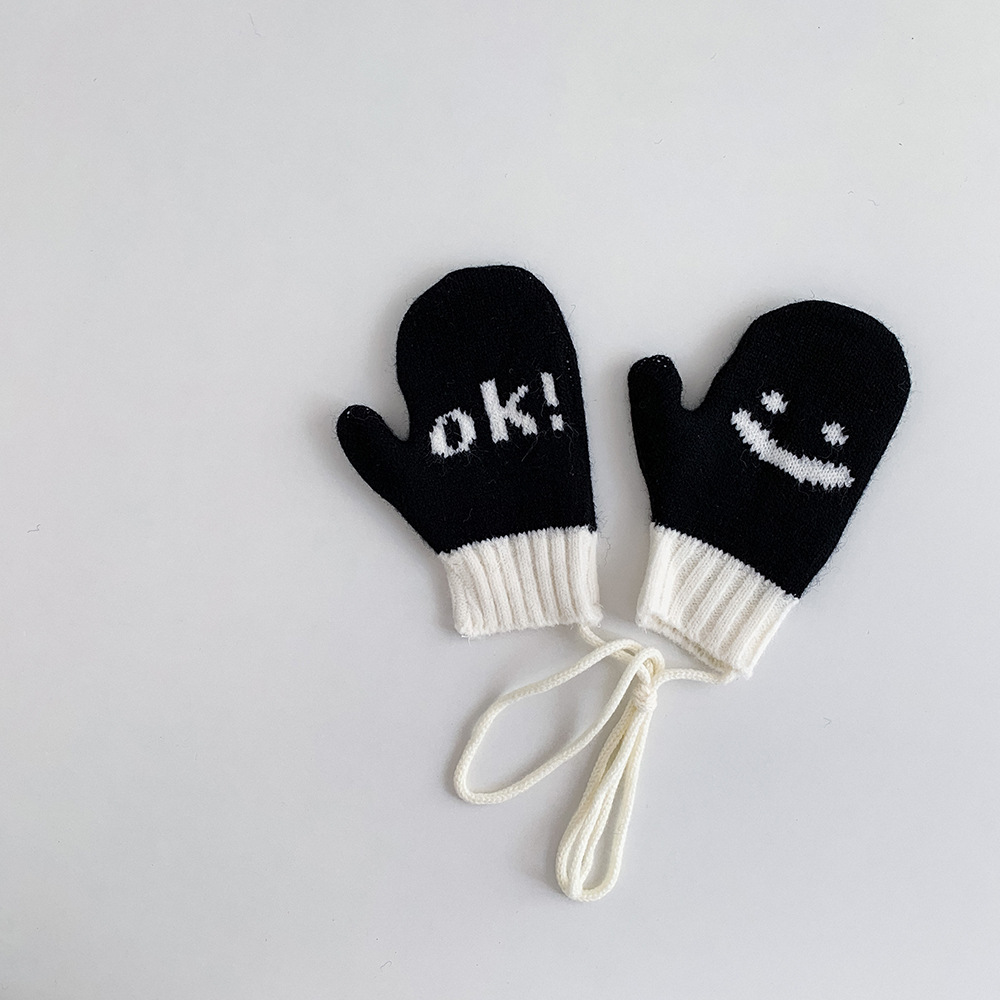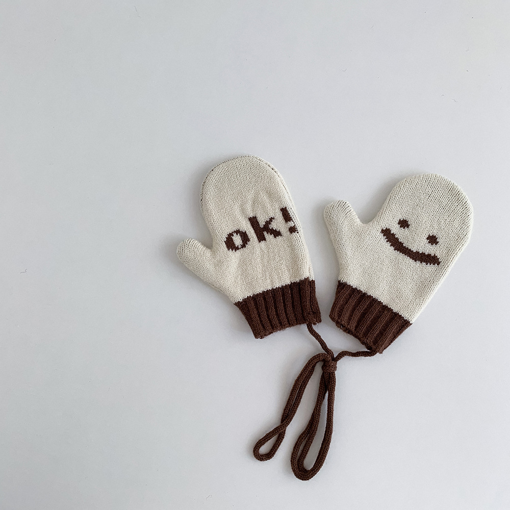 한국식 웃는 얼굴 따뜻한 고삐 소년 소녀 따뜻한 장갑 스타일 어린이 장갑 겨울 방한식 아기 장갑