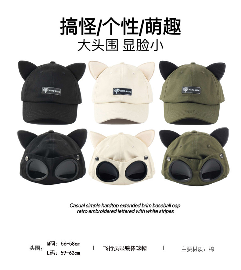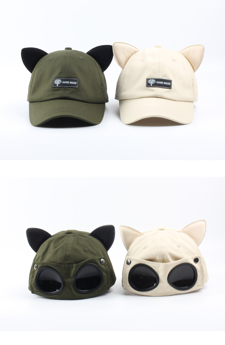 귀여운 고양이 귀 안경 비행가 야구 모자 어린이 여름 모든 매치 트렌디 스트리트 개성 선글라스 모자 남성
