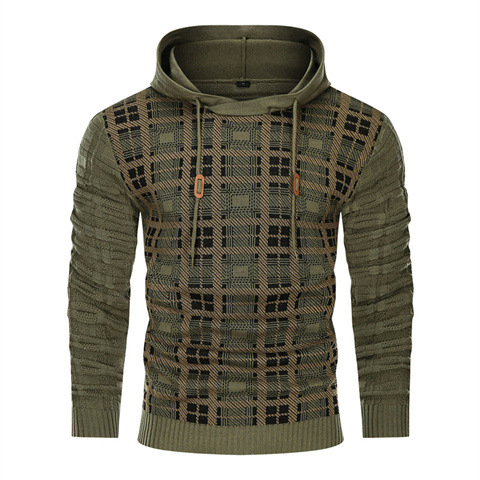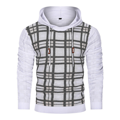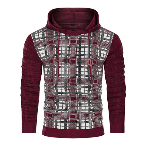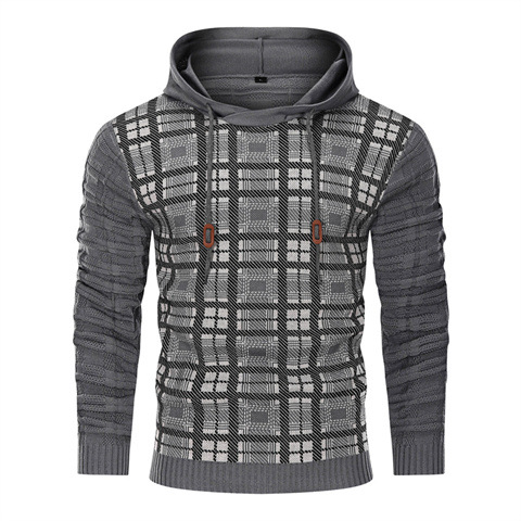 아마존 가을과 겨울 남성 긴팔 풀오버 스웨터 슬림 체크 무늬 컬러 매칭 자카드