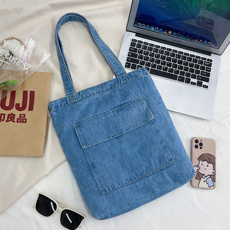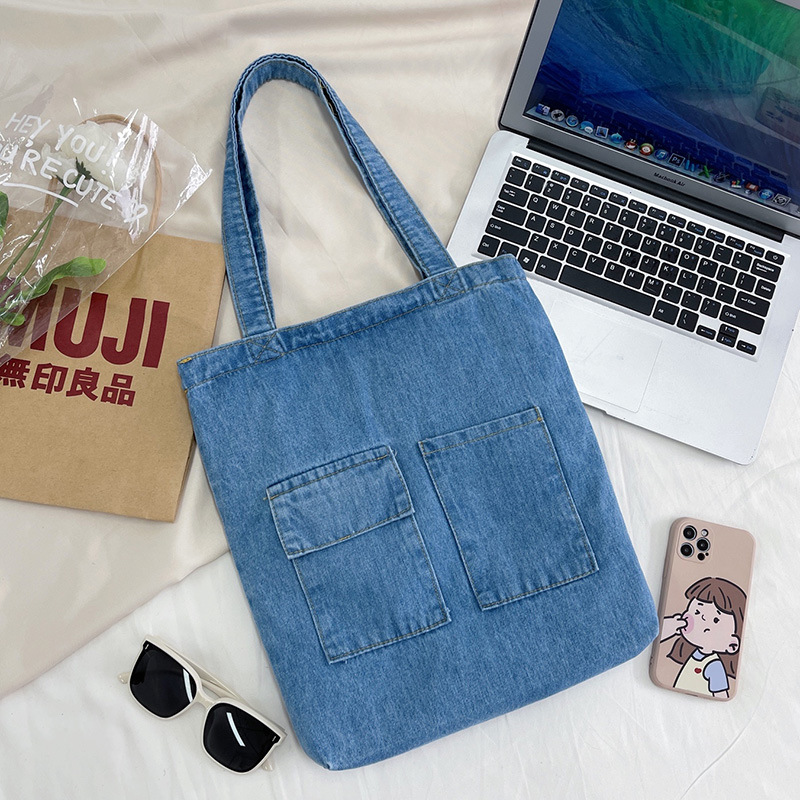 심플한 패션 학생 학교 가방 데님 숄더백 여성용 대용량 쇼핑백 캔버스 핸드백스토어 가기