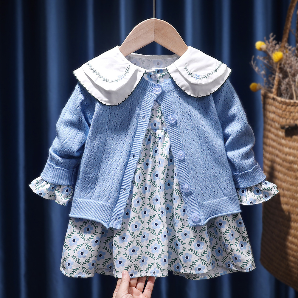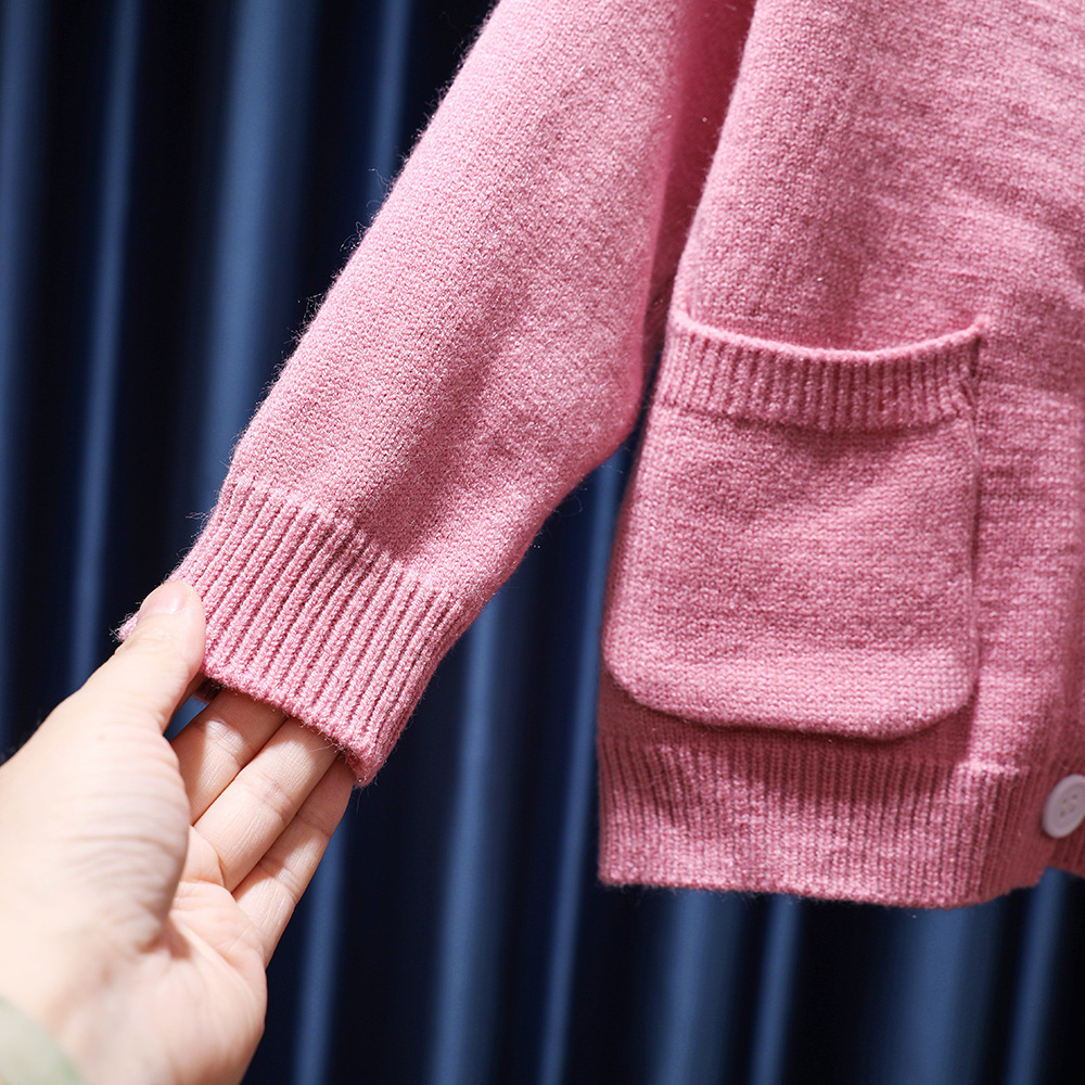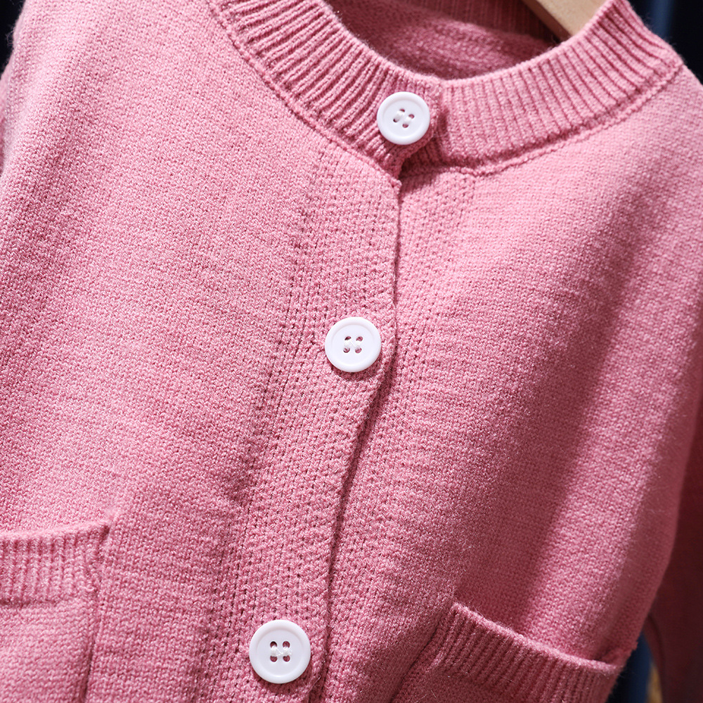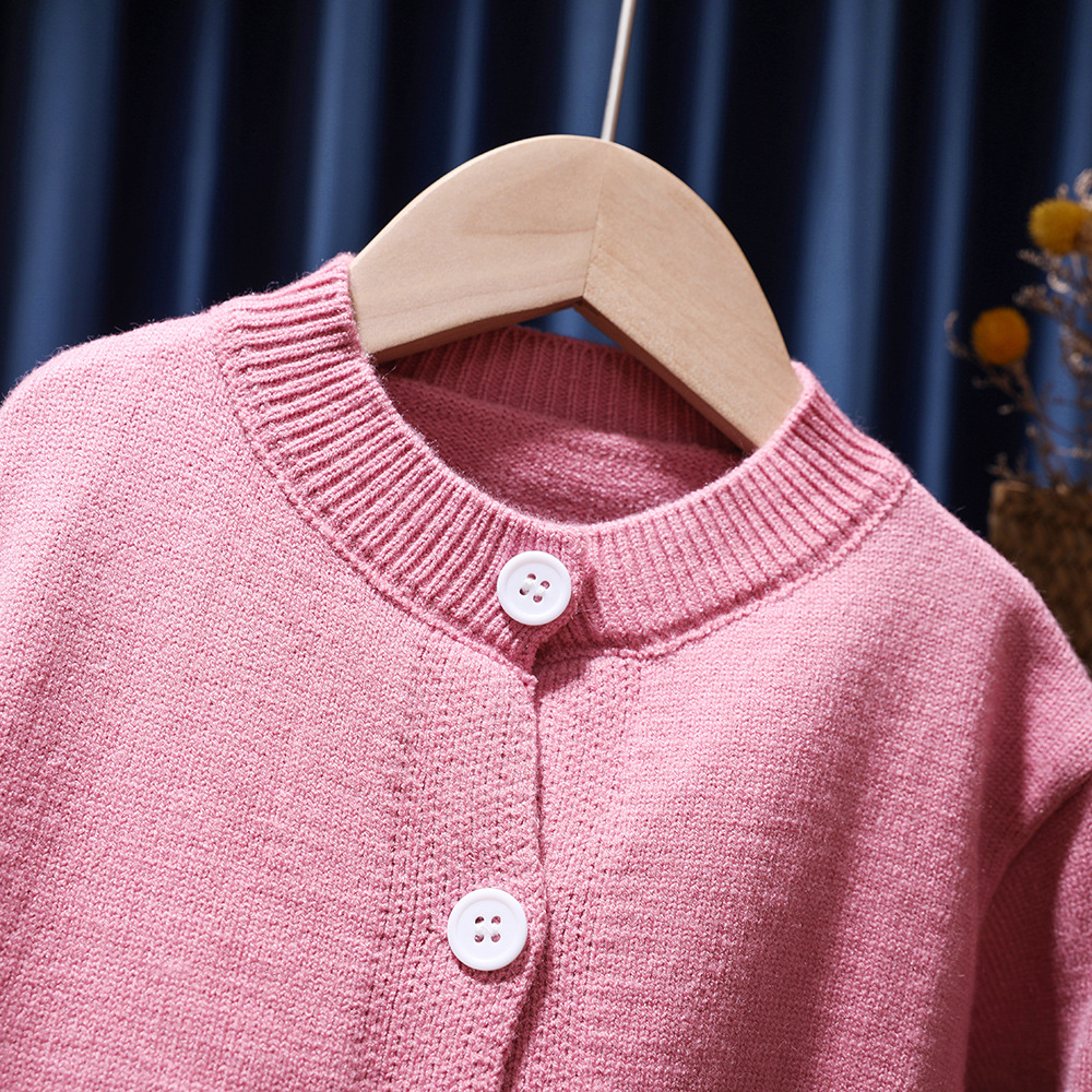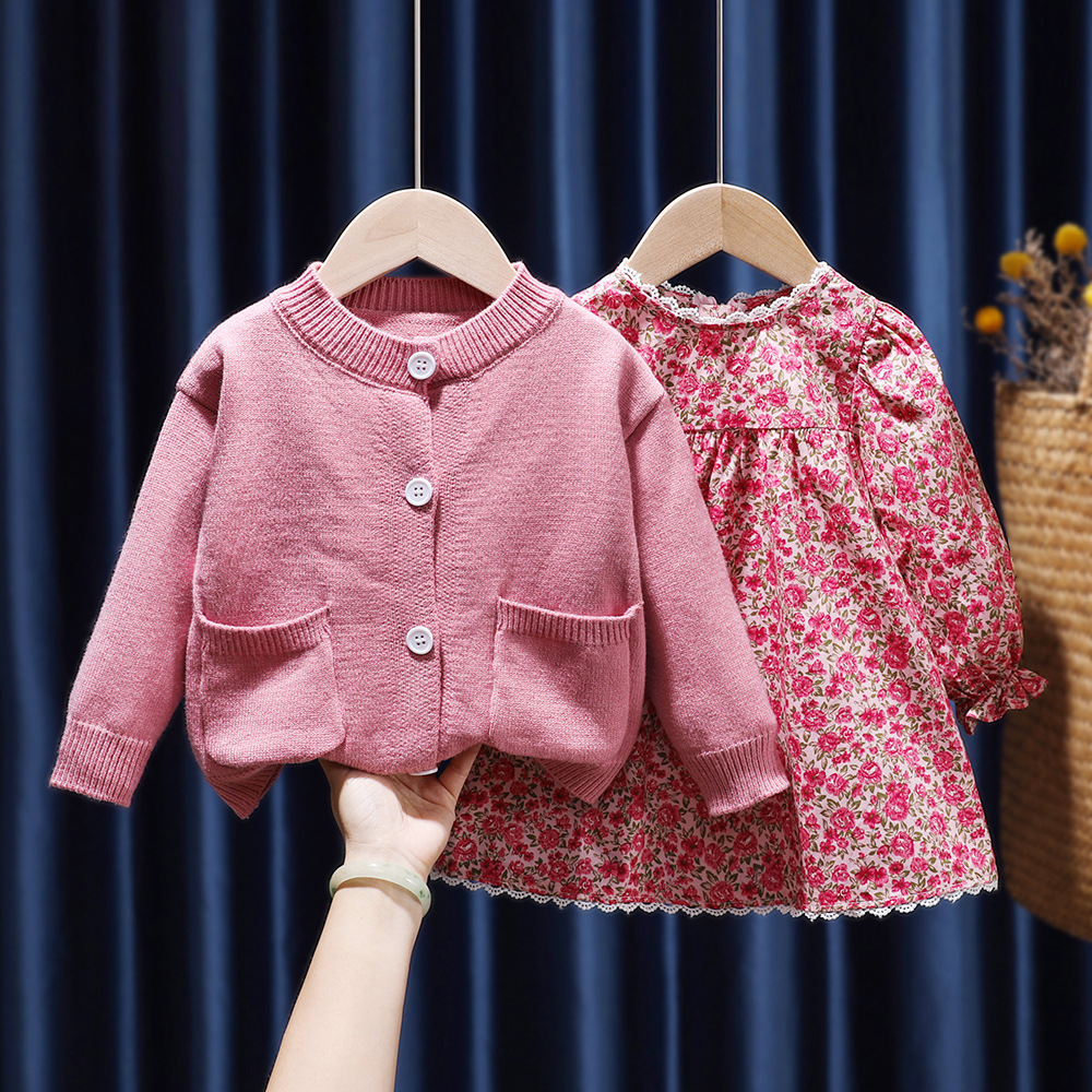 여자 복숭아 핑크 싱글 브레스트 스웨터 재킷 2025 베이비 슈퍼 요정 달콤한 꽃 투피스 세트 어린이 스커트스토어 가기