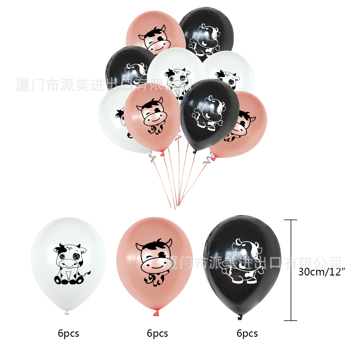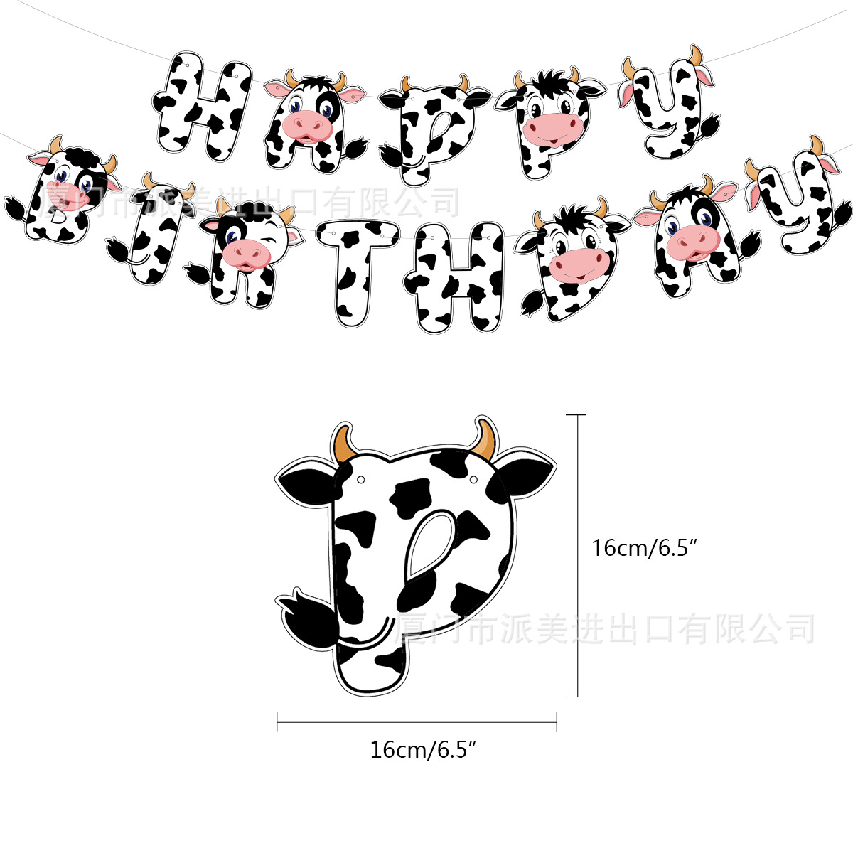 암소 테마 어린이 생일 파티 배경 장식 세트 생일 깃발 케이크 깃발 종이 끈 라텍스 풍선
