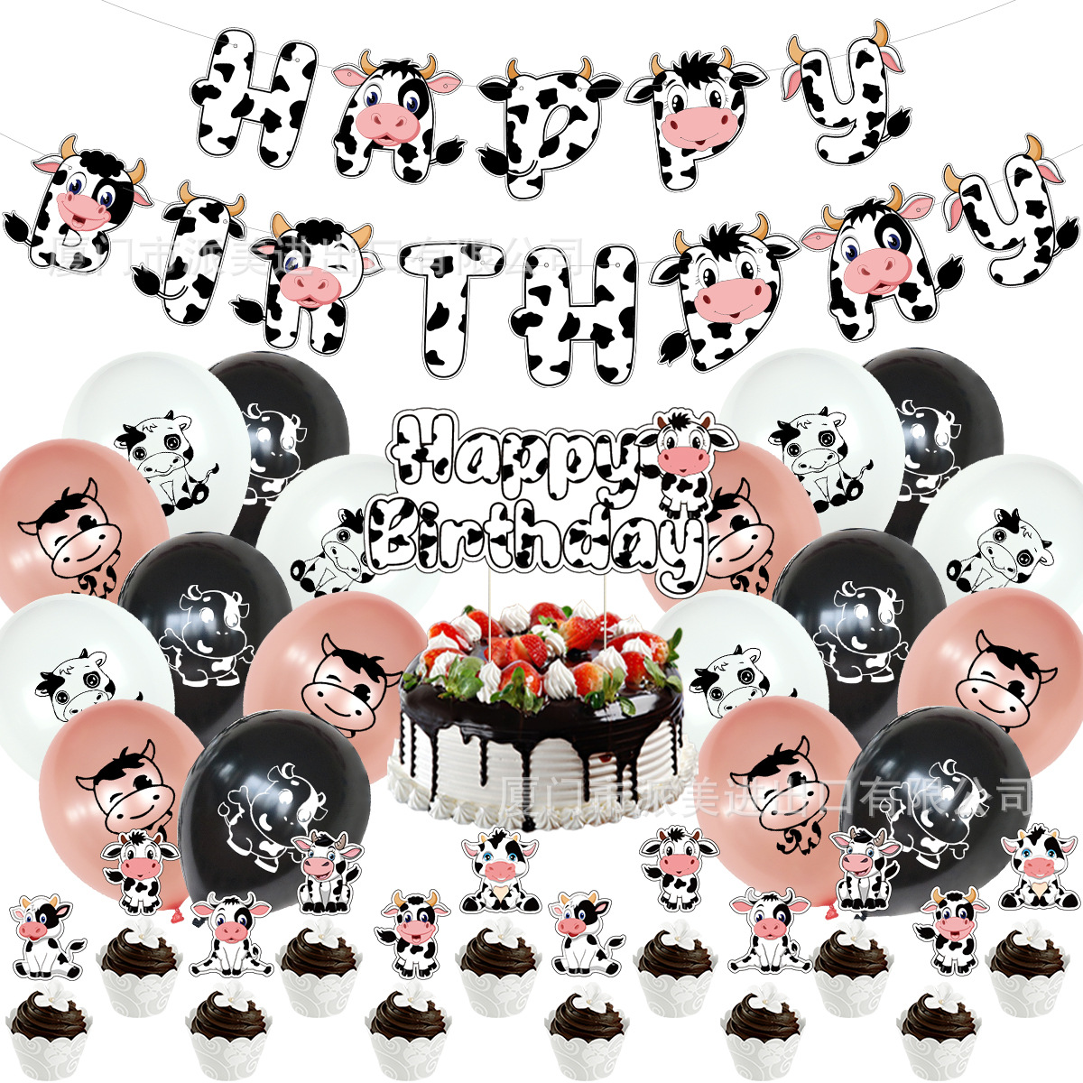 암소 테마 어린이 생일 파티 배경 장식 세트 생일 깃발 케이크 깃발 종이 끈 라텍스 풍선스토어 가기