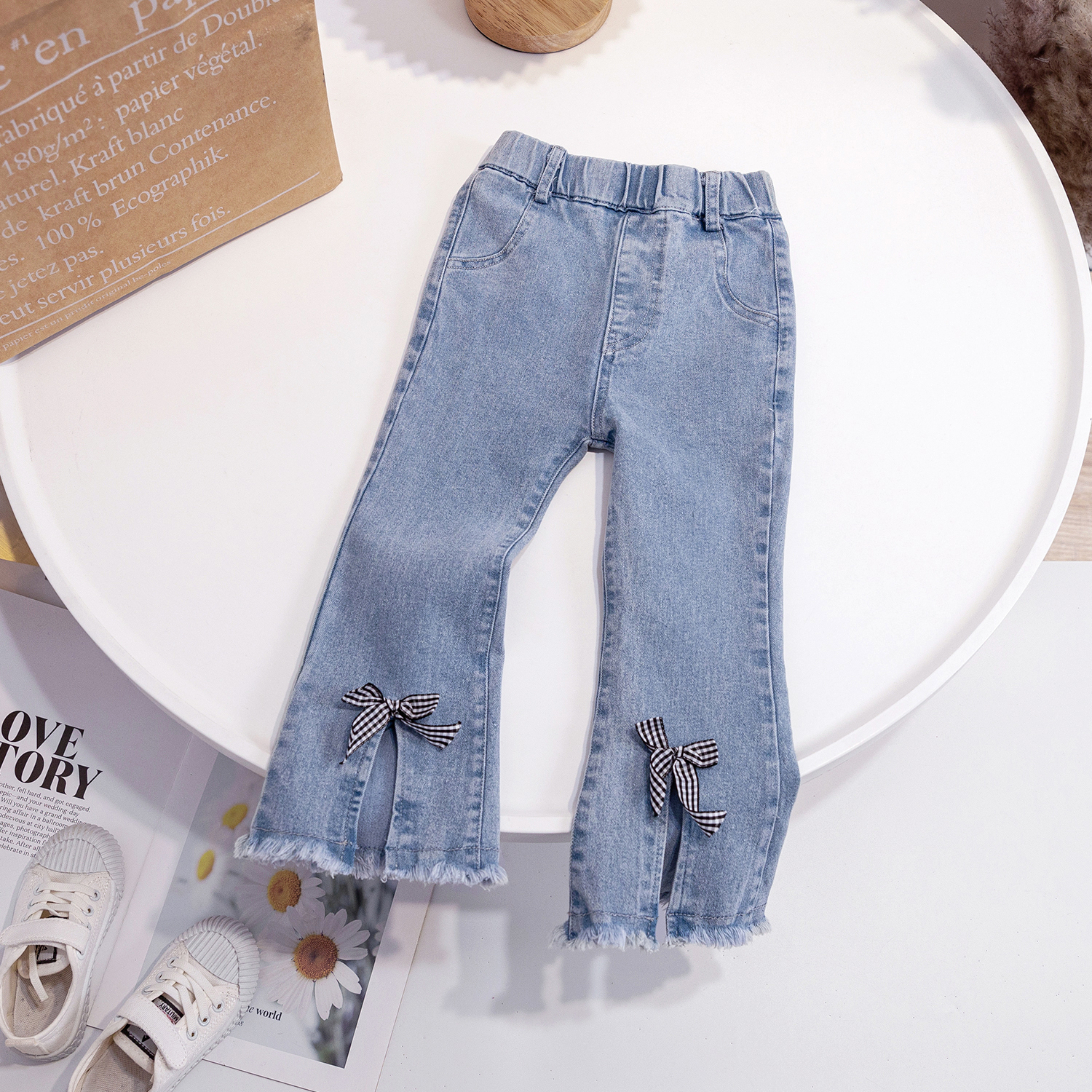 아동 청바지 2025 봄, 가을 새로운 스타일 소녀 슬림 한국 스타일 나비 플레어 바지 아동 긴 바지 유행스토어 가기