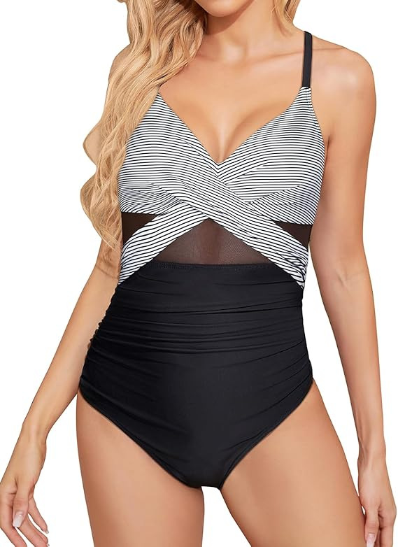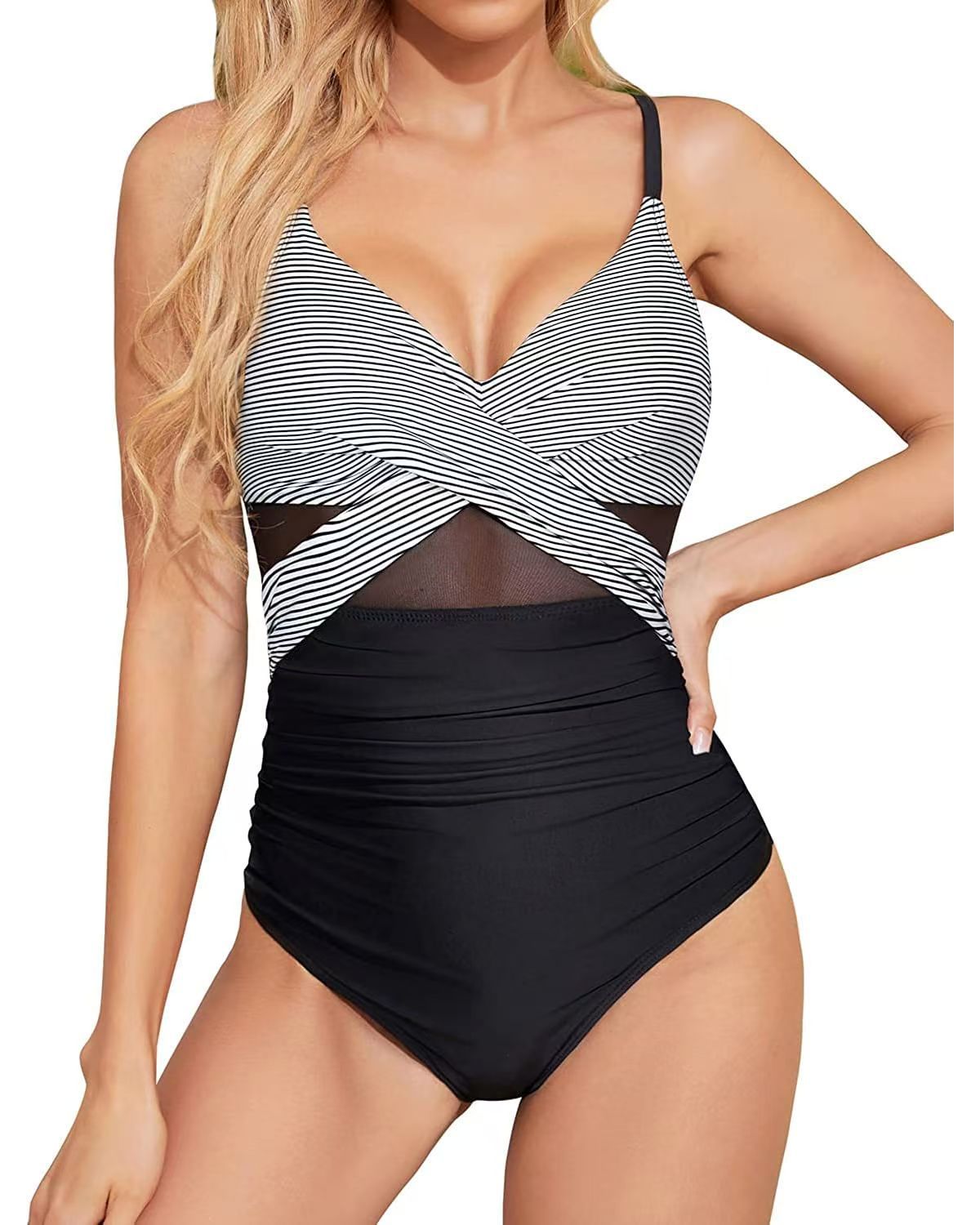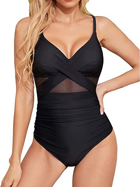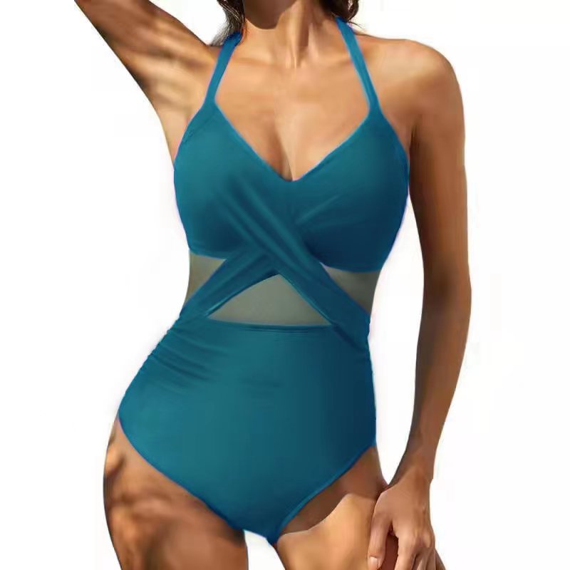 신상 유럽풍 원피스 수영복, 슬림핏 배 가리기, 보수적인 크로스 디자인, 스포츠 수영, 온천복, 여성용, 공장 직판 도매스토어 가기