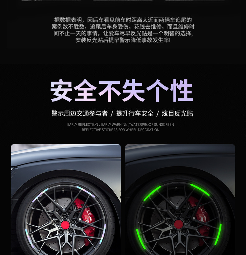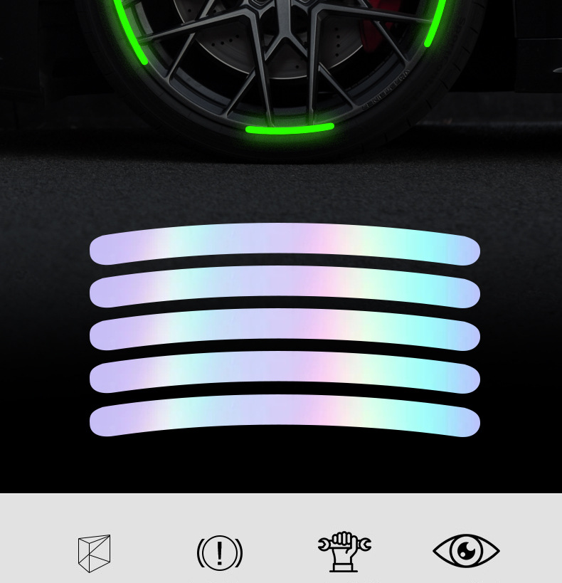 자동차 반사 휠 허브 스티커 다채로운 발광 타이어 고무 스트립 오토바이 전기 자동차 성격 창조적 인 장식 용품