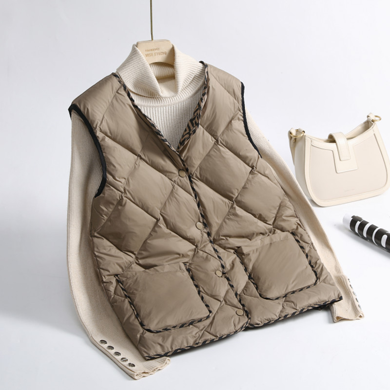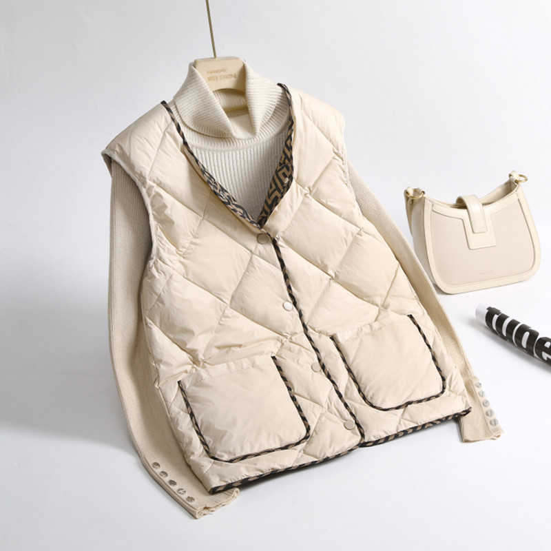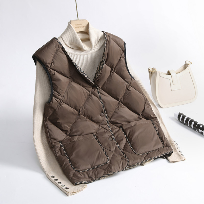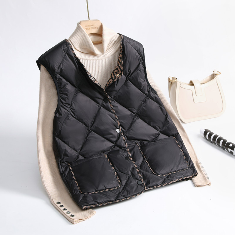 크로스 보더 가을과 겨울 새로운 가볍고 얇은 다운 조끼 여성용 짧은 샤넬 스타일 캐주얼 조끼 라운드 넥 화이트 오리 다운 조끼