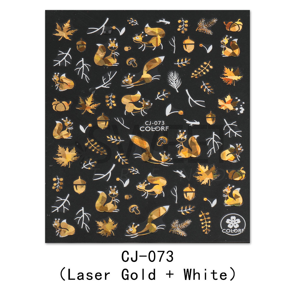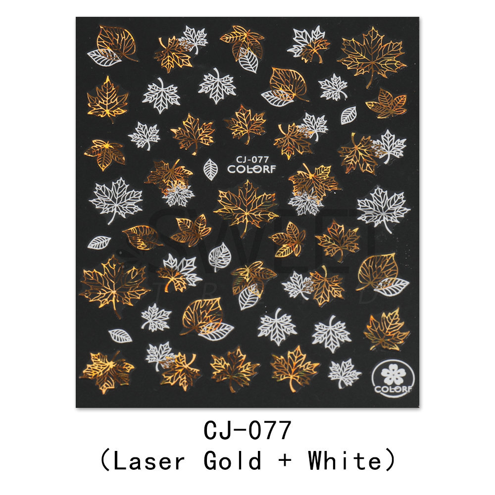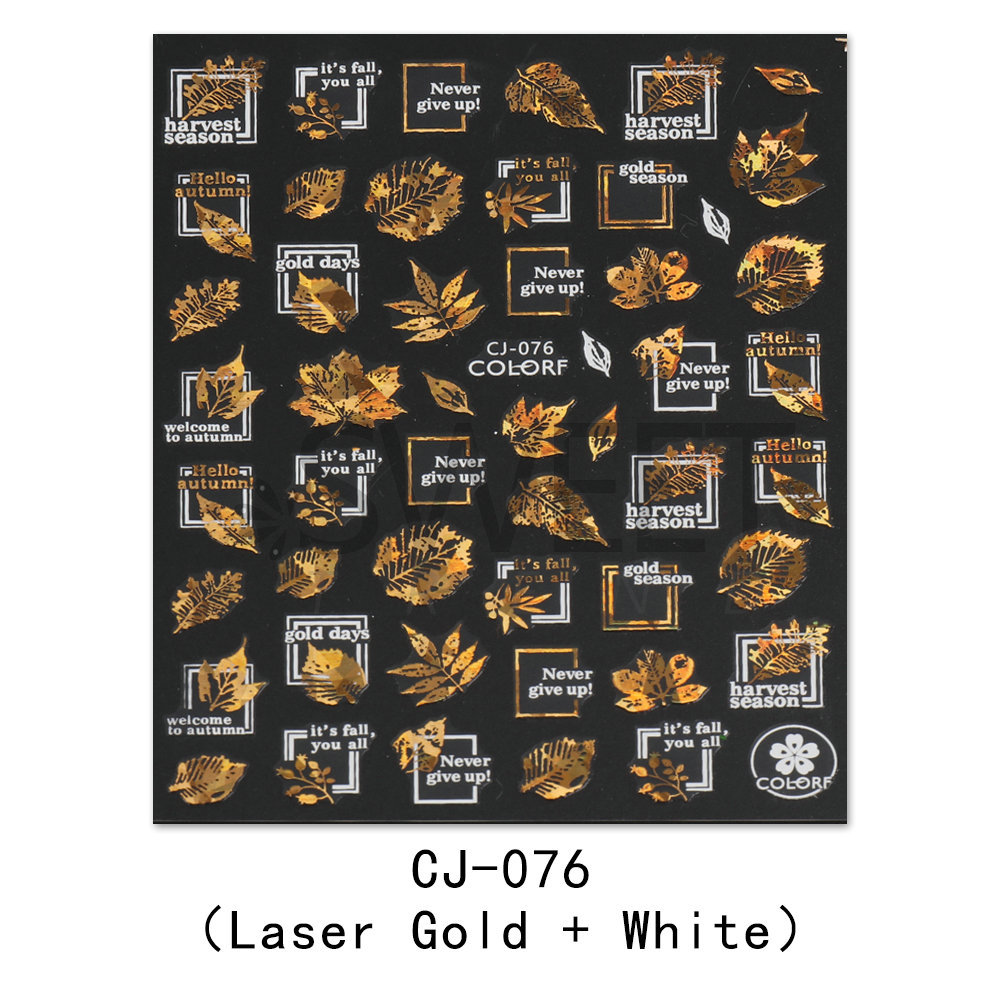 크로스 보더 네일 아트 스티커 도매 2 색 브론징 가을 3D 자체 접착 네일 스티커 레이저 골드 메이플 리프 편지 팬스토어 가기