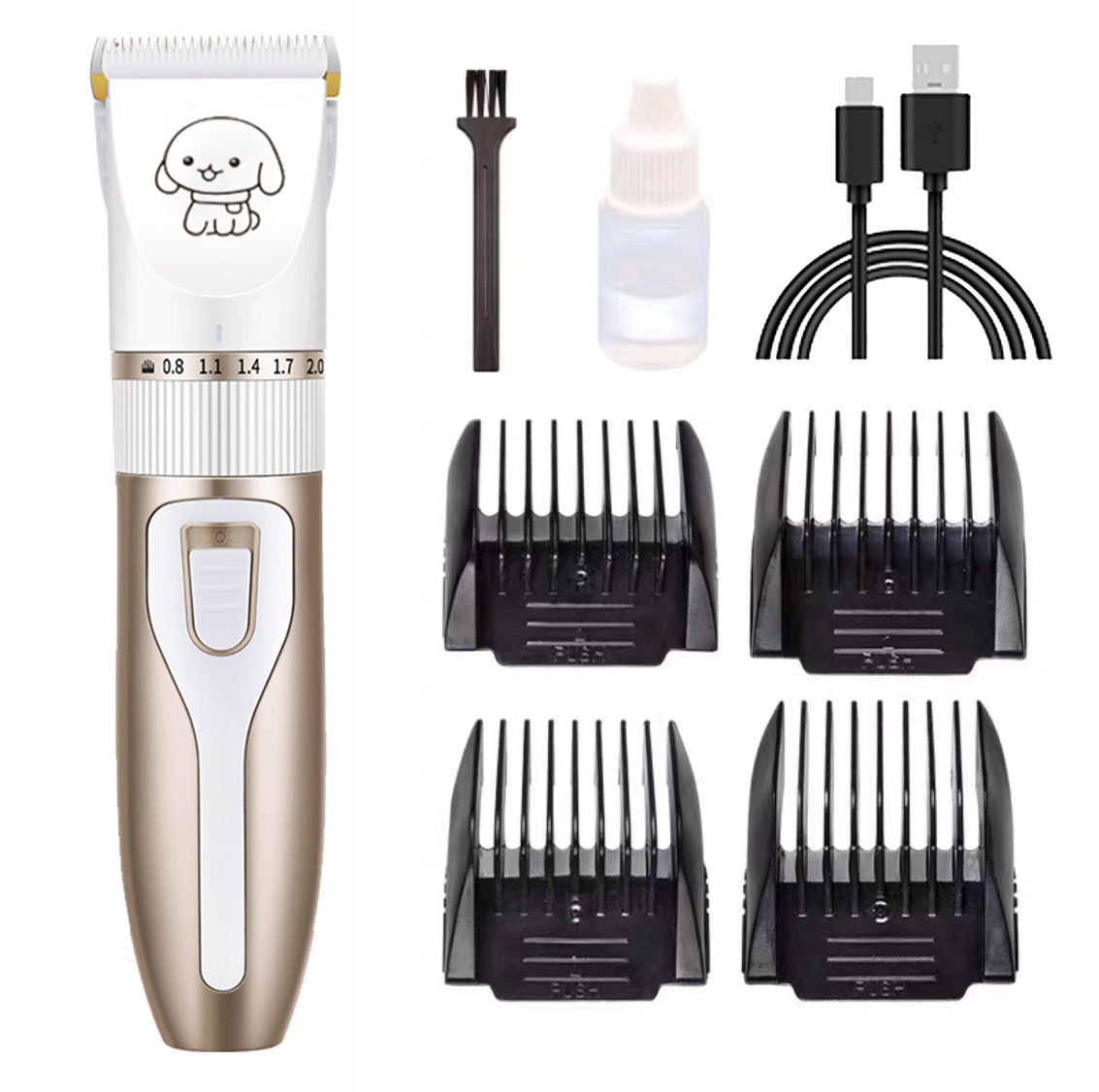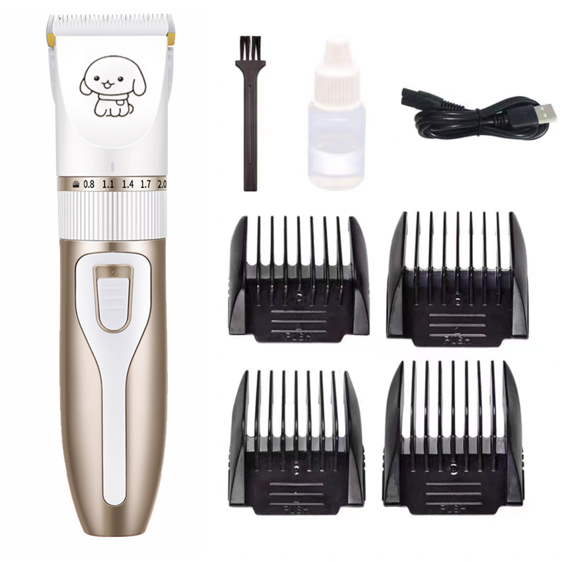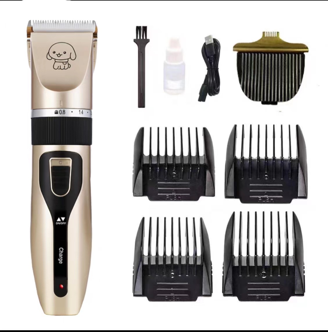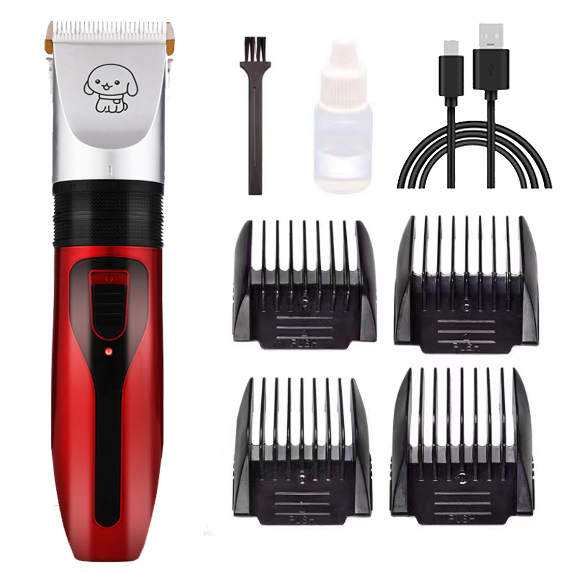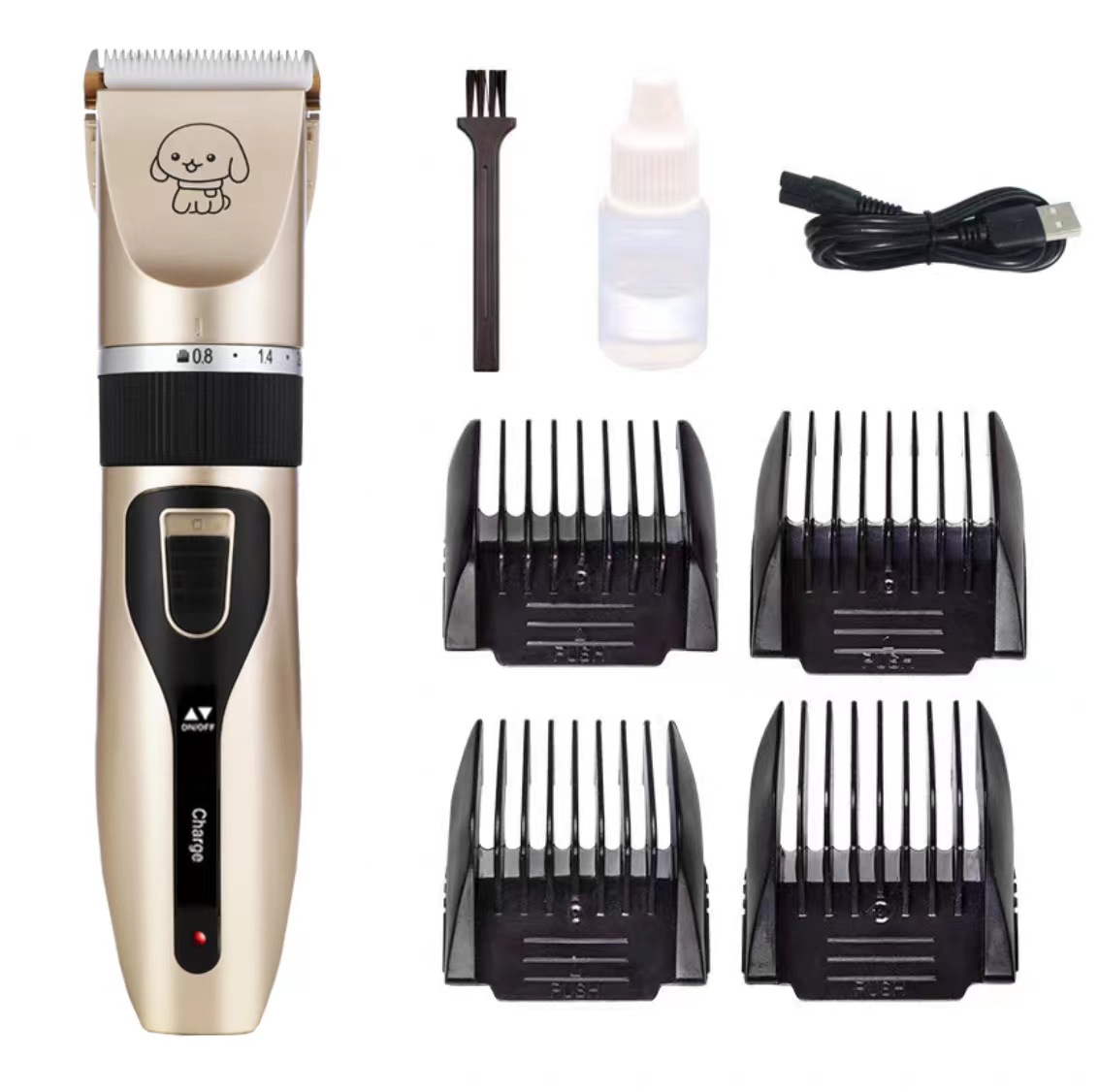 产品标配:主机、限位梳4个、说明书、清洁刷、USB充电线、润滑油(跨境出货可备注不要油)