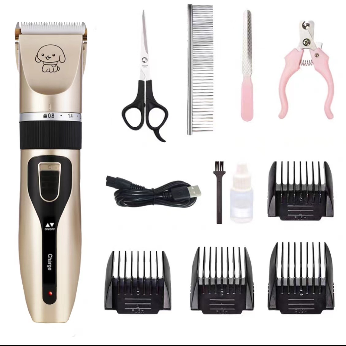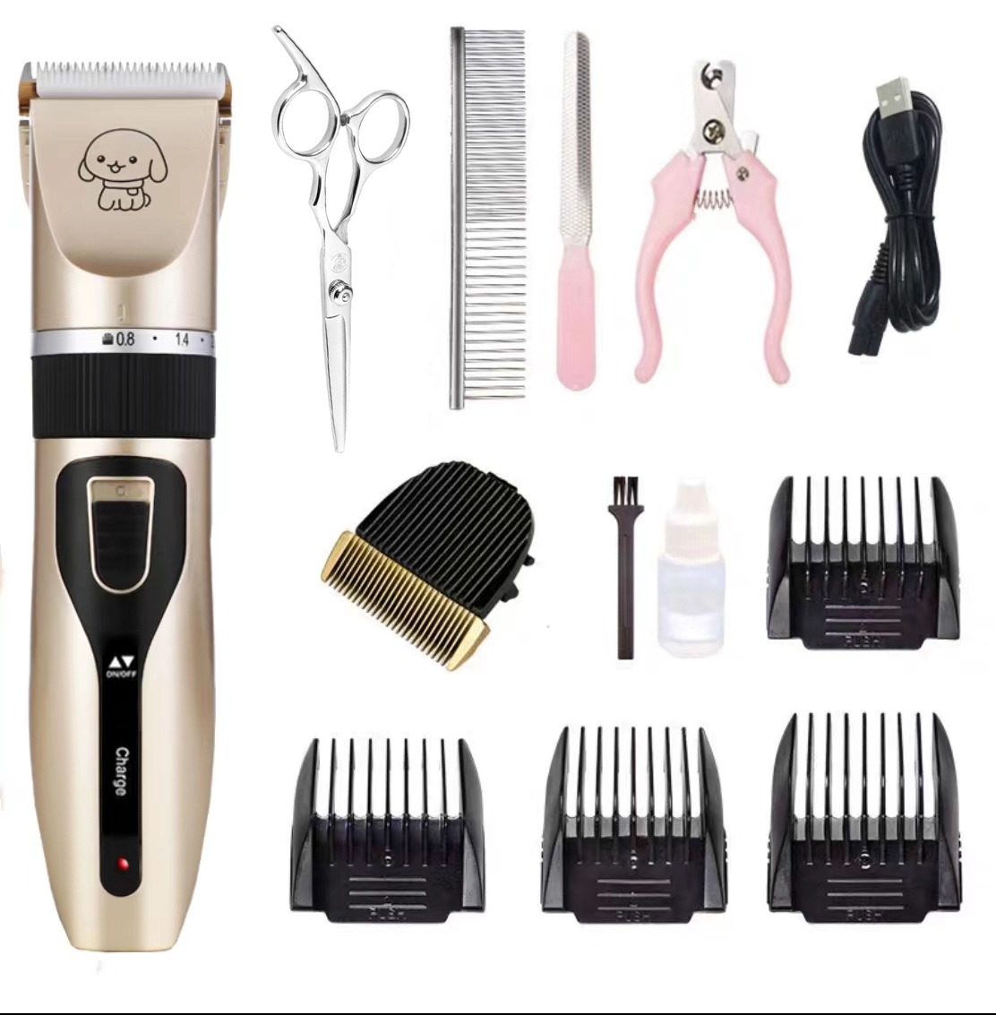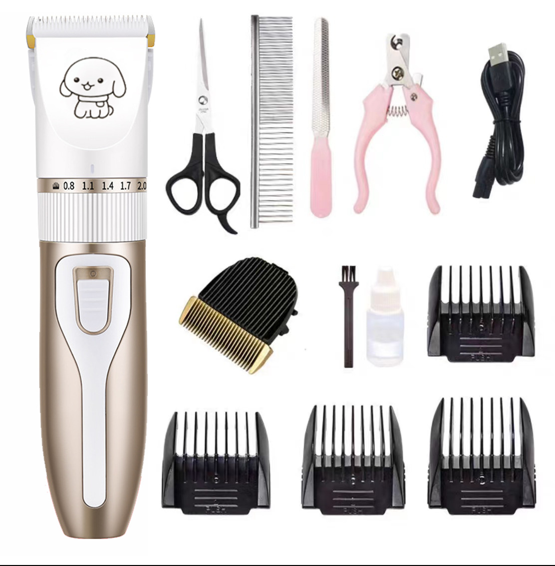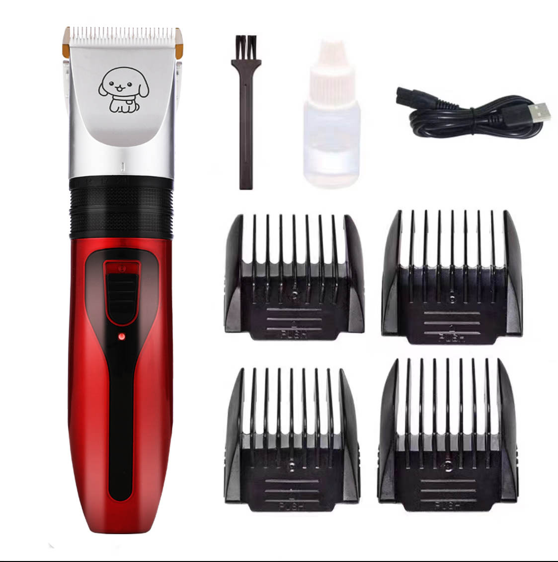 产品标配:主机、限位梳4个、说明书、清洁刷、USB充电线、润滑油(跨境出货可备注不要油)