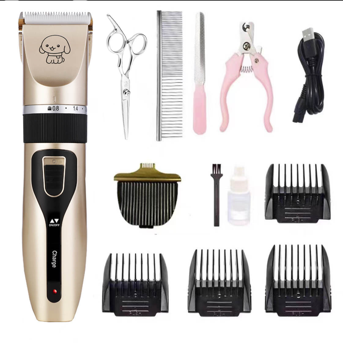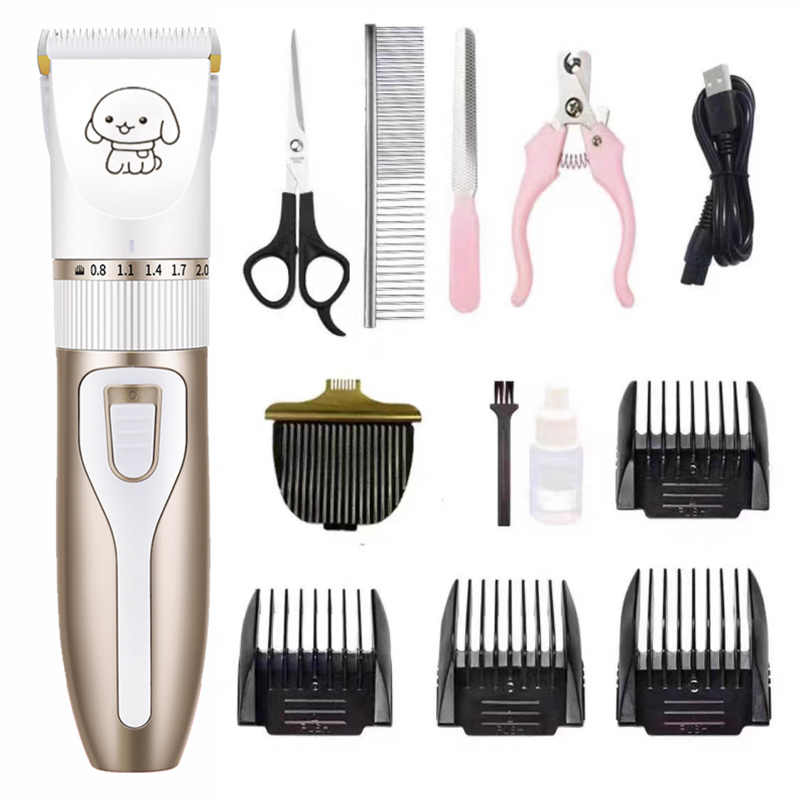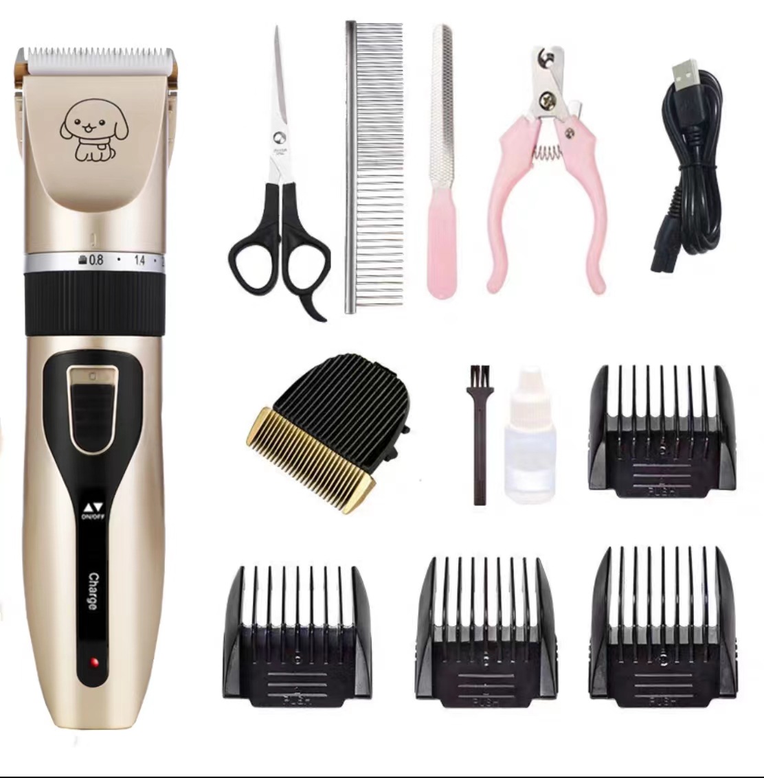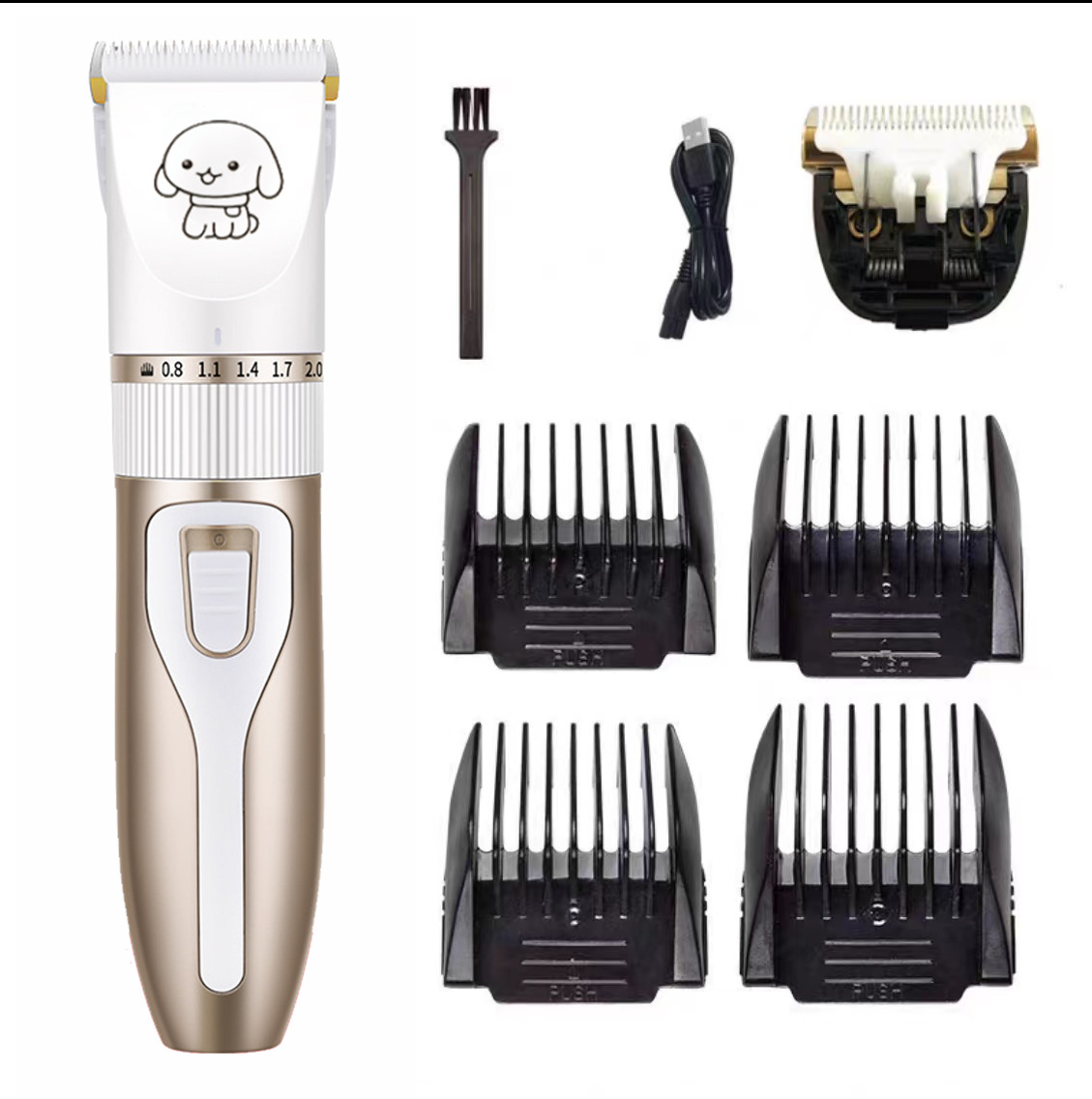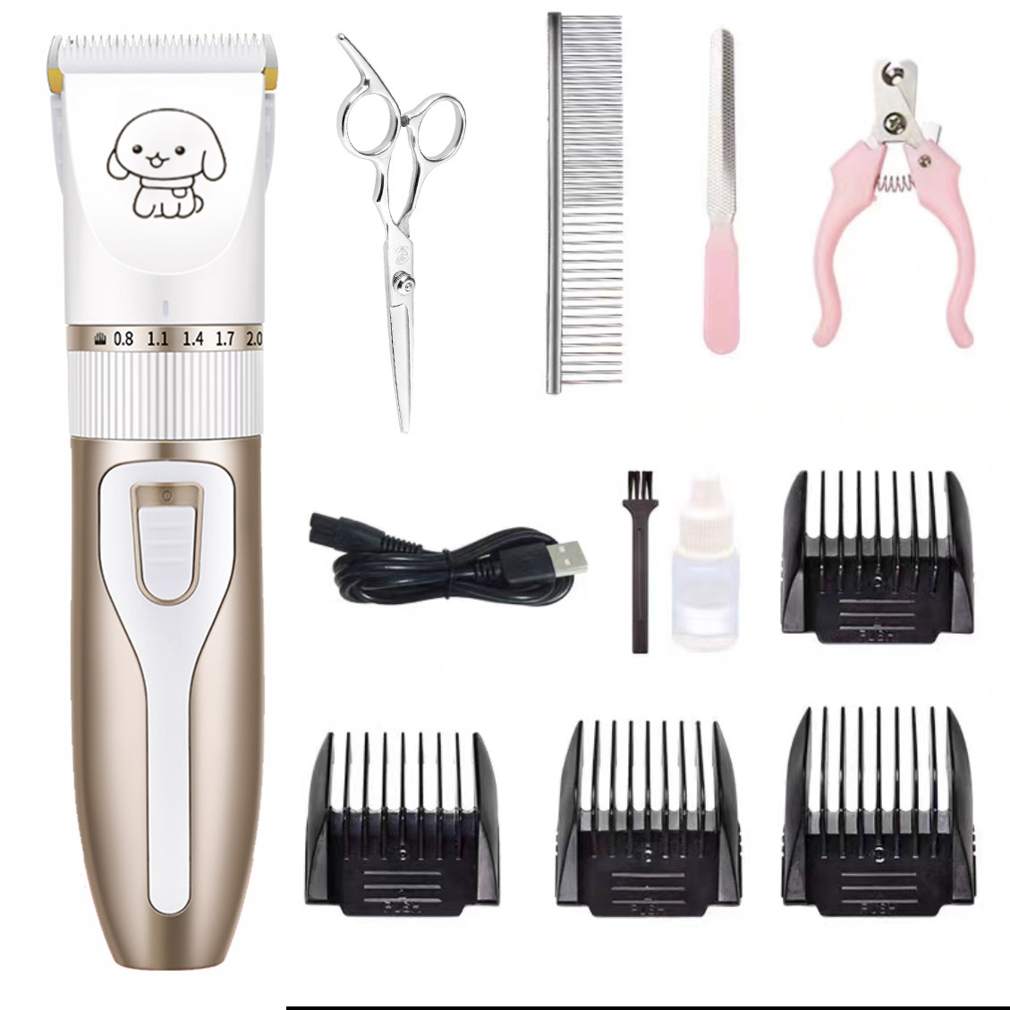 产品标配:主机、限位梳4个、说明书、清洁刷、USB充电线、润滑油(跨境出货可备注不要油)