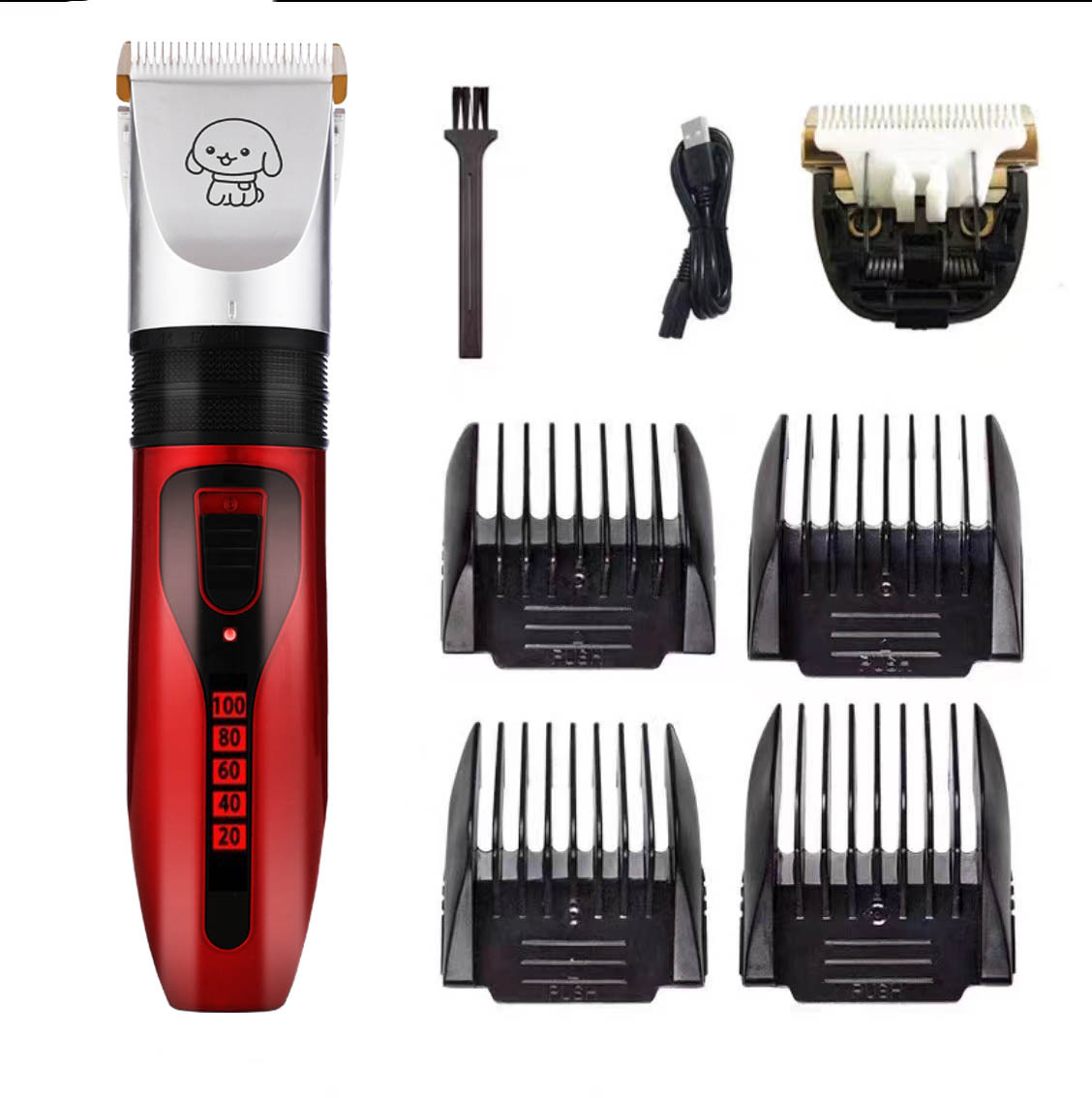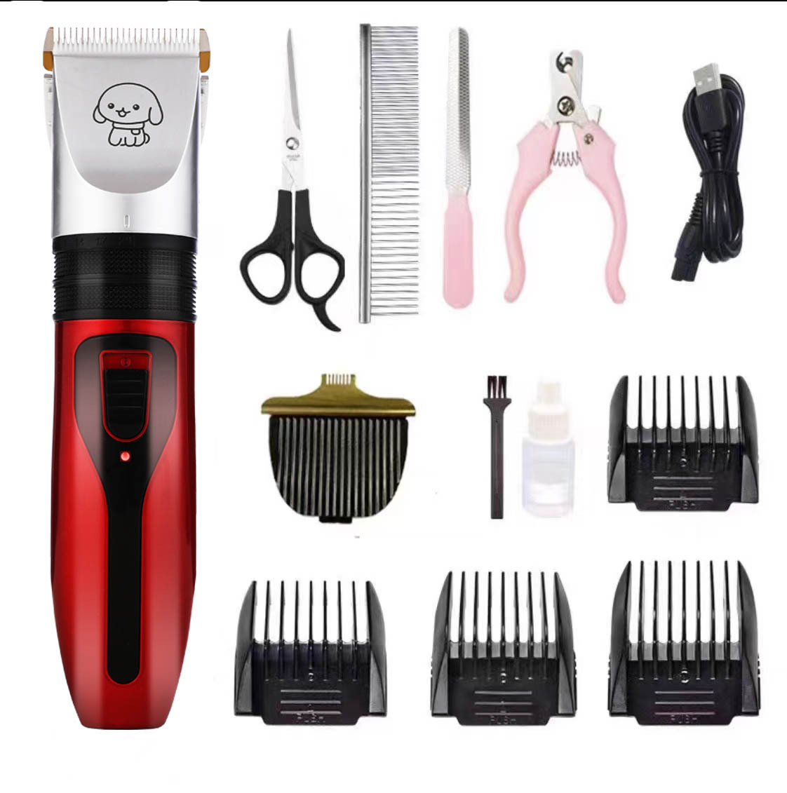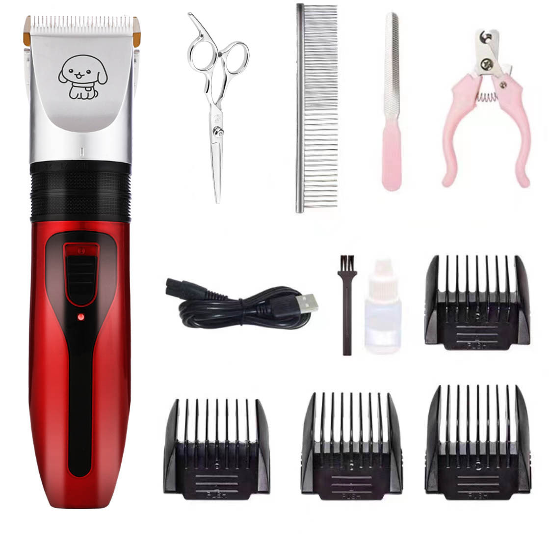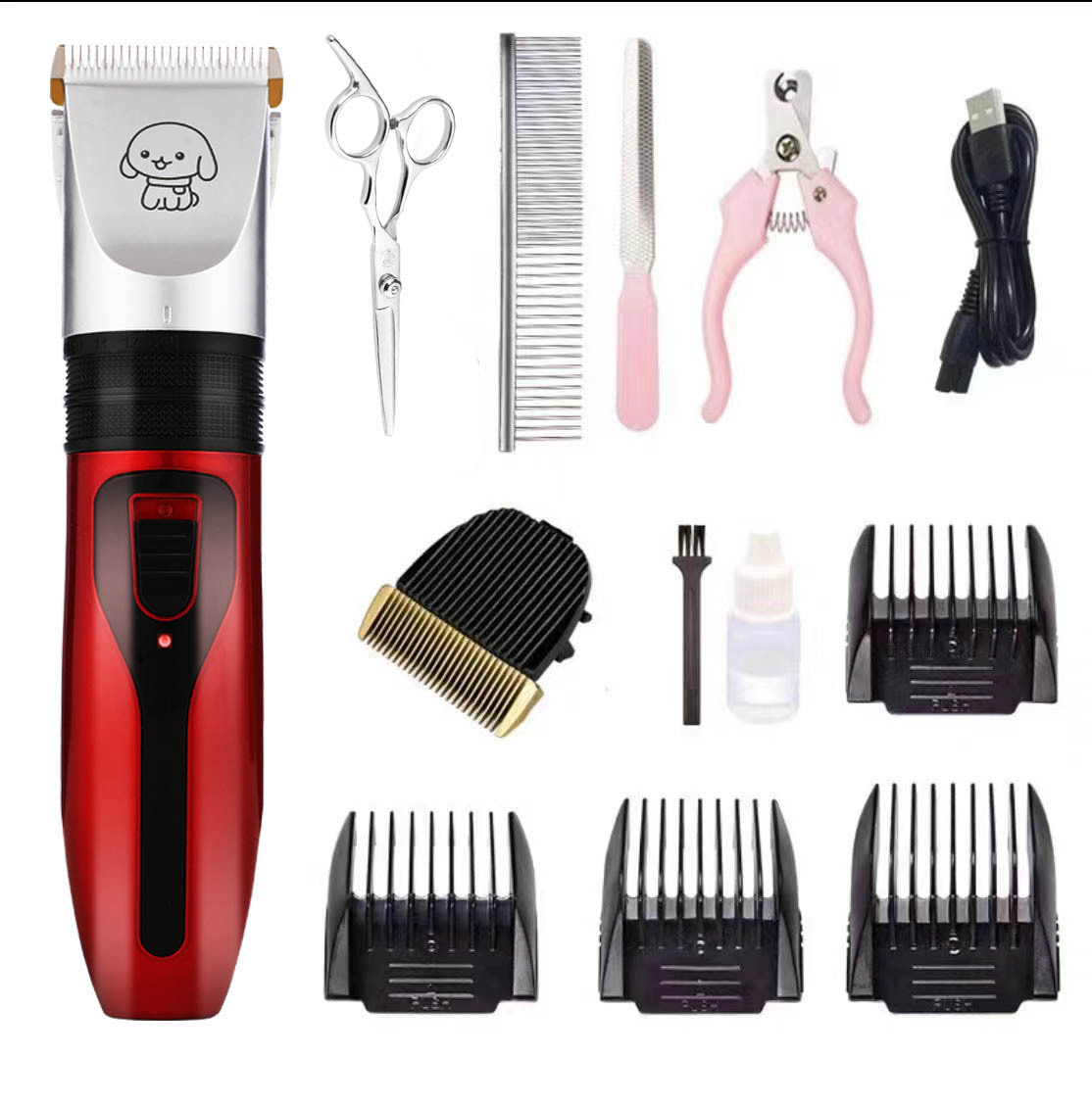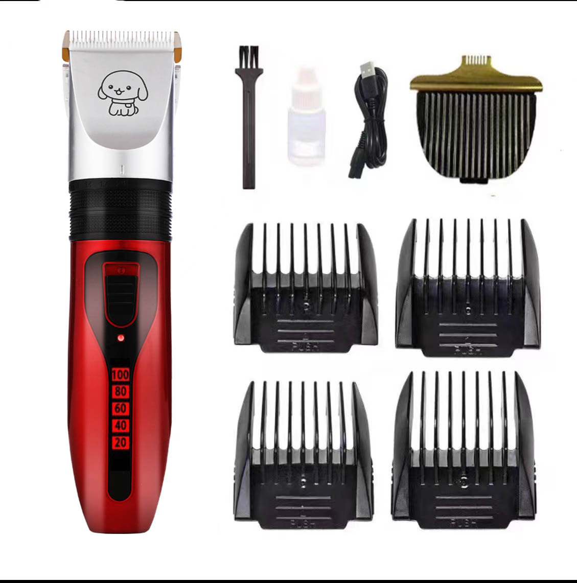 产品标配:主机、限位梳4个、说明书、清洁刷、USB充电线、润滑油(跨境出货可备注不要油)