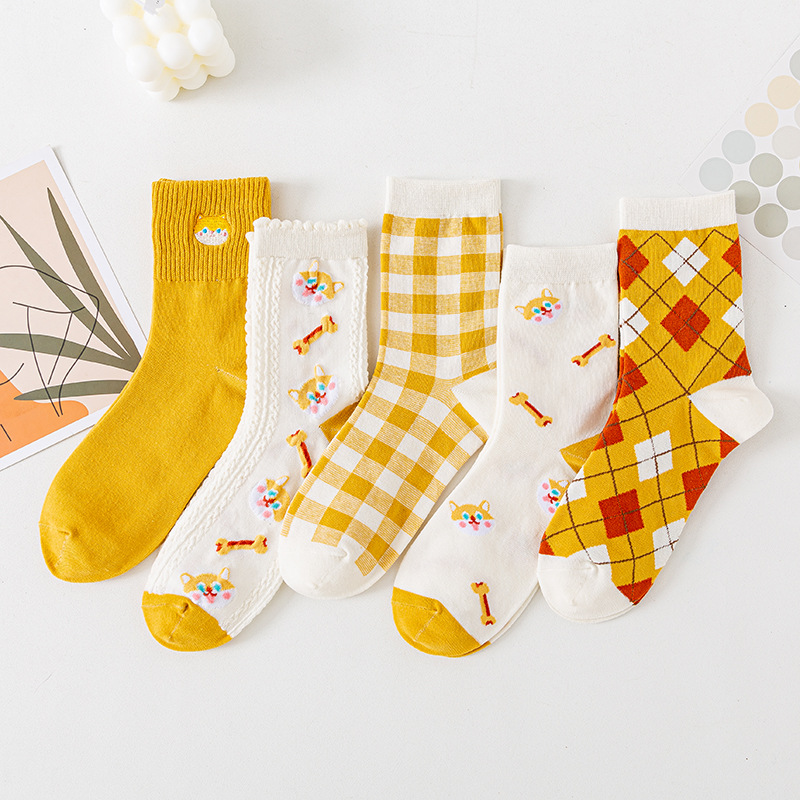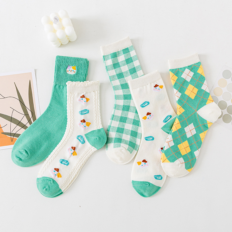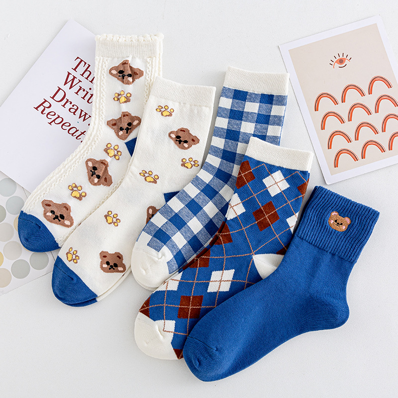 5 쌍의 가방 면화 양말 어린이 가을과 겨울 대학 스타일 일본식 숙녀 양말 따뜻한 자수 양말 도매스토어 가기