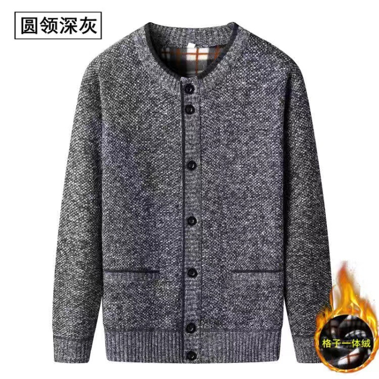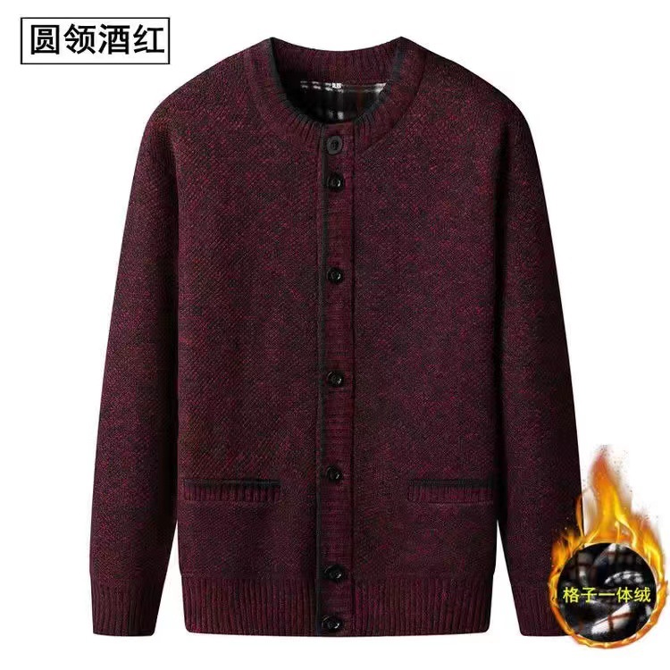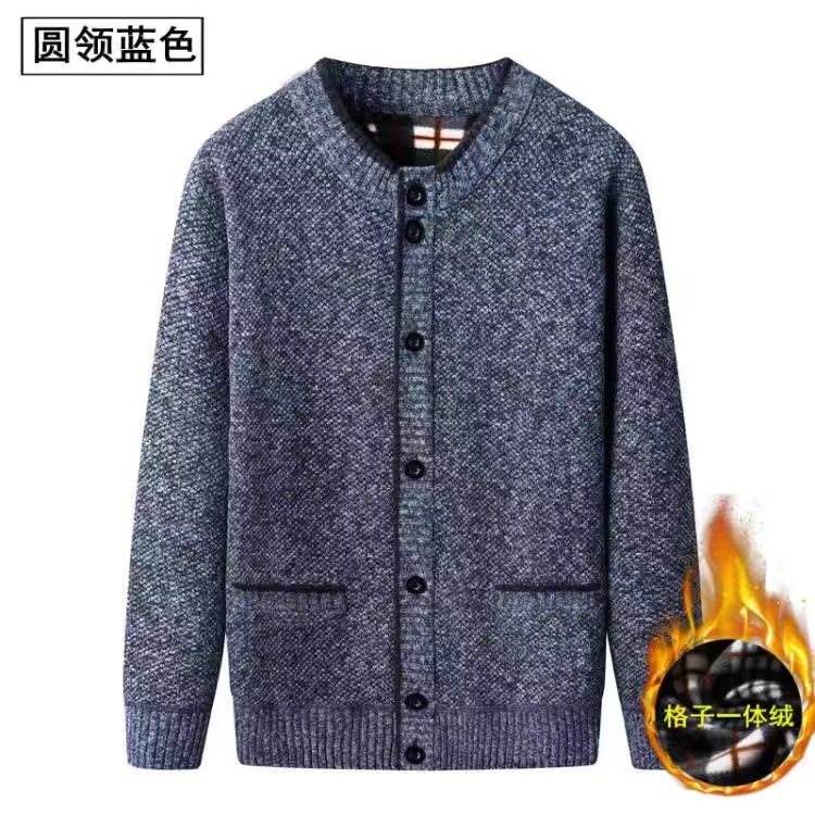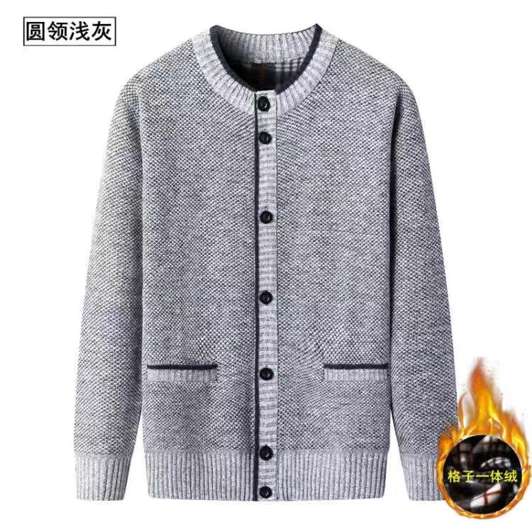 중년 및 노인 남성 스탠드 칼라 가디건 기모 패딩 니트 코트 할아버지 따뜻한 코트 세대