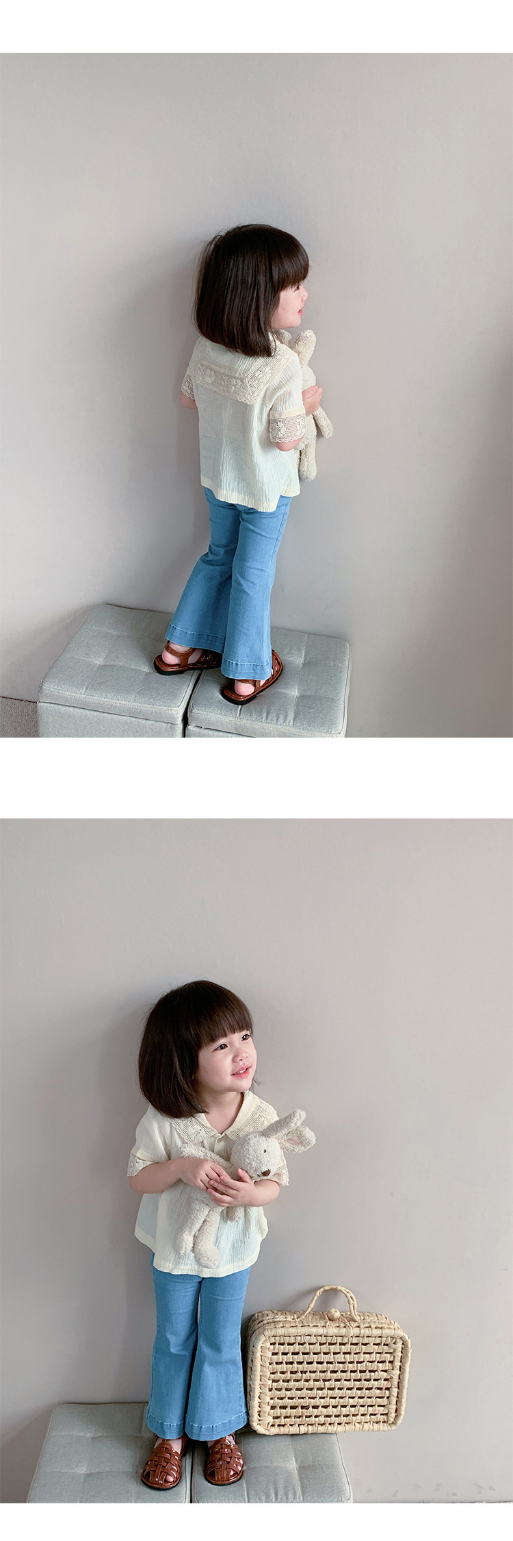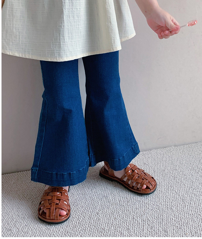 어린이 높은 허리 청바지 가을 소녀 패션 플레어 바지 스트레치 슬림 바지 3-8 세 아동 의류 머리카락 세대스토어 가기