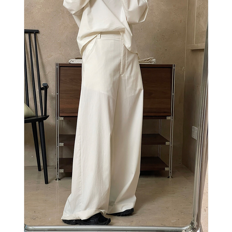 "개인 스타일" 이른 가을 새로운 한국어 버전 Blogger 스타일 더블 레이어 스티칭 허리 캐주얼 바지 여성용 와이드 레그 슬리밍 바지