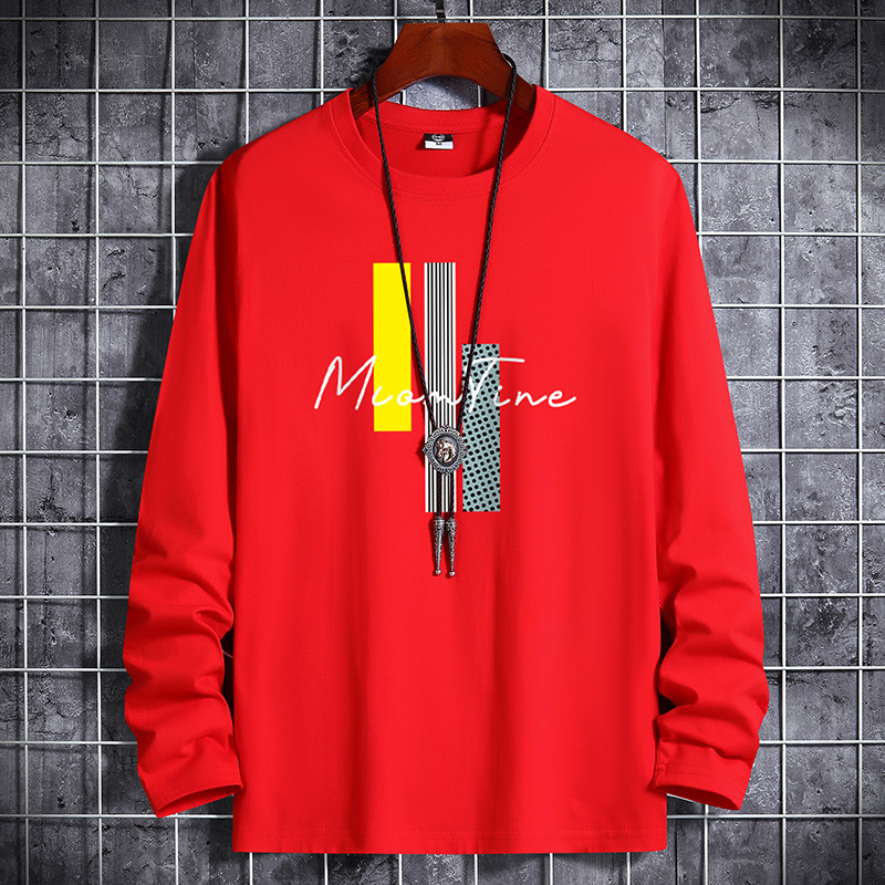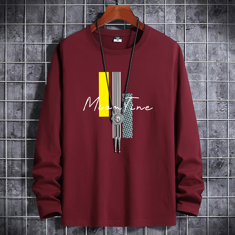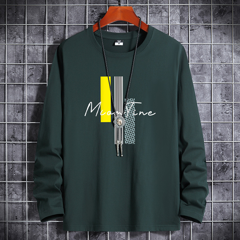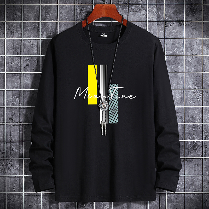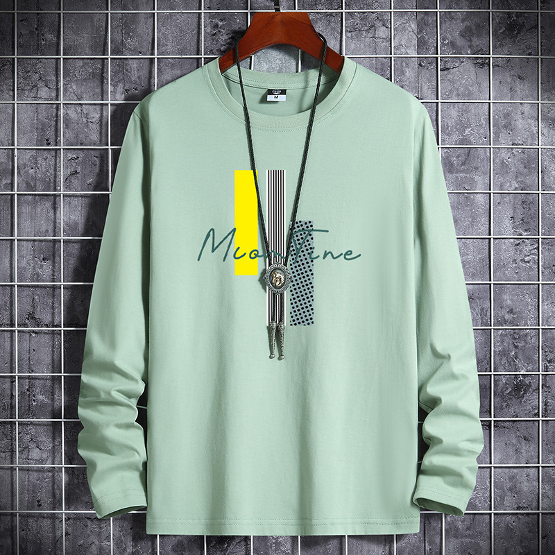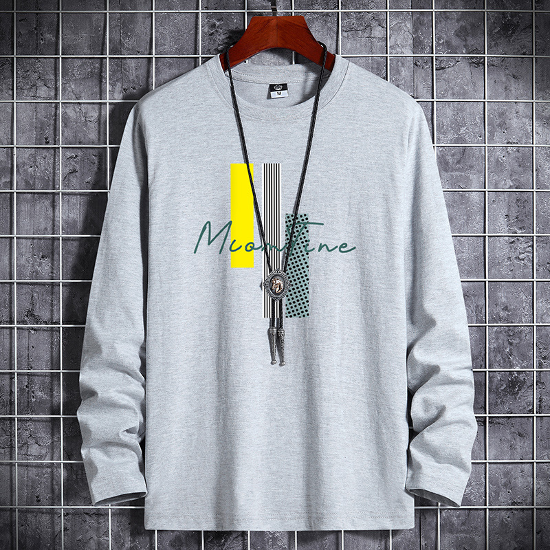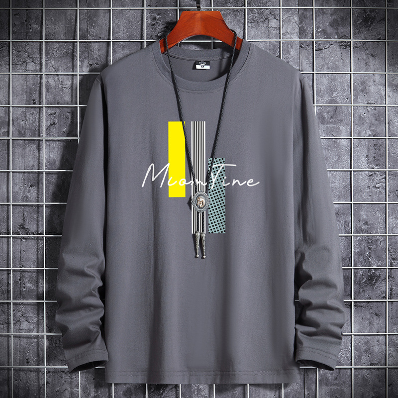 200g 코튼 남성용 긴팔 티셔츠 봄과 가을 트렌디 한 순수한 흰색 스웨터 바닥 셔츠 가을 옷 남성용 탑