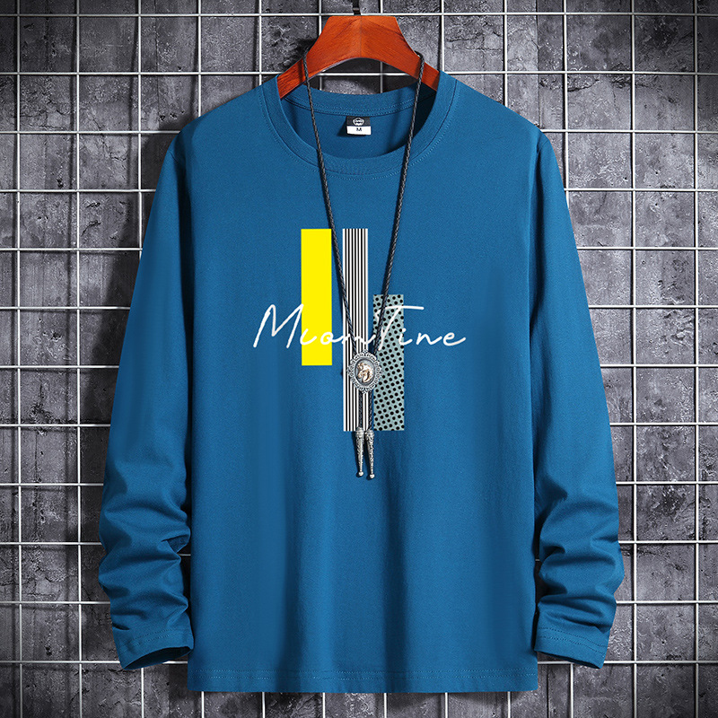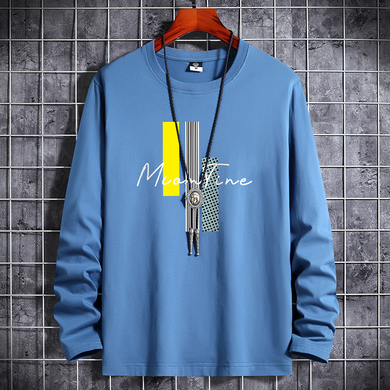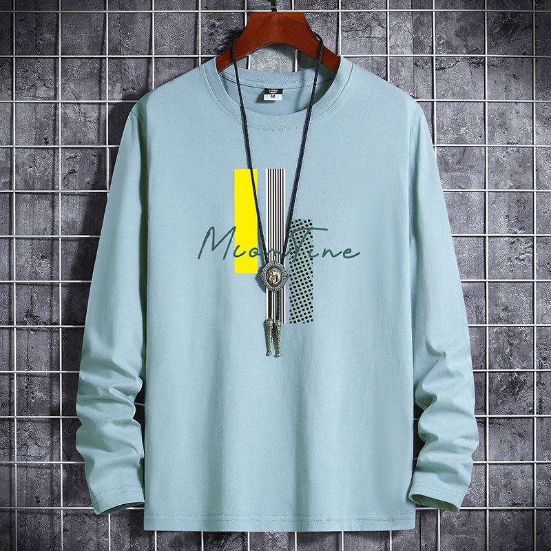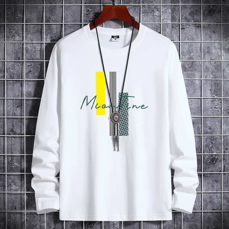 200g 코튼 남성용 긴팔 티셔츠 봄과 가을 트렌디 한 순수한 흰색 스웨터 바닥 셔츠 가을 옷 남성용 탑스토어 가기