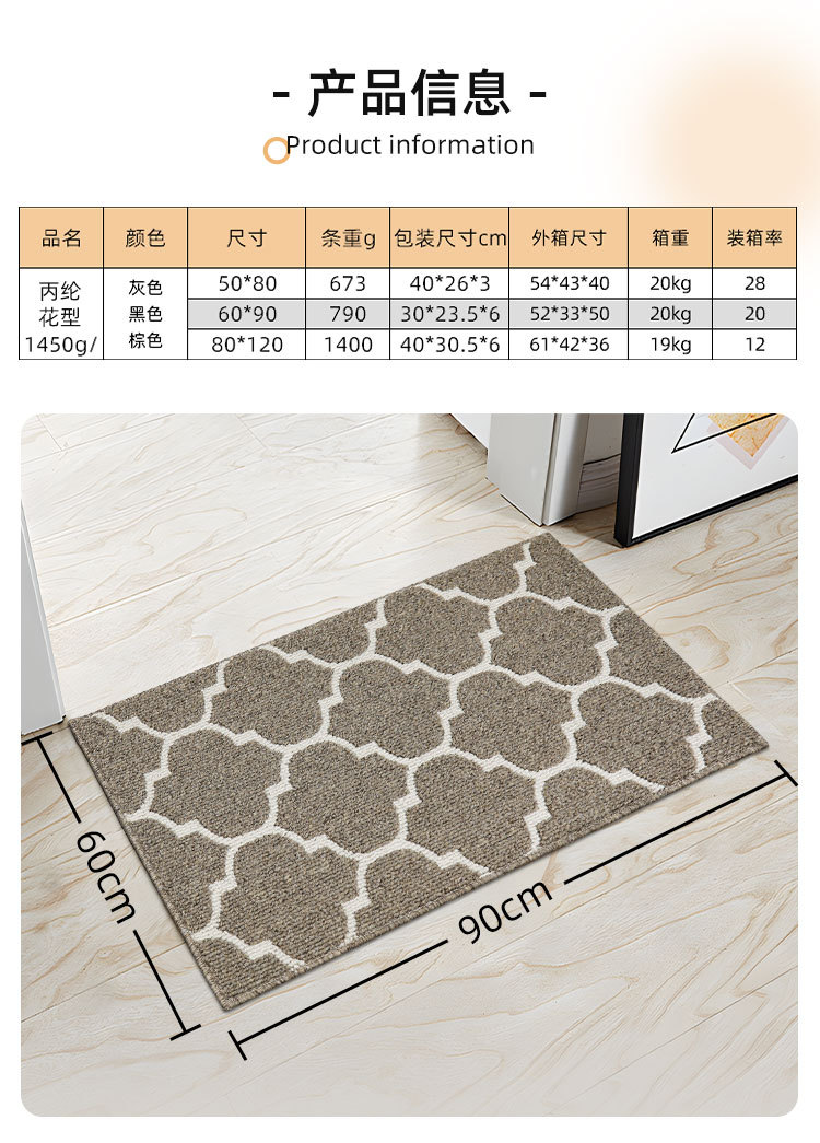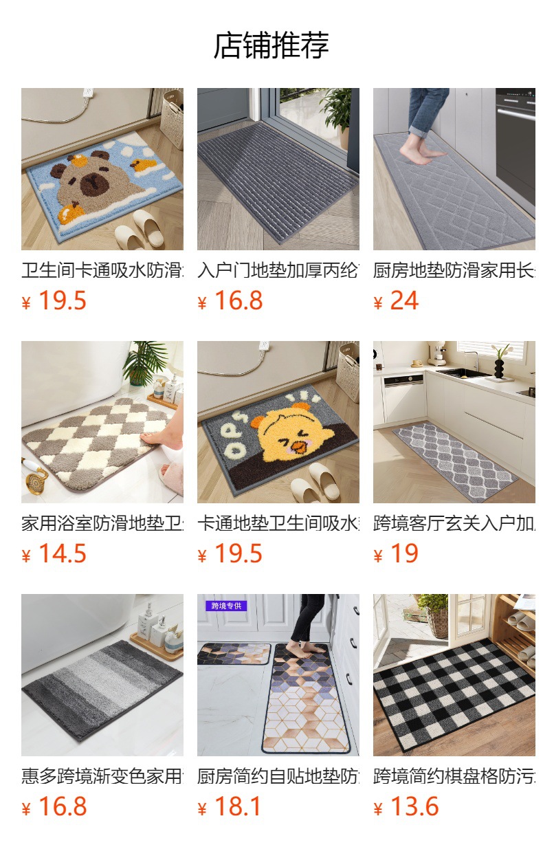 主要生产和销售植绒垫、印花门垫、提花垫、防滑垫、欧式植绒垫、卫浴垫等多种不同风格的地垫。
