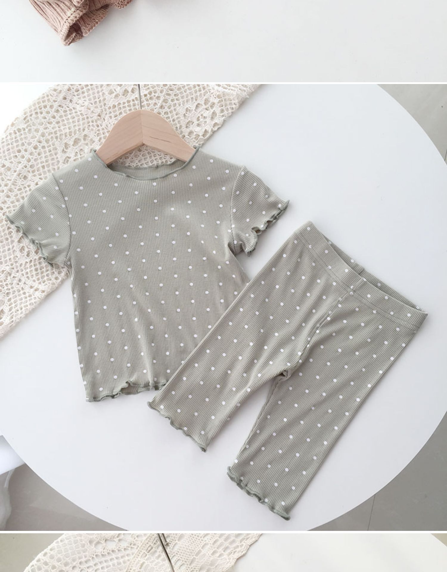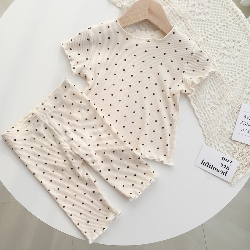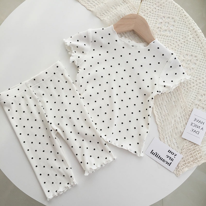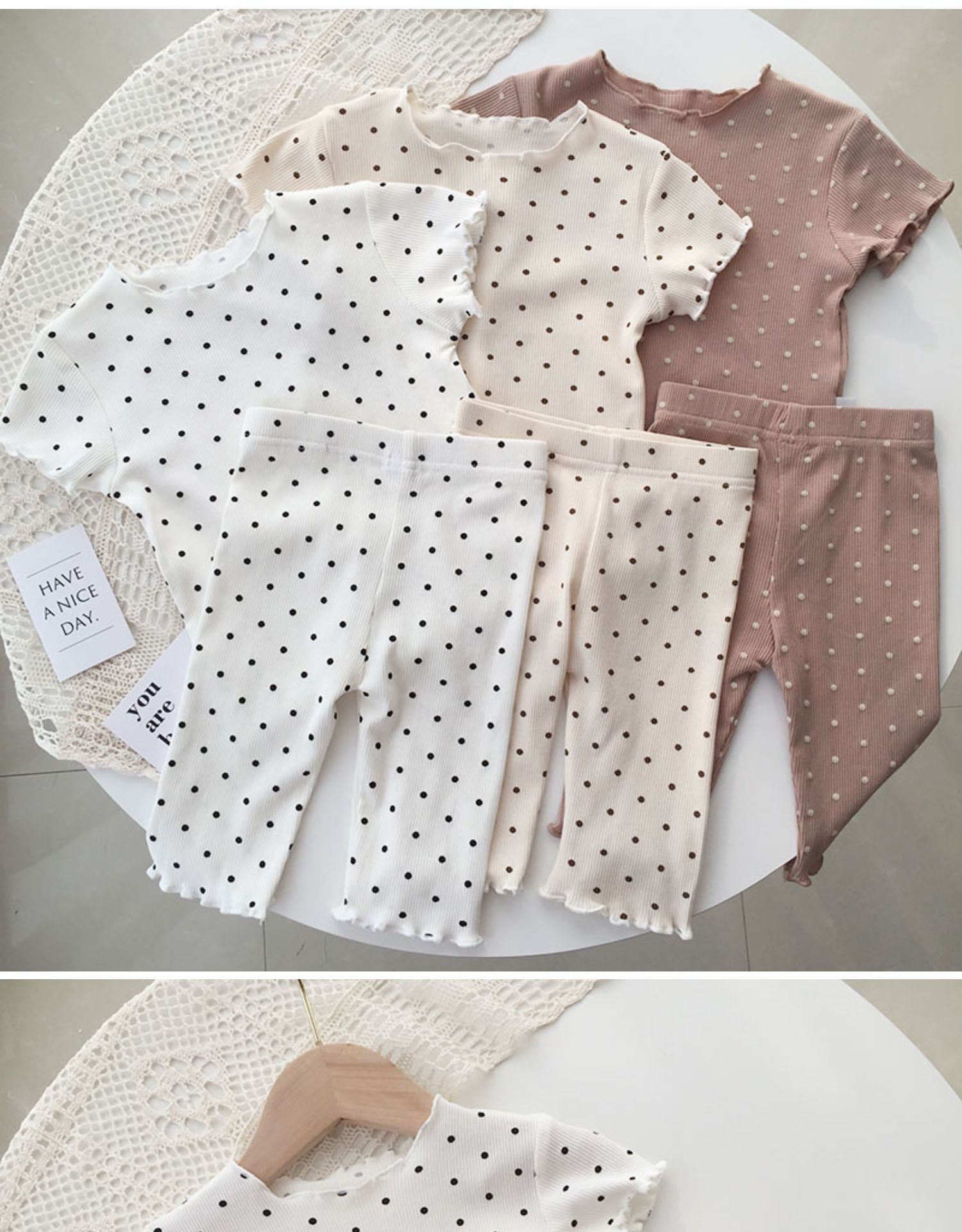 여름 여아 가정복 세트 아기 온라인 연예인 외국 스타일 어린이 개인 유행 브랜드 한류 도트 귀테 잠옷스토어 가기