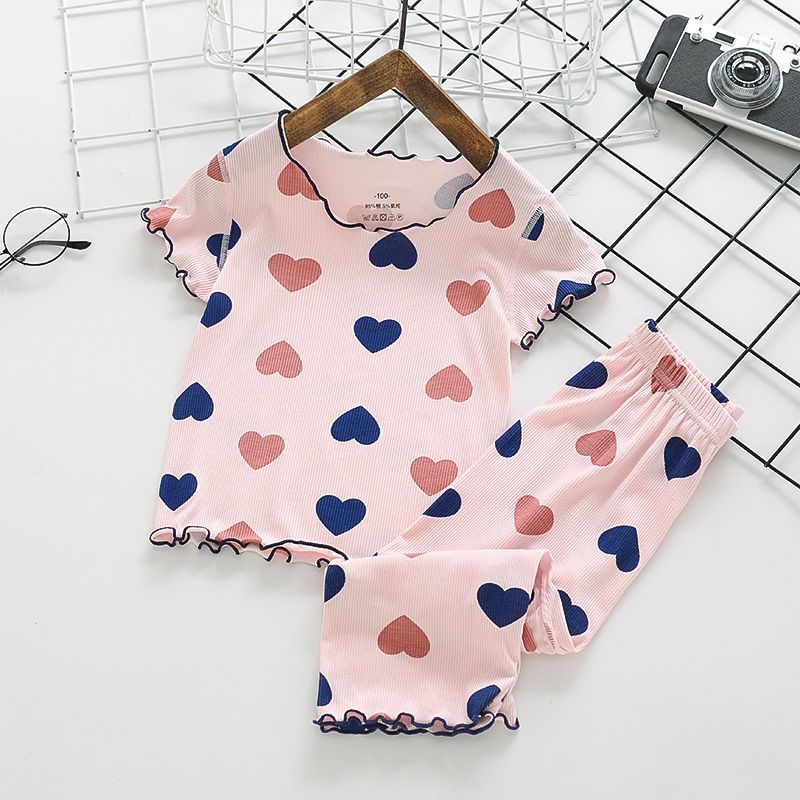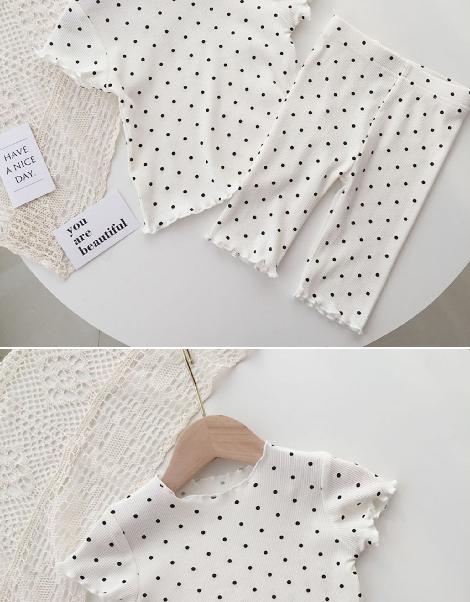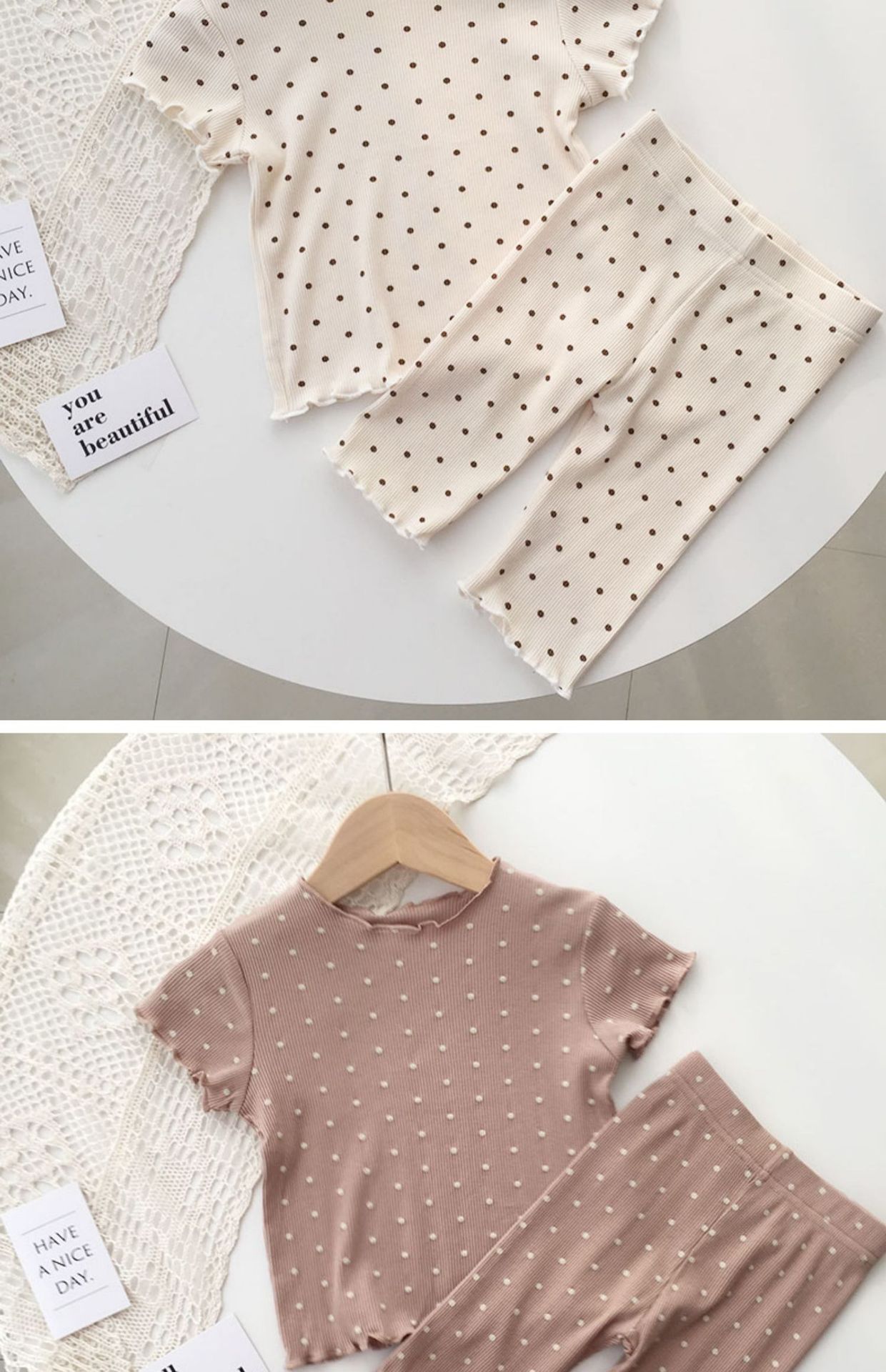 여름 여아 가정복 세트 아기 온라인 연예인 외국 스타일 어린이 개인 유행 브랜드 한류 도트 귀테 잠옷스토어 가기
