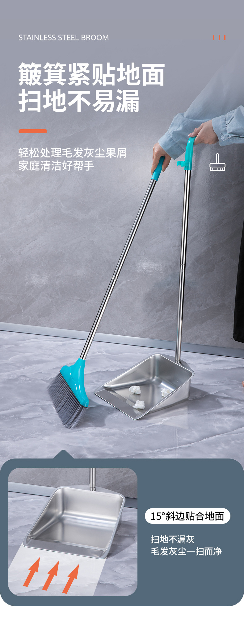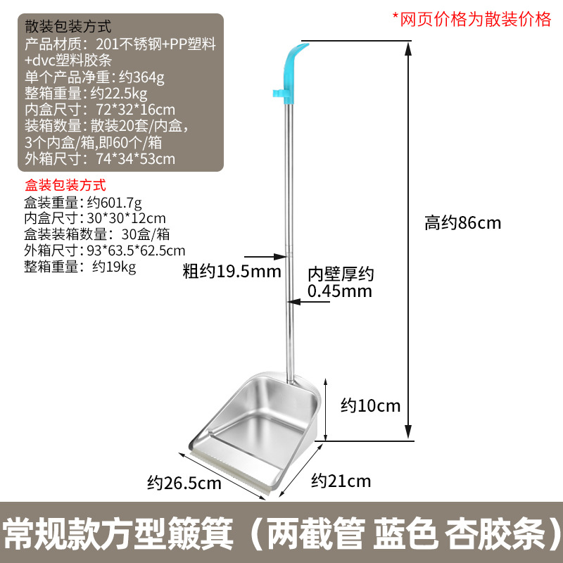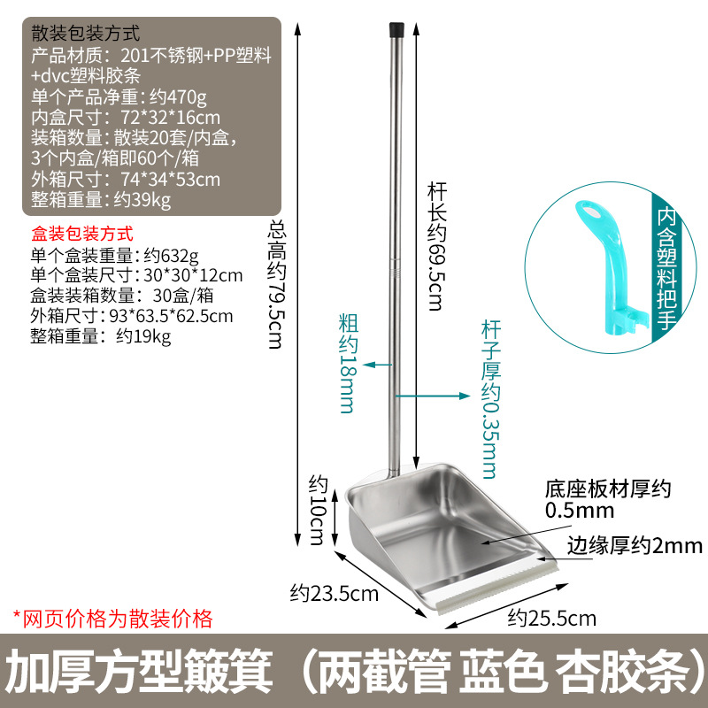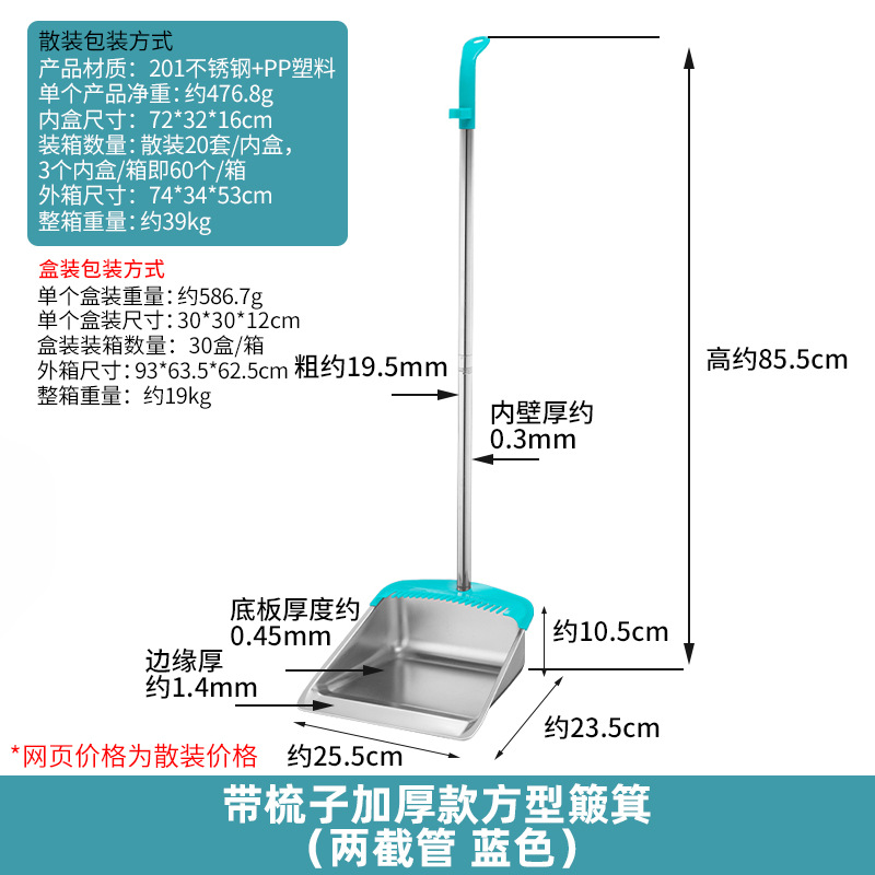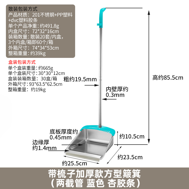 • 두꺼운 사각 쓰레받기 빗자루 세트(튜브 2개, 파란색 살구 스트립)