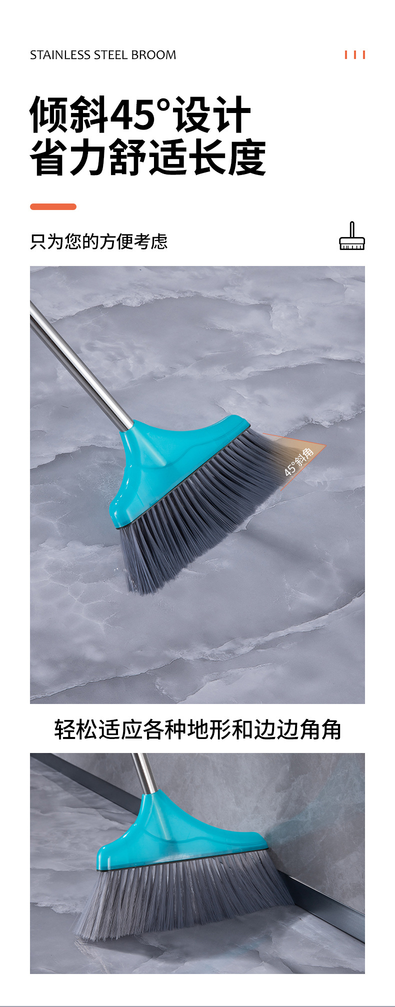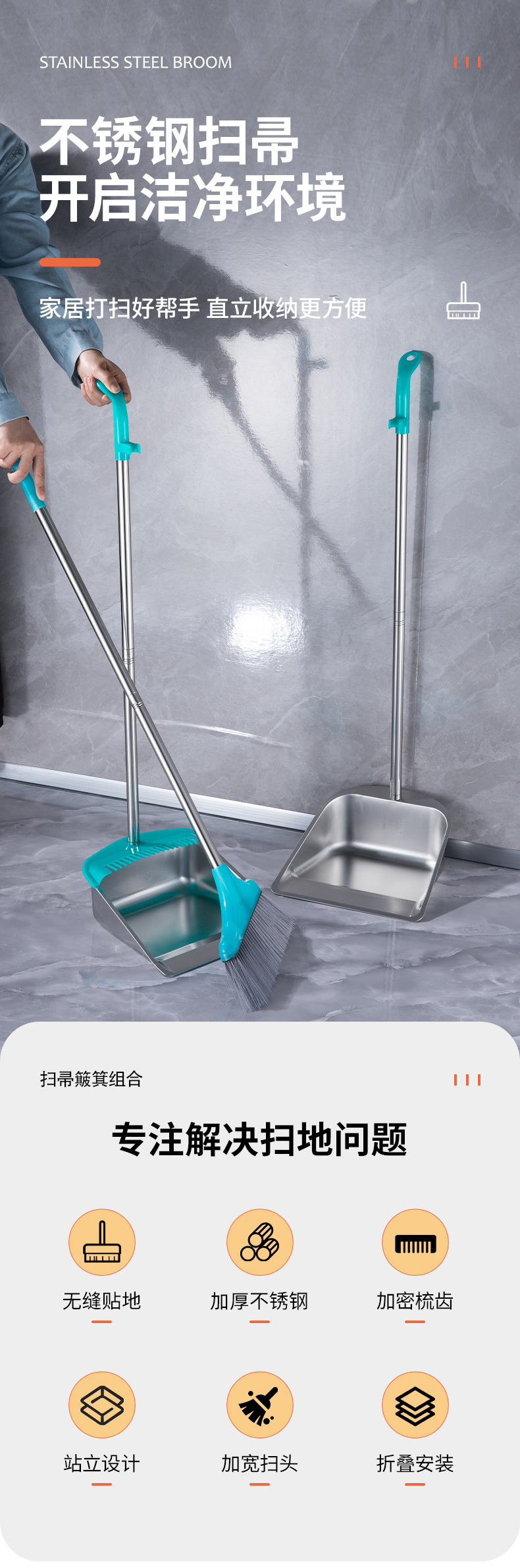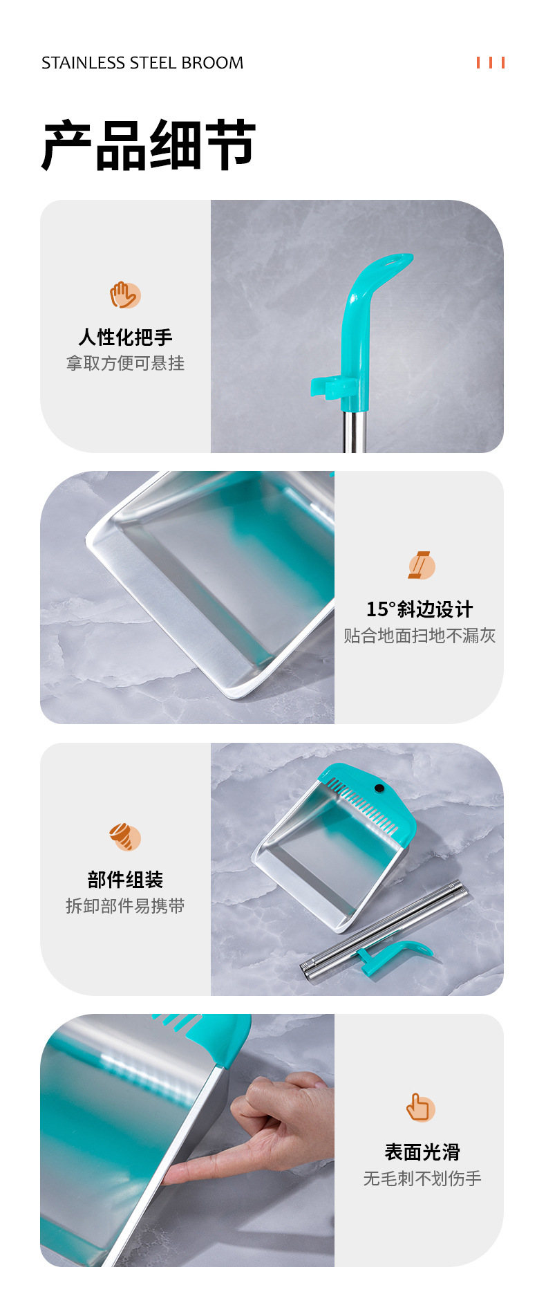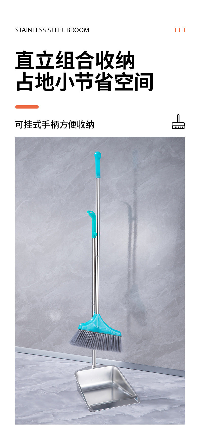 • 두꺼운 사각 쓰레받기 빗자루 세트(튜브 2개, 파란색 살구 스트립)