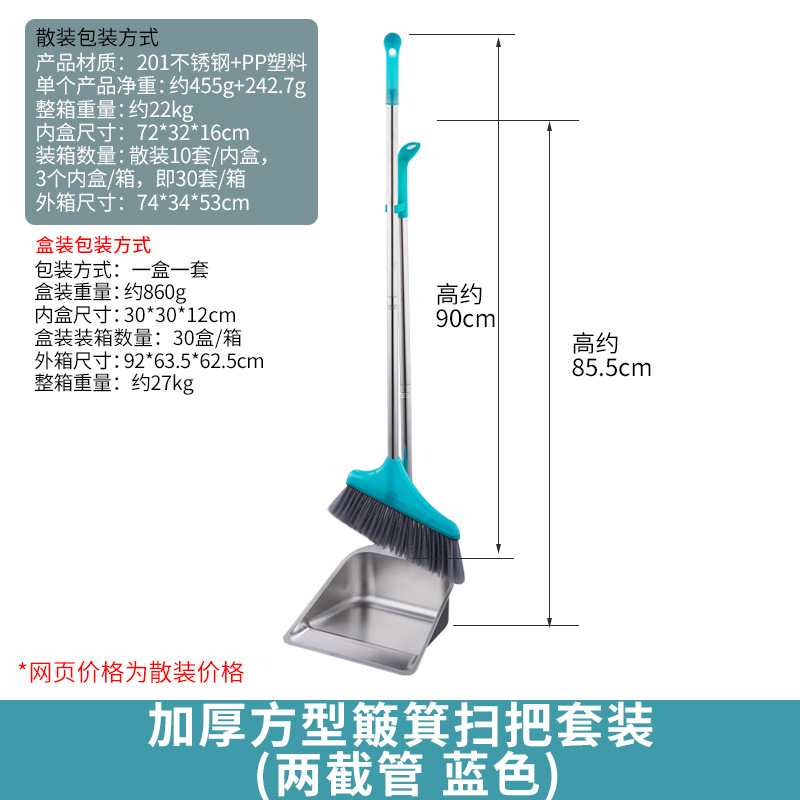 • 두꺼운 사각형 쓰레기통 빗자루 세트 (두 개의 파란색 튜브)