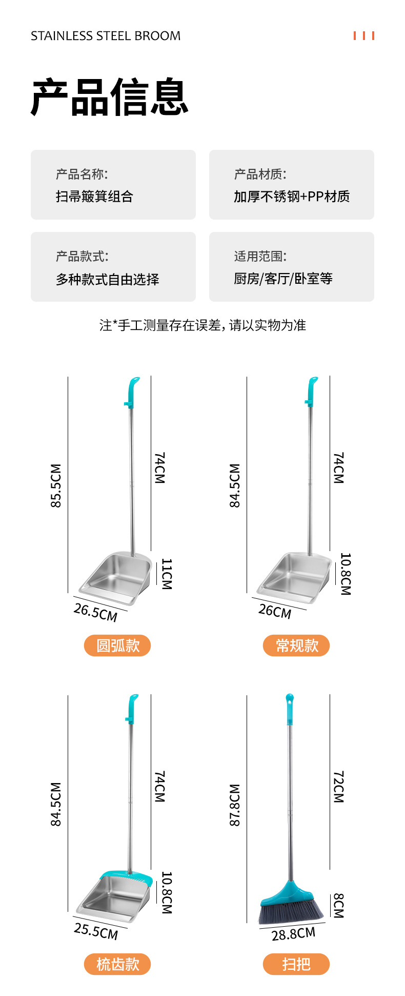 스테인레스 스틸 쓰레기 삽 두꺼운 단일 쓰레받기 가정용 여분의 두꺼운 스몰 사이즈 철 쓰레받기 빗자루 세트