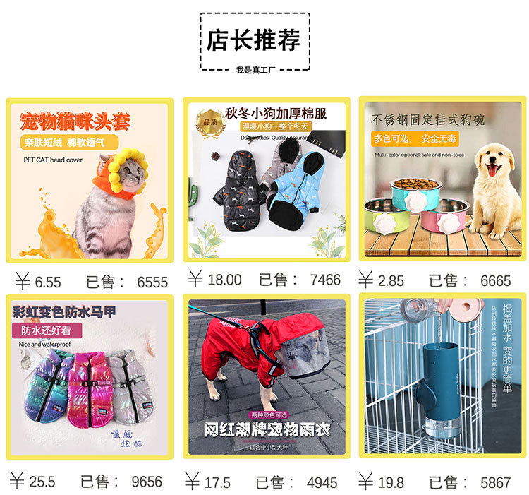 洪湖市宠乐谷宠物服饰有限公司,昆山宠力宠物用品有限公司,义乌宏聚宠物用品有限公司,特多拉实力旗舰店,深圳沃德万薪贸易有限公司,东莞市旺财多多宠物用品,东阳市盈乐宠物用品有限公司,义乌乐宠电子商务有限公司,