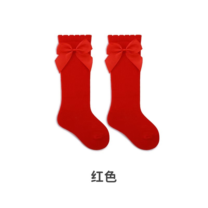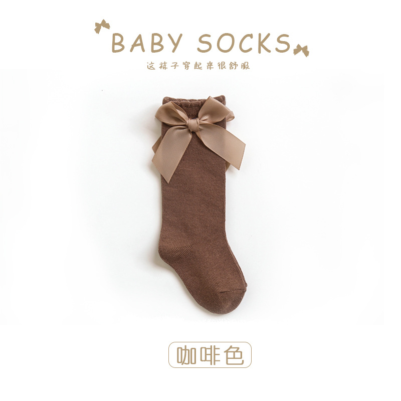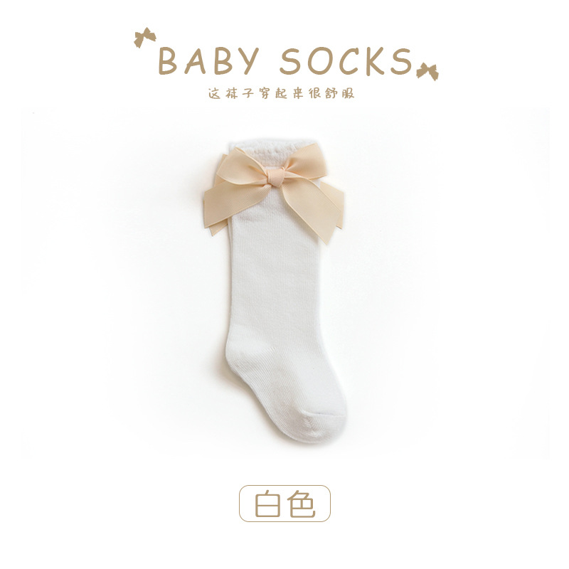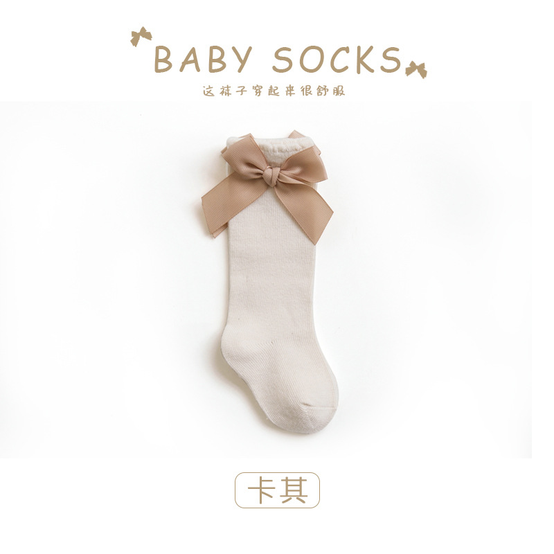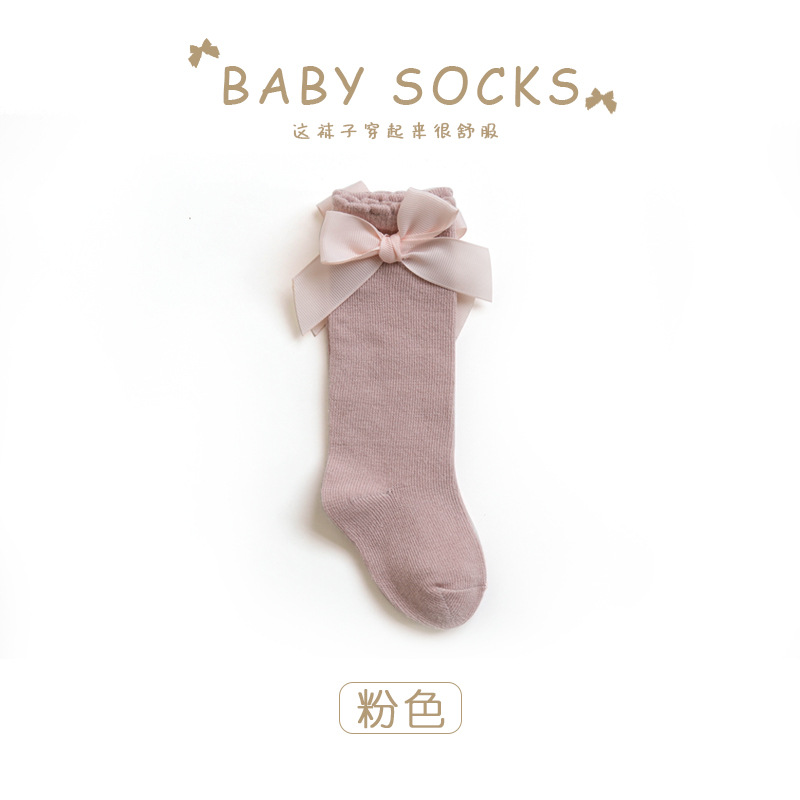아기 높은 양말 가을과 겨울 아기 단색면 양말 한국 활 공주 양말 느슨한 방풍 스타킹 도매