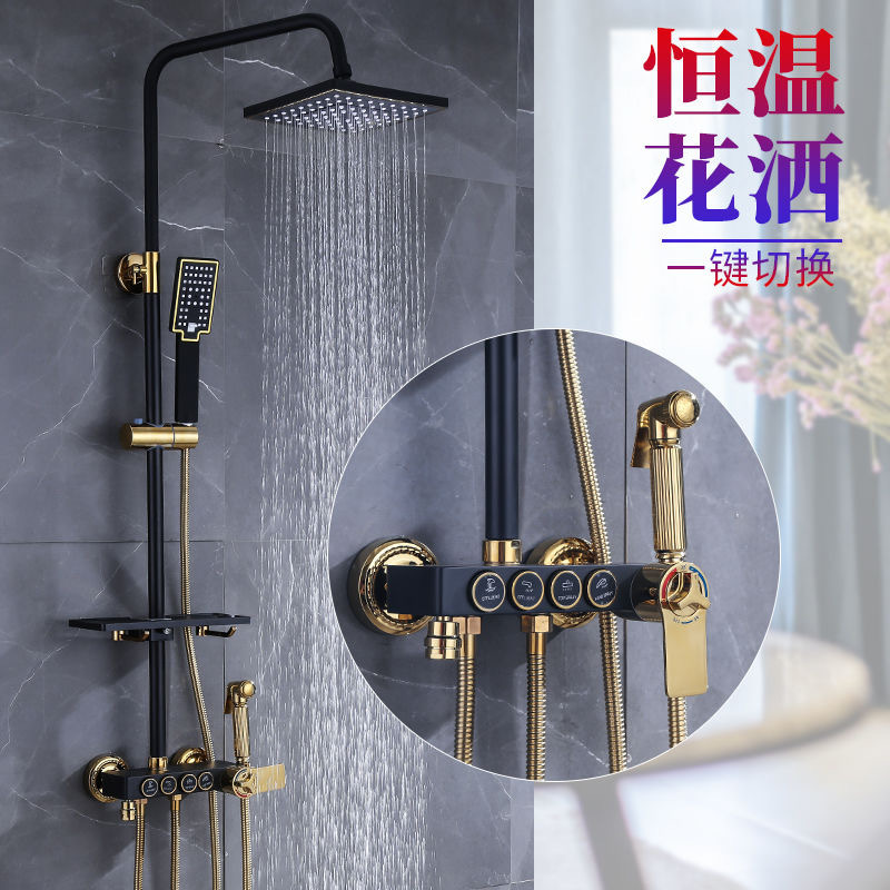 총 회색 항온 디지털 디스플레이 샤워 세트 가정용 모든 구리 레인 샤워 세트 욕실 공장 국경 간 도매 전체 세트스토어 가기