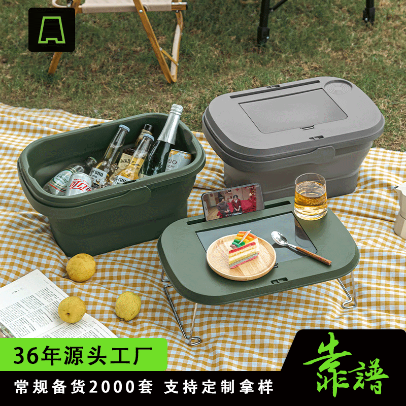일본 DOD 다목적 야외 접이식 피크닉 바구니 캠핑 피크닉 식기 보관 작은 테이블 16L 핸드 바스켓