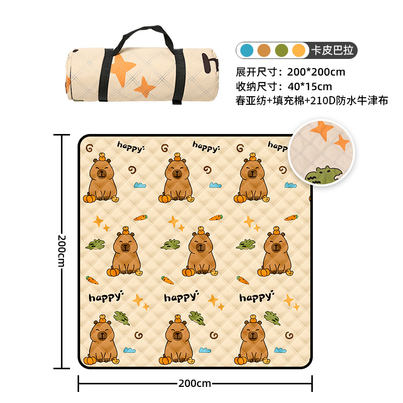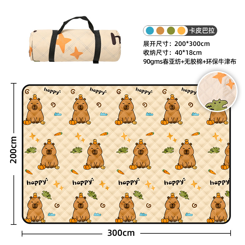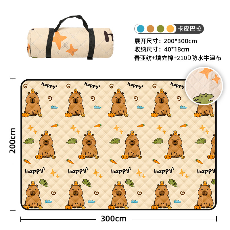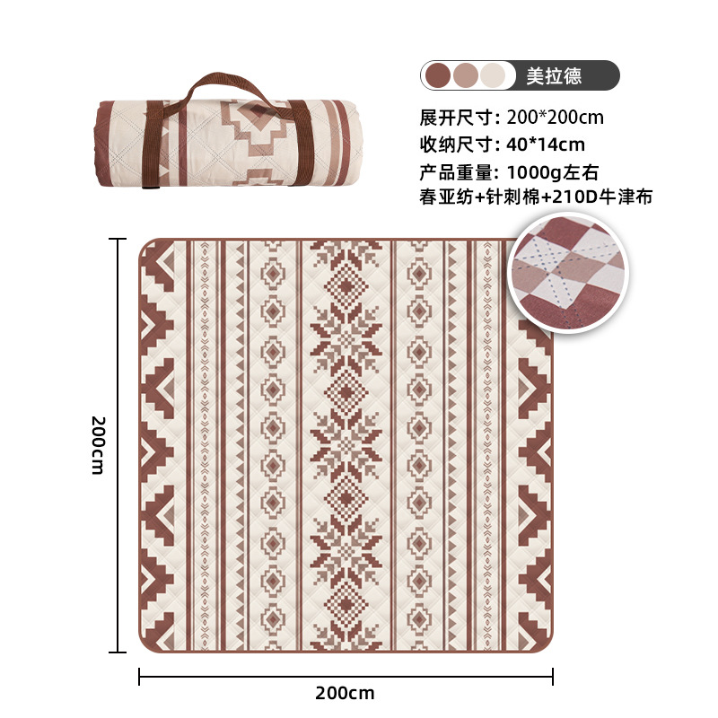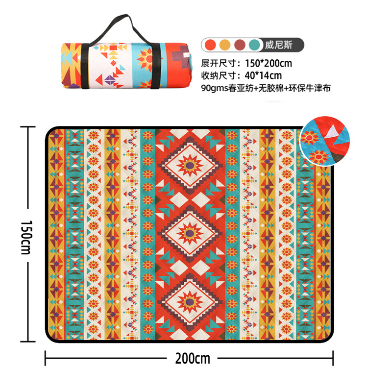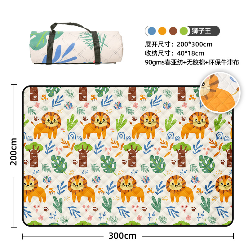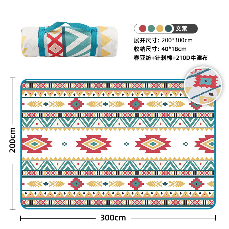 视频里面的是底部210D牛津布款式,300D牛津布防水(颜色蓝色)底部是老款,表面是没有防泼水的。作为野餐垫底部的防水层,牛津布抗撕裂,防水防潮,可机洗,柔韧性强,不会像PEVA在超声波绗缝中容易被打出洞,从而影响防水和品质,并且牛津布底可以适应大多数地形场景,我司中间的填充针刺棉是80gsm,市面上常规的是60gsm,更厚更舒适,接下来我司会陆续推出时下时尚的款式,尺寸也会把2*3米和3*3米的加进来,后期更会推出防水很好的铝膜底的超声波野餐垫,具有更好的防水能力,可以隔绝冷热,铺在帐篷里面露营非常合适,耐撕裂,厚度更厚(克重达到      110gsm左右,市面上PEVA 75gsm),耐磨性更强,如对我们后期推出的新品感兴趣,欢迎咨询选购。