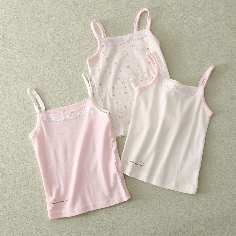 특별 제공 일본 아동복 대외 무역 스트레치 면 라운드 넥 반팔 탑 슬링 홈베이스 조끼 소년 소녀 용