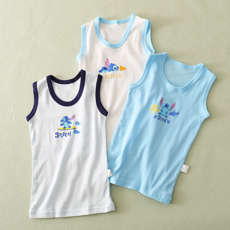 특별 제공 일본 아동복 대외 무역 스트레치 면 라운드 넥 반팔 탑 슬링 홈베이스 조끼 소년 소녀 용스토어 가기