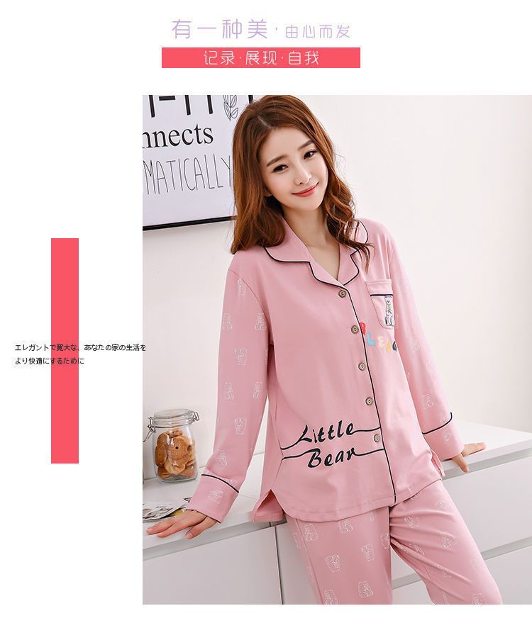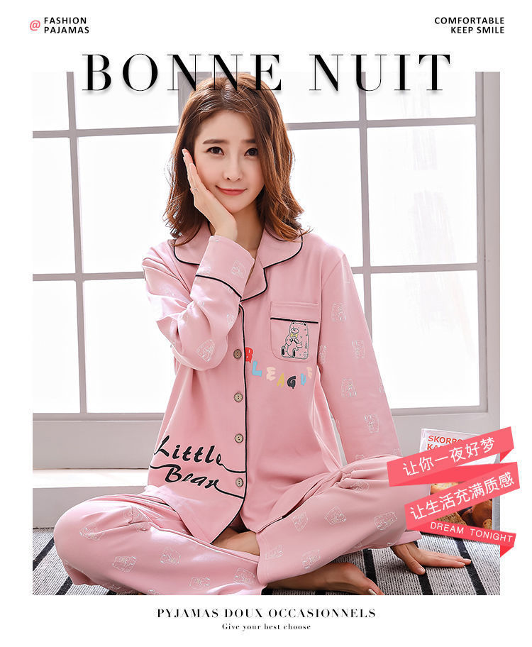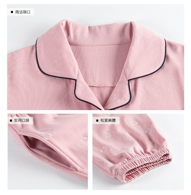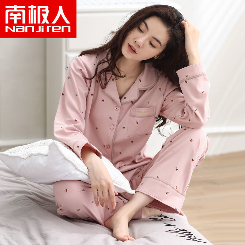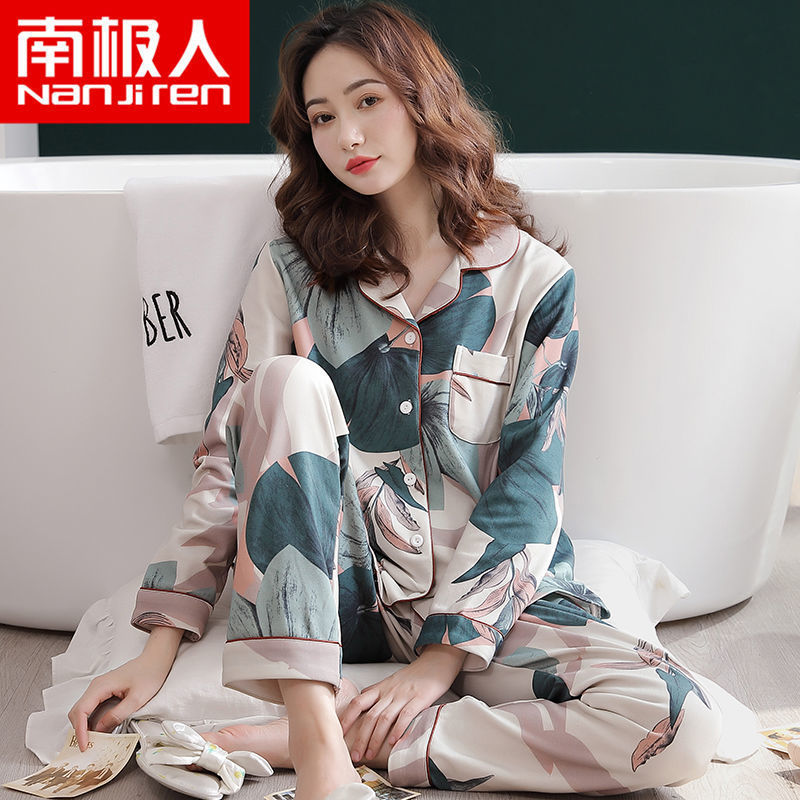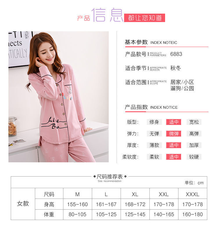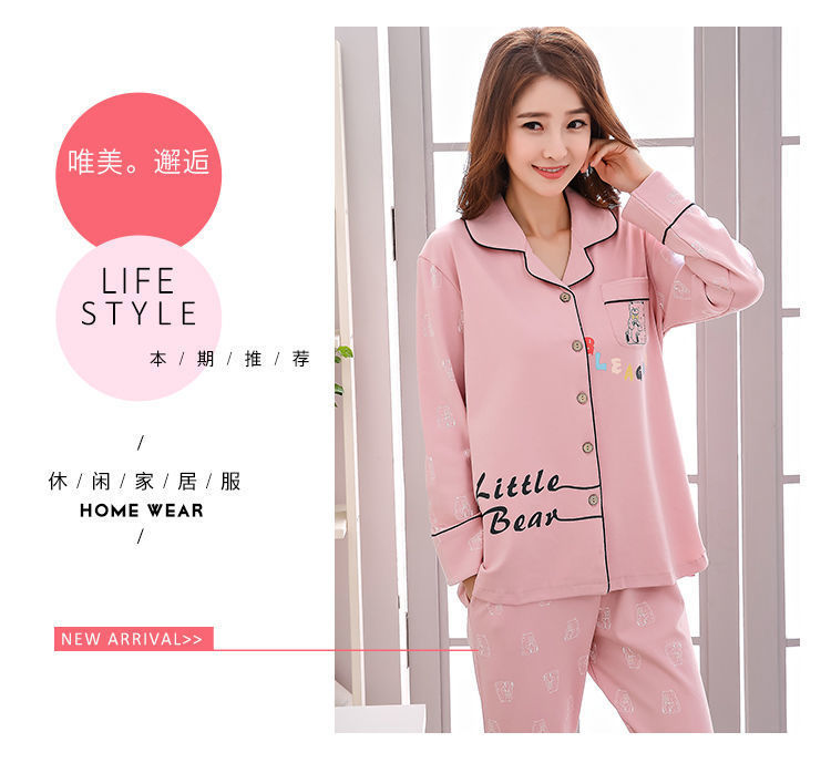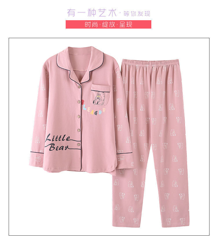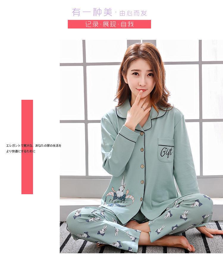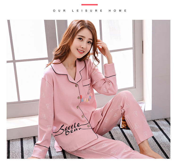 100% 순면 잠옷 여자의 봄과 가을 긴 소매 순면 플러스 사이즈 가을과 겨울 얇은 가정복 세트스토어 가기