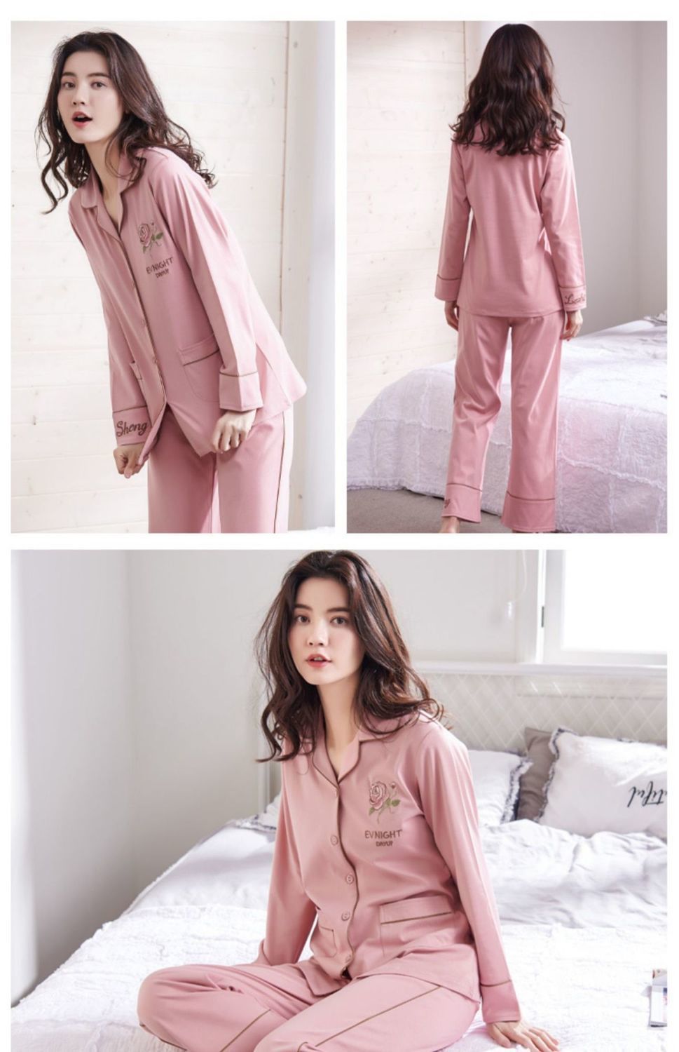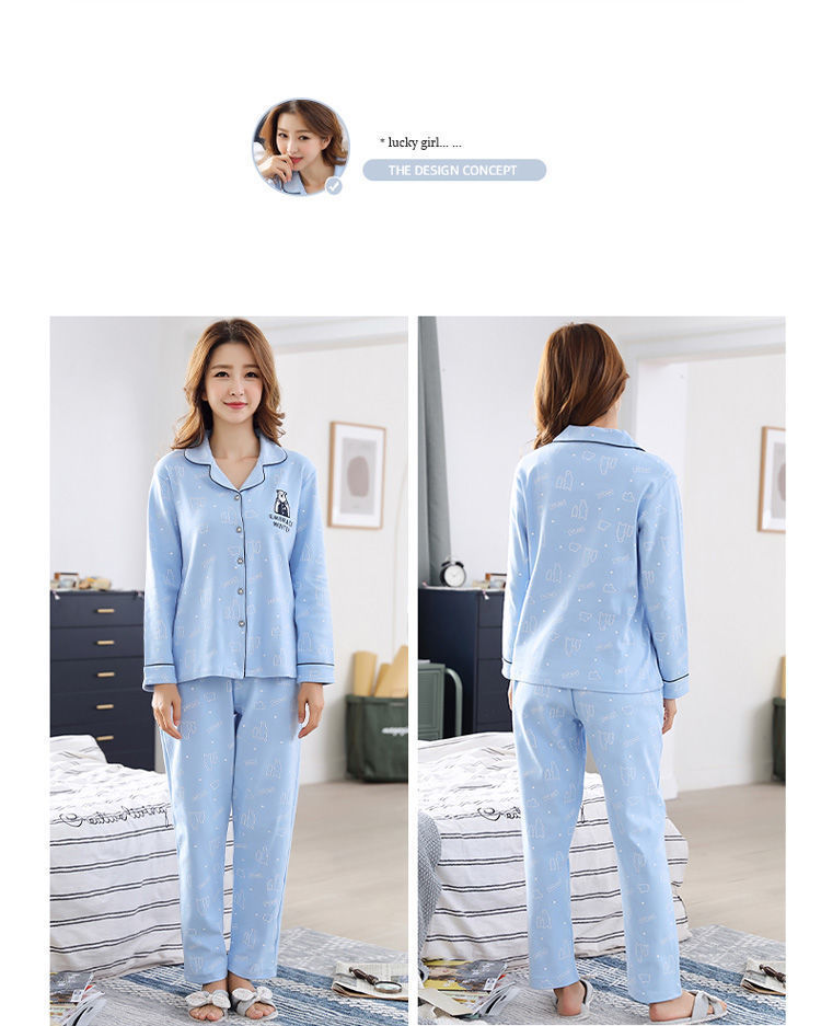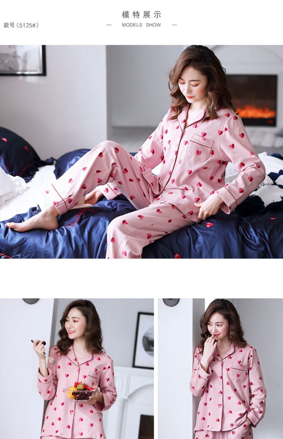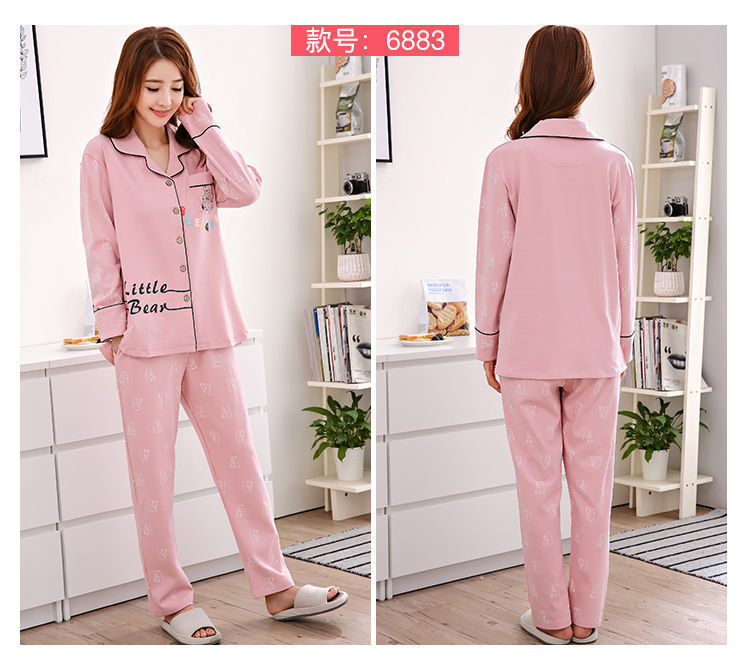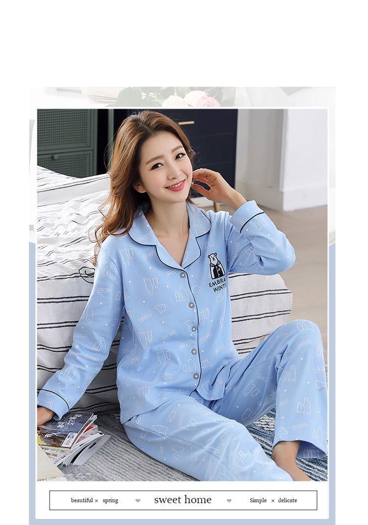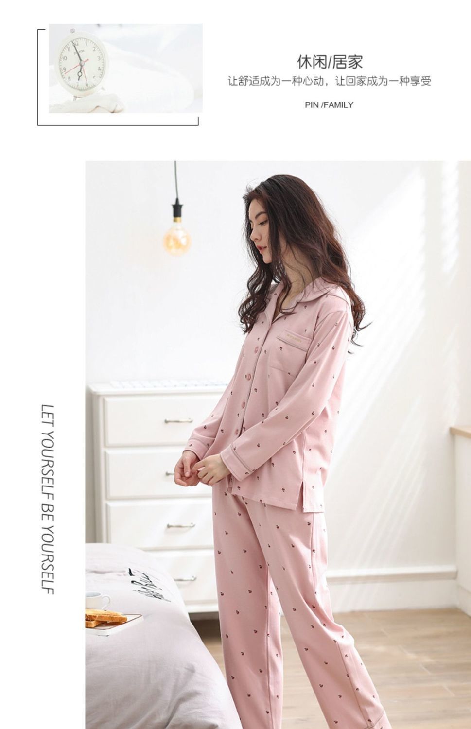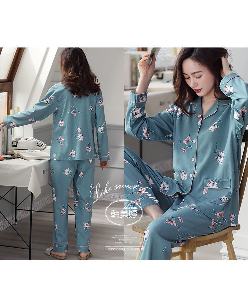 100% 순면 잠옷 여자의 봄과 가을 긴 소매 순면 플러스 사이즈 가을과 겨울 얇은 가정복 세트스토어 가기