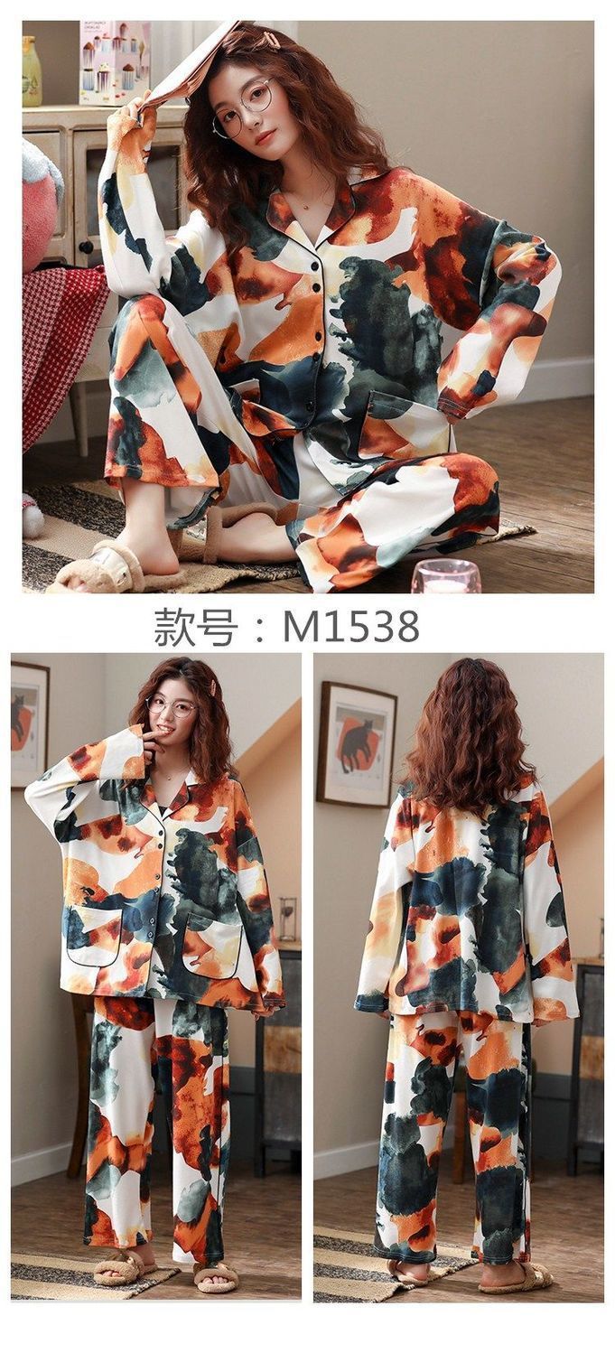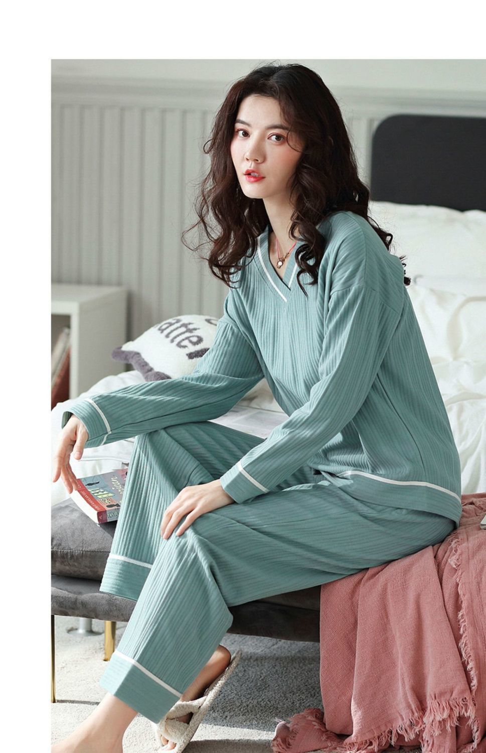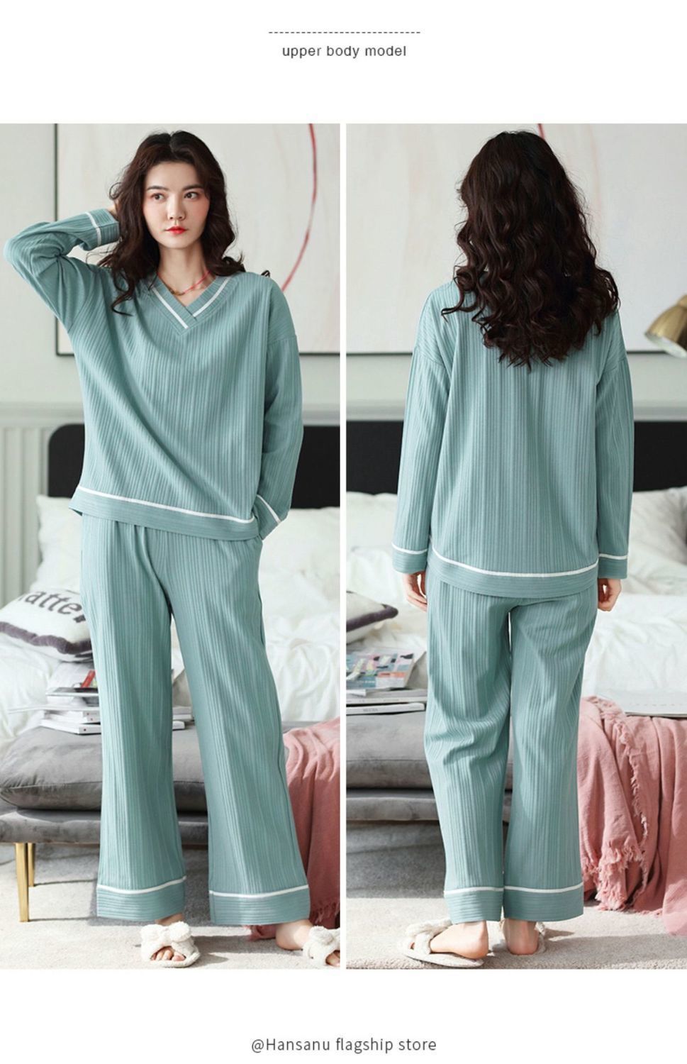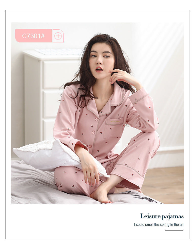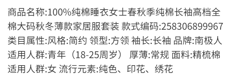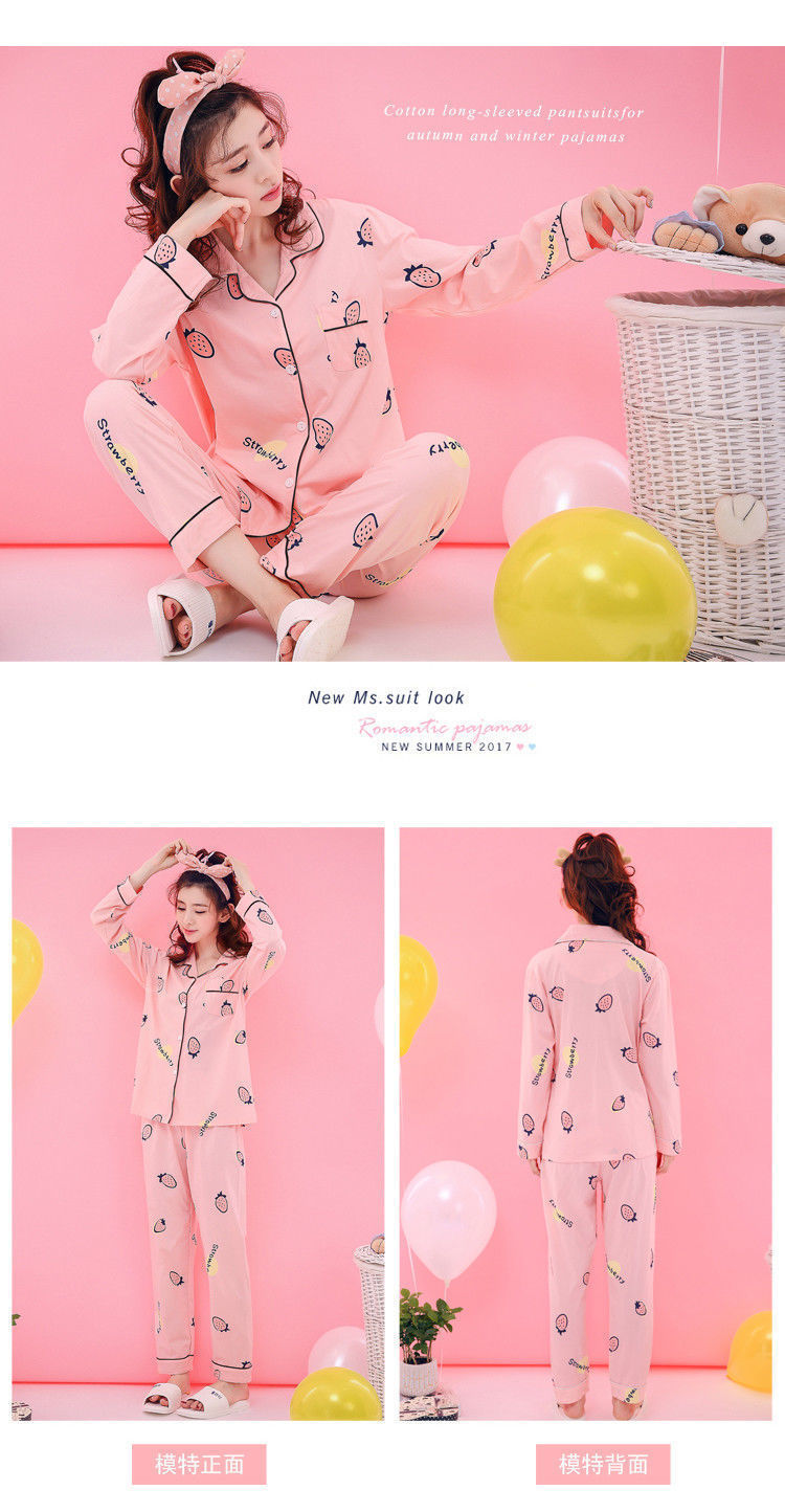 100% 순면 잠옷 여자의 봄과 가을 긴 소매 순면 플러스 사이즈 가을과 겨울 얇은 가정복 세트스토어 가기